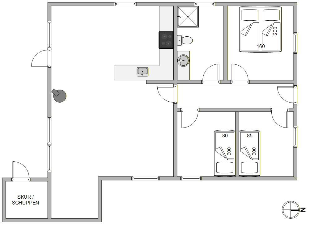 De 6 sovepladser er fordelt på 2 gode værelser samt alkoven. På det ene soveværelse finder I en dobbeltseng, mens de 2 andre værelser hver er indrettet med 1 komfortabel enkeltseng.
