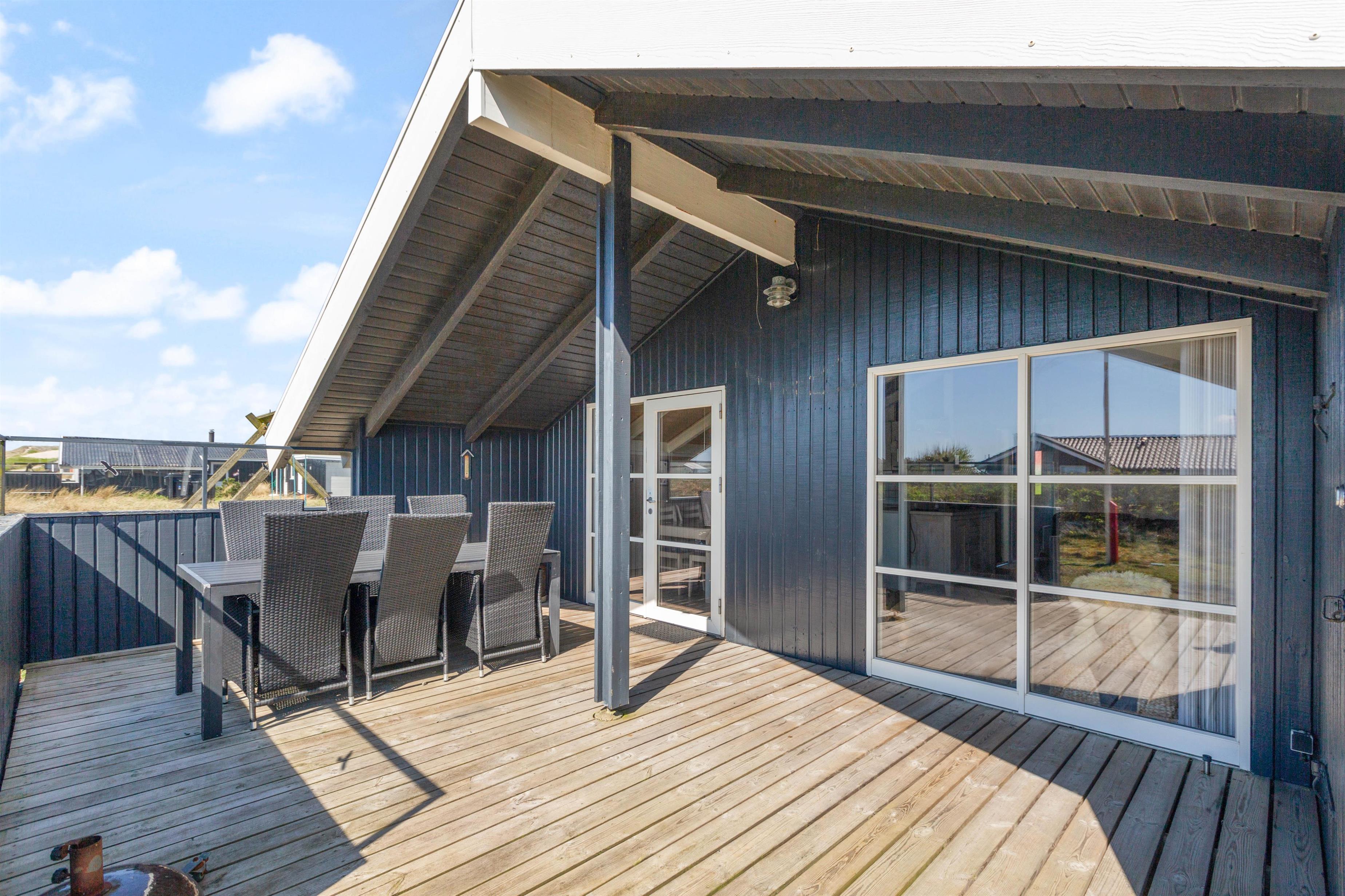 Sommerhuset har 2 delvist afskærmede terrasser, hvoraf den ene er østvendt. Herfra kan I nyde solopgangen med dagens første kop kaffe. Senere på dagen kan I rykke videre til den sydvendte terrasse, mens solen står på sit højeste. Til aften kan I nyde et lækkert grillmåltid med en lækker bøf og et godt glas vin.