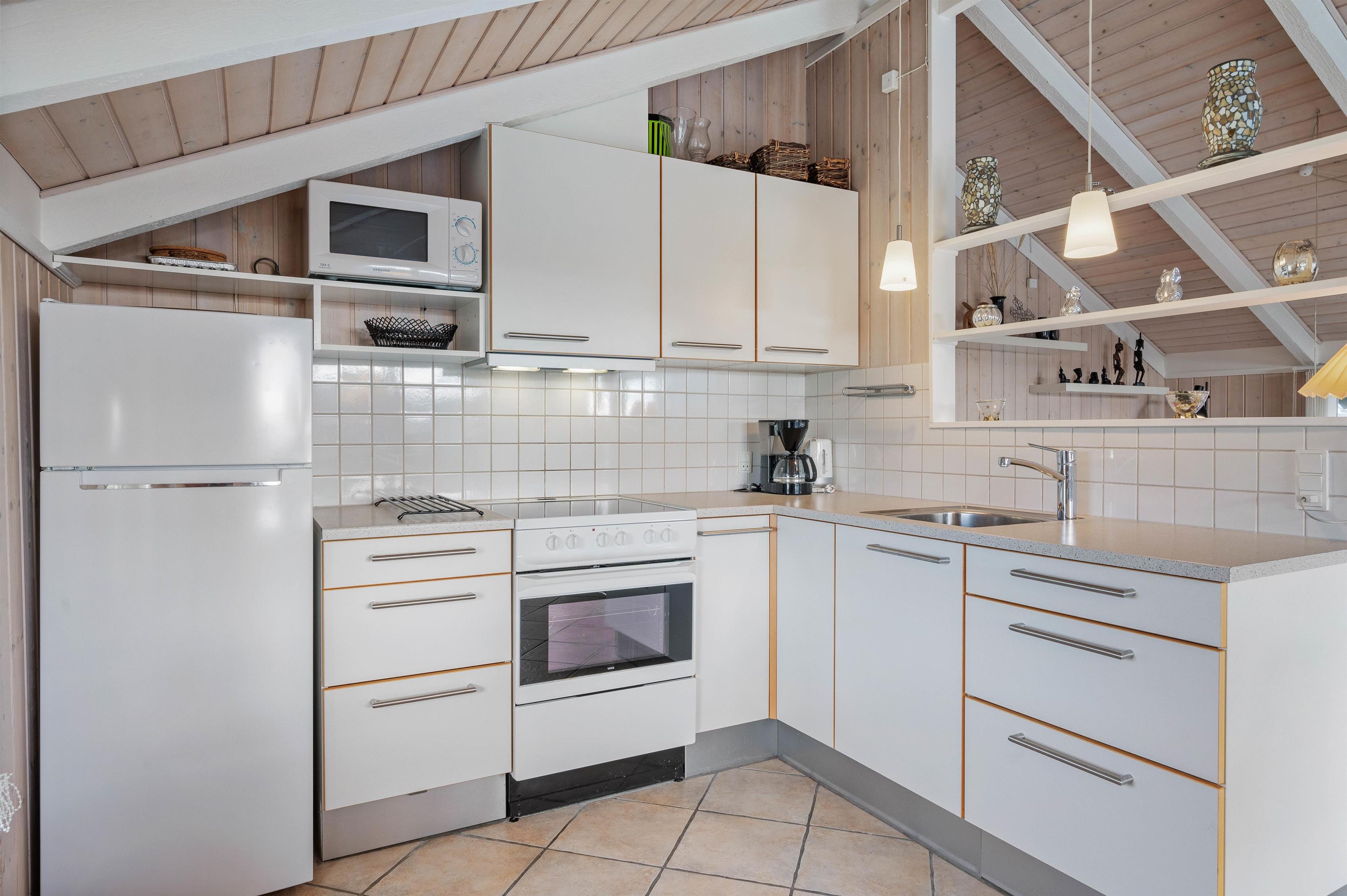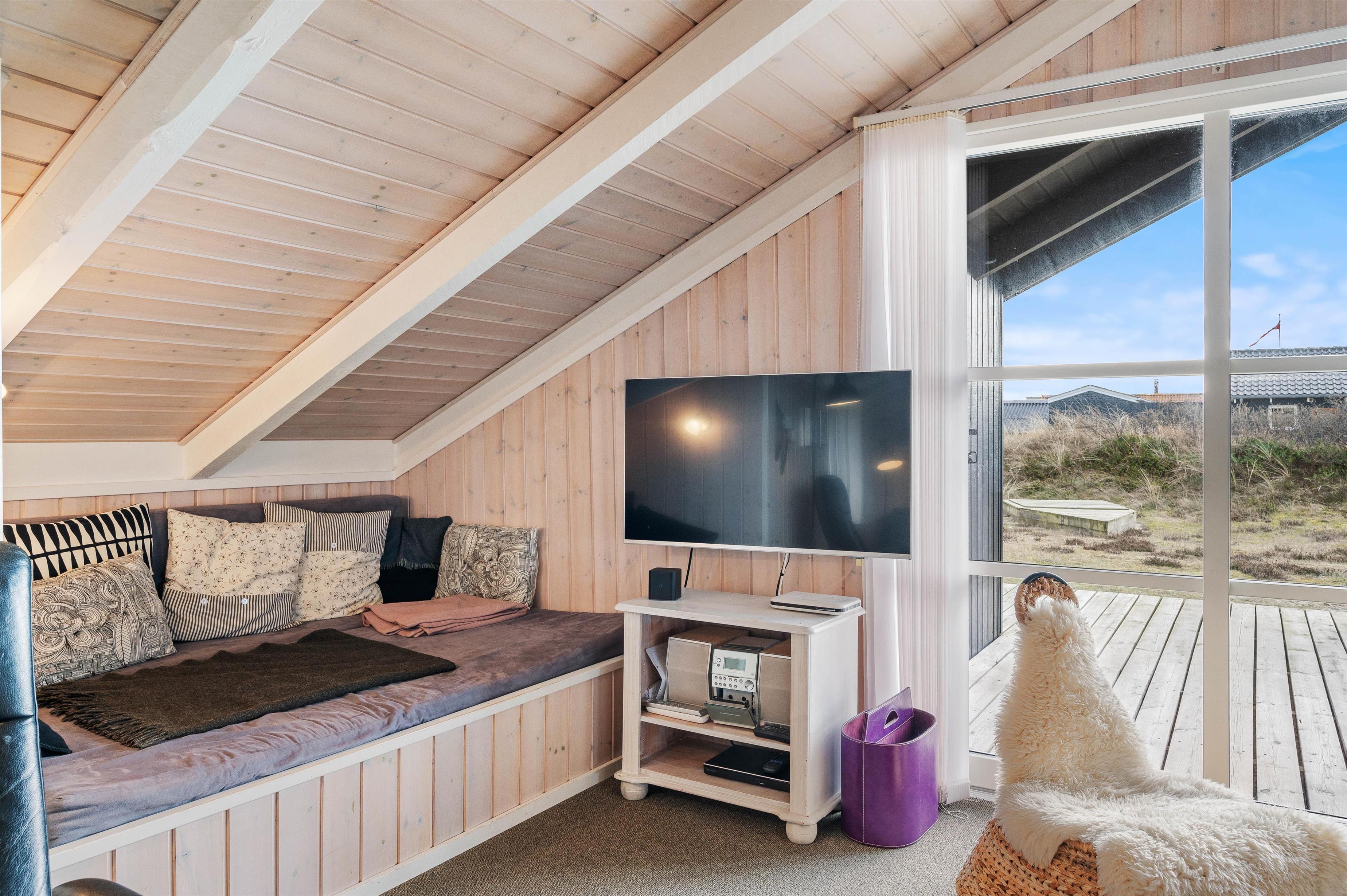 I opholdsstuen står lædermøblerne klar til hyggelige stunder med familien, og her er også en alkove til en god middagslur. Brændeovnen sørger ikke blot for varme, men også en ekstra hyggelig feriestemning. Her er fjernsyn med danske tv-kanaler, så I kan slappe af på sofaen med en god film på en regnfuld dag.