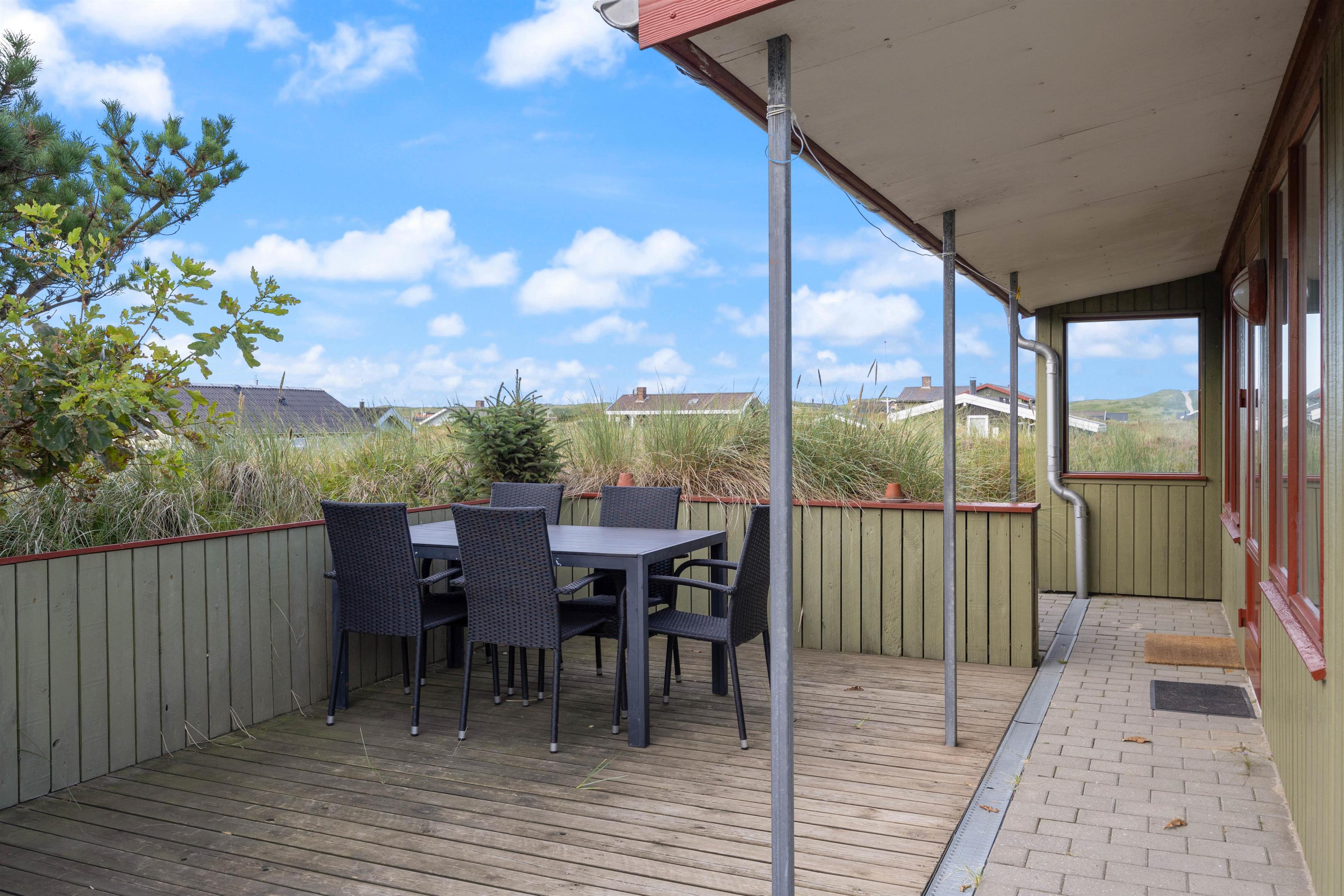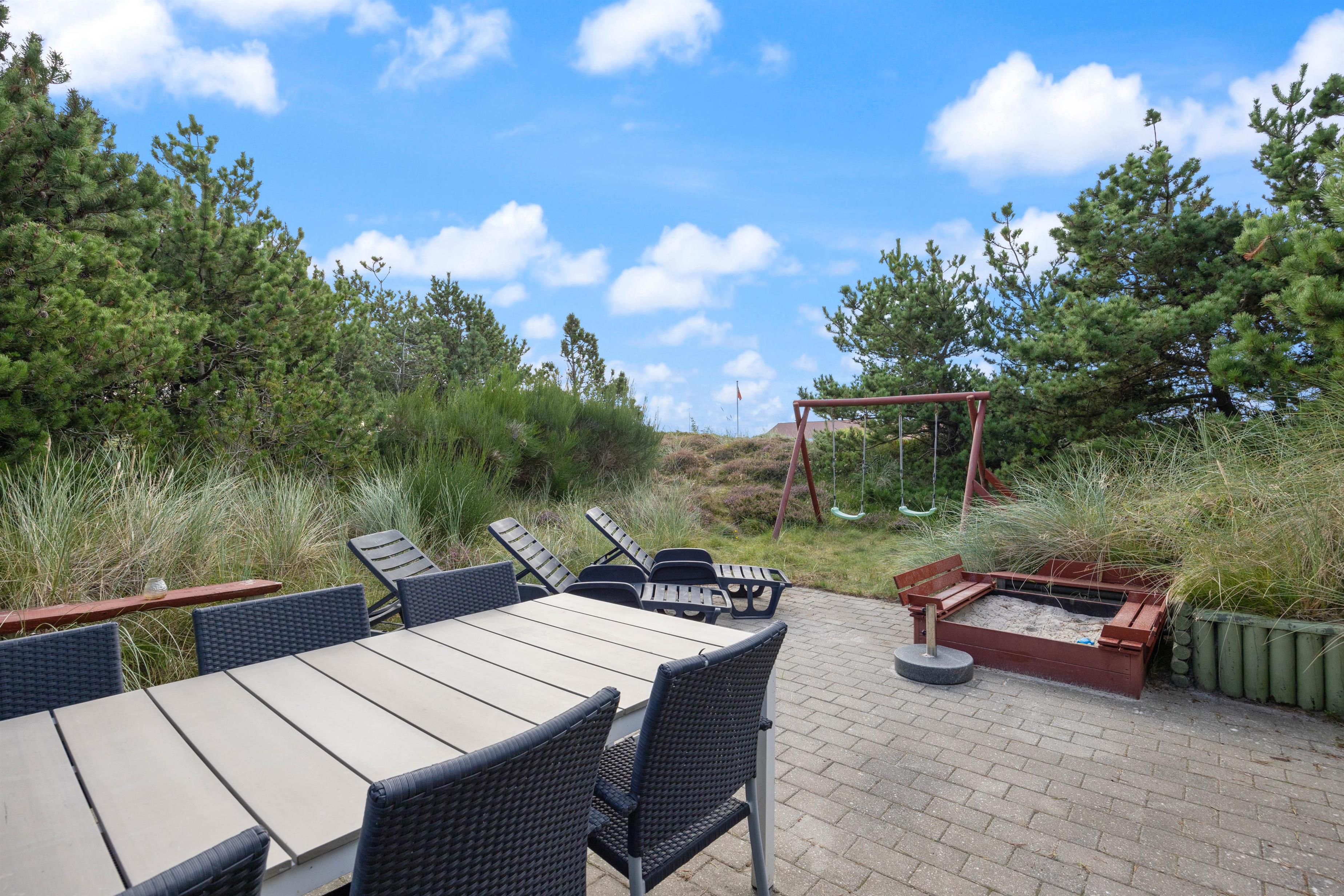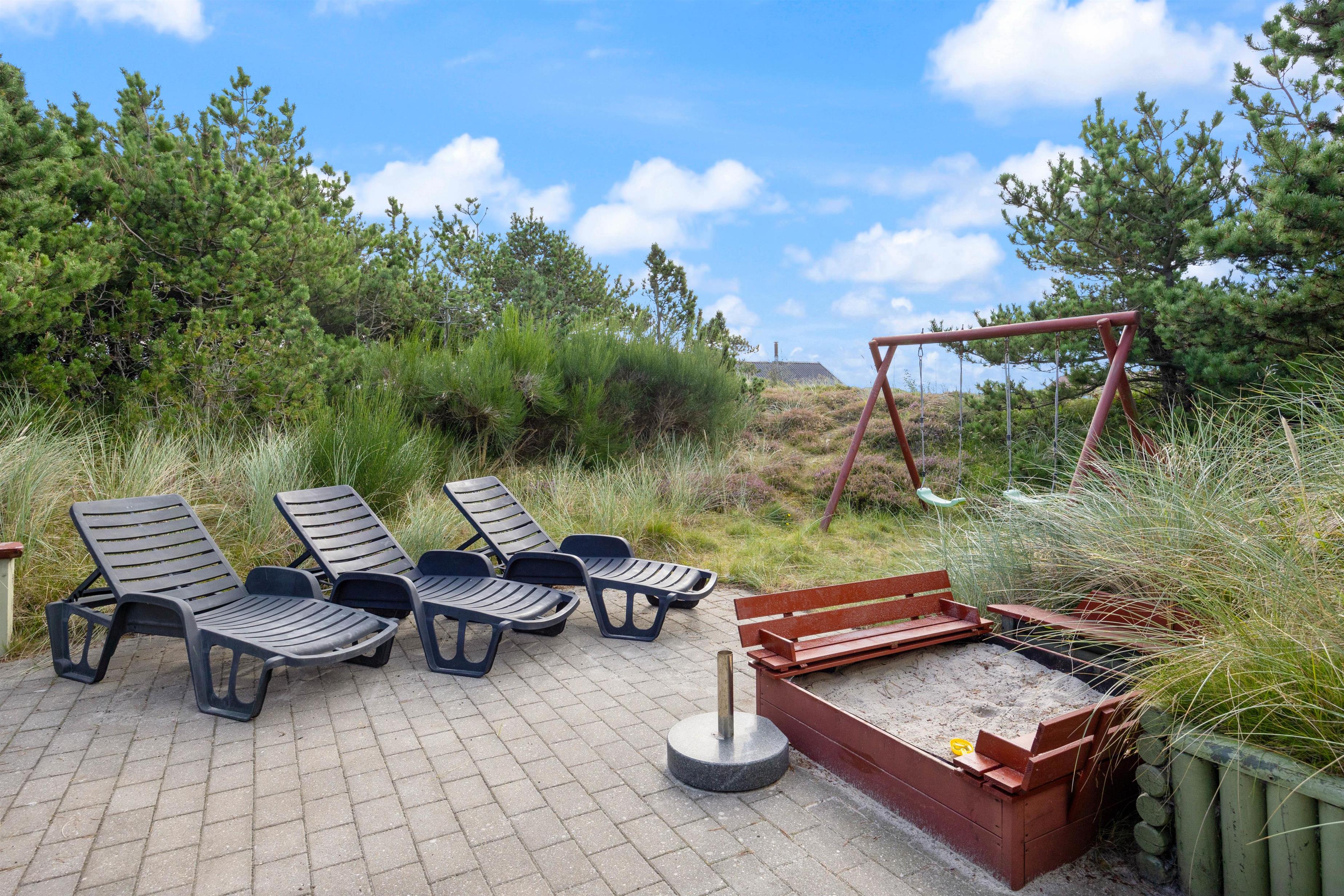 Der er både en fin terrasse ved feriehuset og en stor forsænket terrasse lidt længere nede på klitgrunden. I kan slappe af i havemøblerne ved sommerhuset eller solbade på den lavereliggende terrasse, imens børnene gynger eller leger i sandkassen. Tænd op i grillen til aften og nyd et lækkert grillmåltid sammen, imens skyggerne bliver lange. Bagefter kan I gå en dejlig tur til stranden og opleve solnedgangen i Vesterhavet – det er altid en oplevelse.