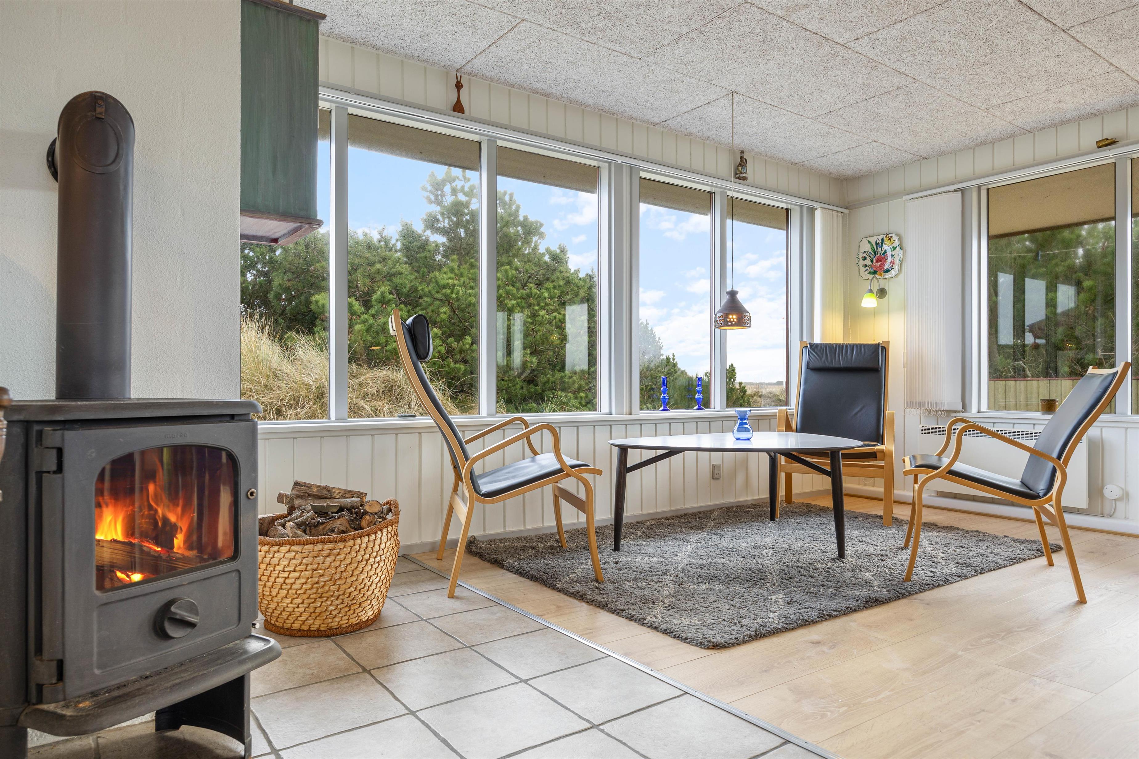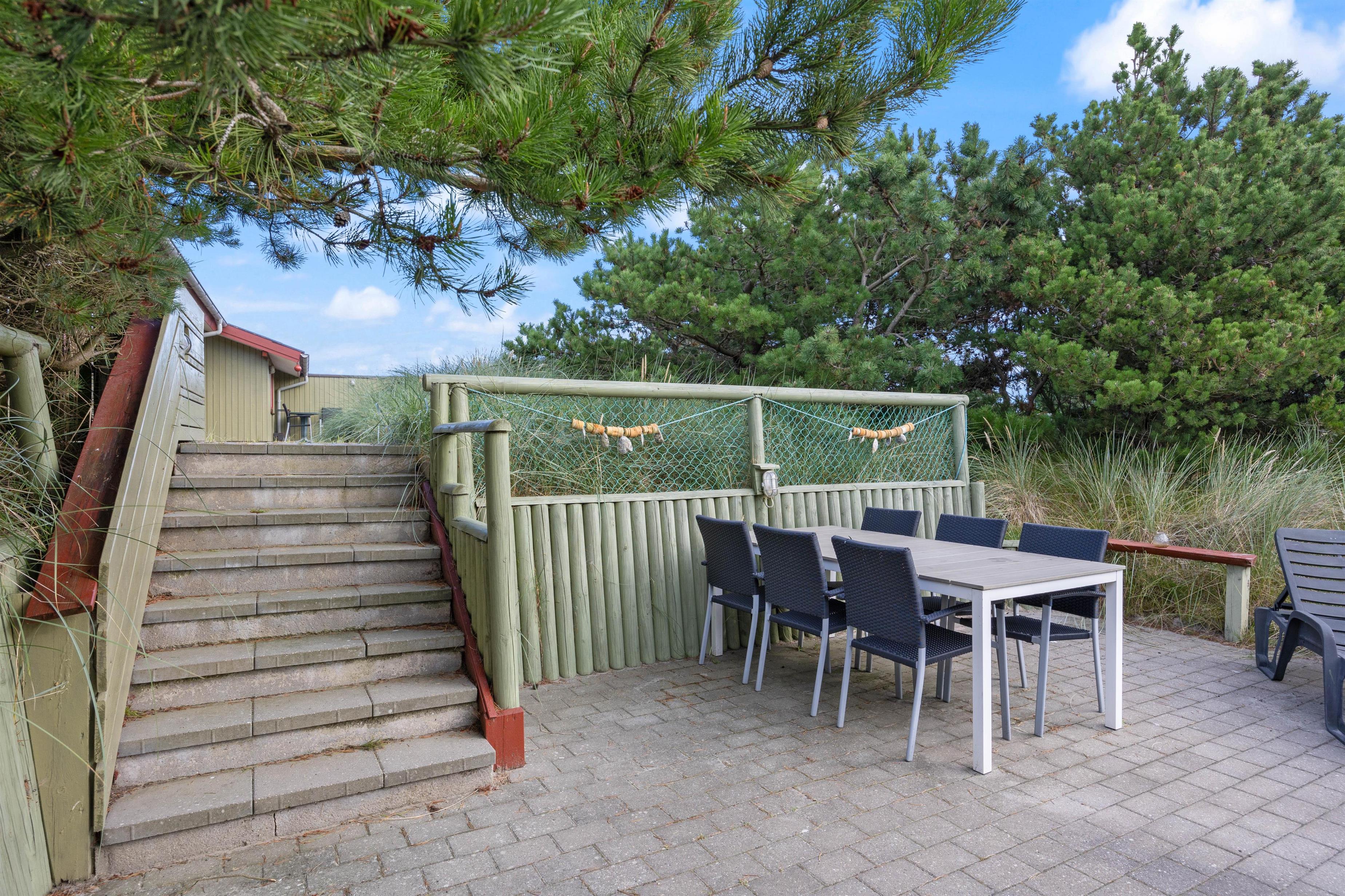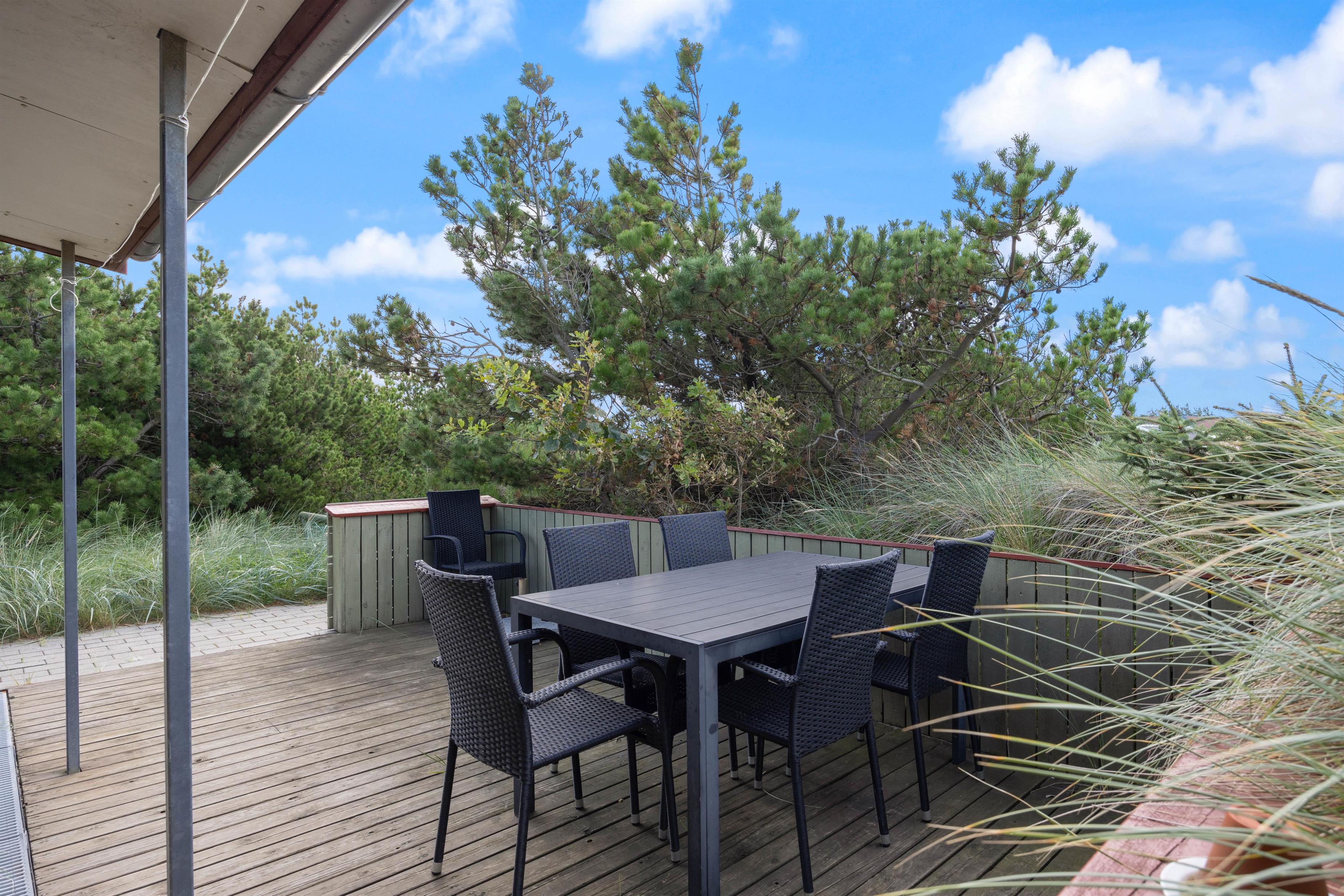 Der er både en fin terrasse ved feriehuset og en stor forsænket terrasse lidt længere nede på klitgrunden. I kan slappe af i havemøblerne ved sommerhuset eller solbade på den lavereliggende terrasse, imens børnene gynger eller leger i sandkassen. Tænd op i grillen til aften og nyd et lækkert grillmåltid sammen, imens skyggerne bliver lange. Bagefter kan I gå en dejlig tur til stranden og opleve solnedgangen i Vesterhavet – det er altid en oplevelse.