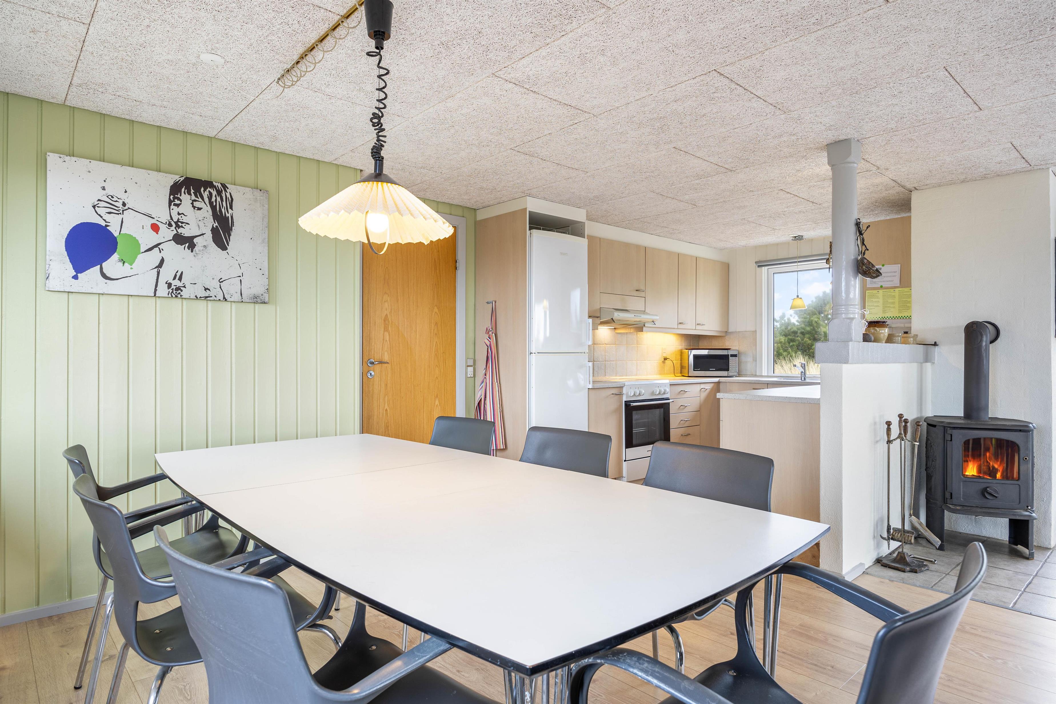 Samlingspunktet på Arvidvej 184 er stuen med brændeovn, hvor I kan hygge jer sammen i sofagruppen. Det fine lysindfald gennem de brede vinduespartier giver rummet en helt speciel feriestemning. Ved det lange spisebord kan I naturligvis nyde dagens måltider, men I kan også udfordre hinanden med et bræt- eller kortspil. Køkkenet indeholder alt, hvad I behøver for at forkæle hinanden med lækre hjemmelavede måltider. Der er en energibesparende varmepumpe, som hurtigt og effektivt sørger for et behageligt indeklima og en god temperatur.