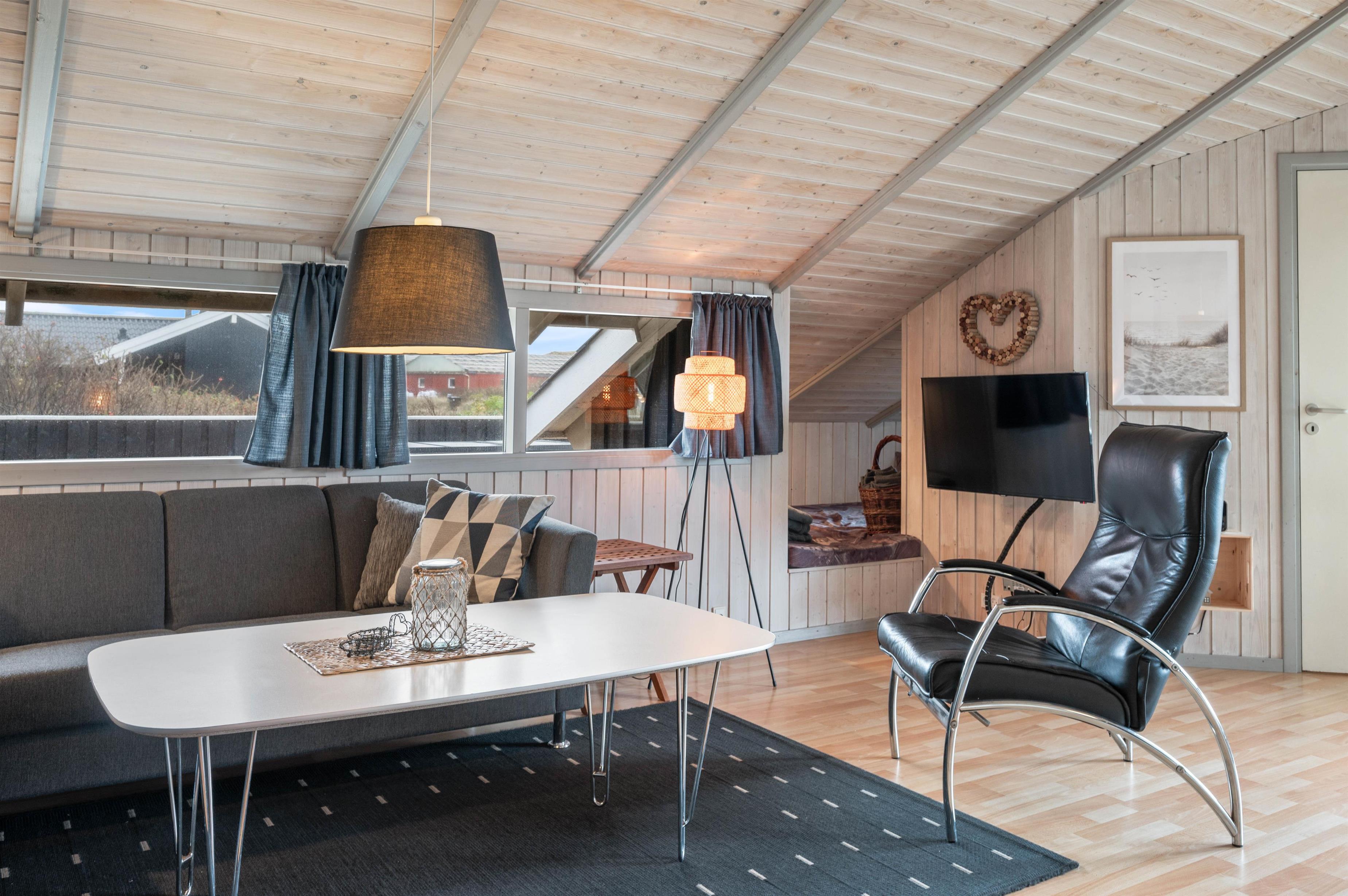 Ligeledes kan du foran brændeovnen fordybe dig i en spændende bog eller surfe rundt på internettet, følge lidt med i hverdagen derhjemme eller holde familie og venner opdateret på det afslappende ferieliv i Bjerregård. Som et ekstra plus er der en energibesparende varmepumpe i sommerhuset.