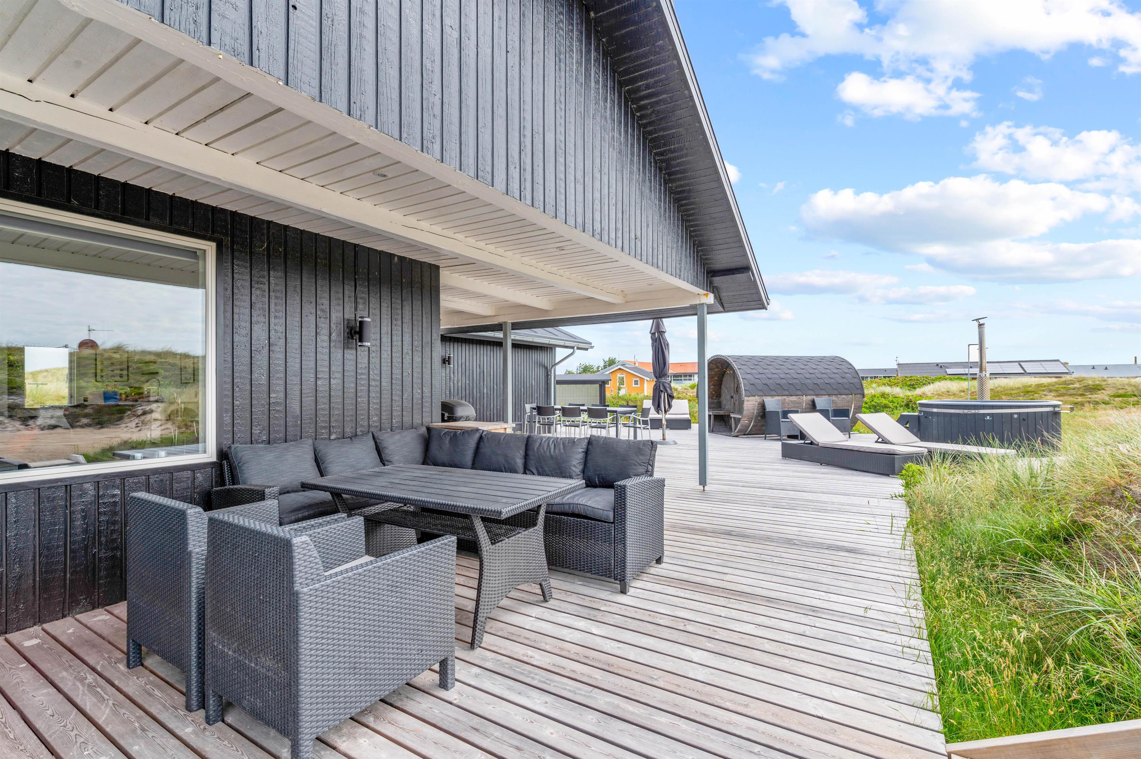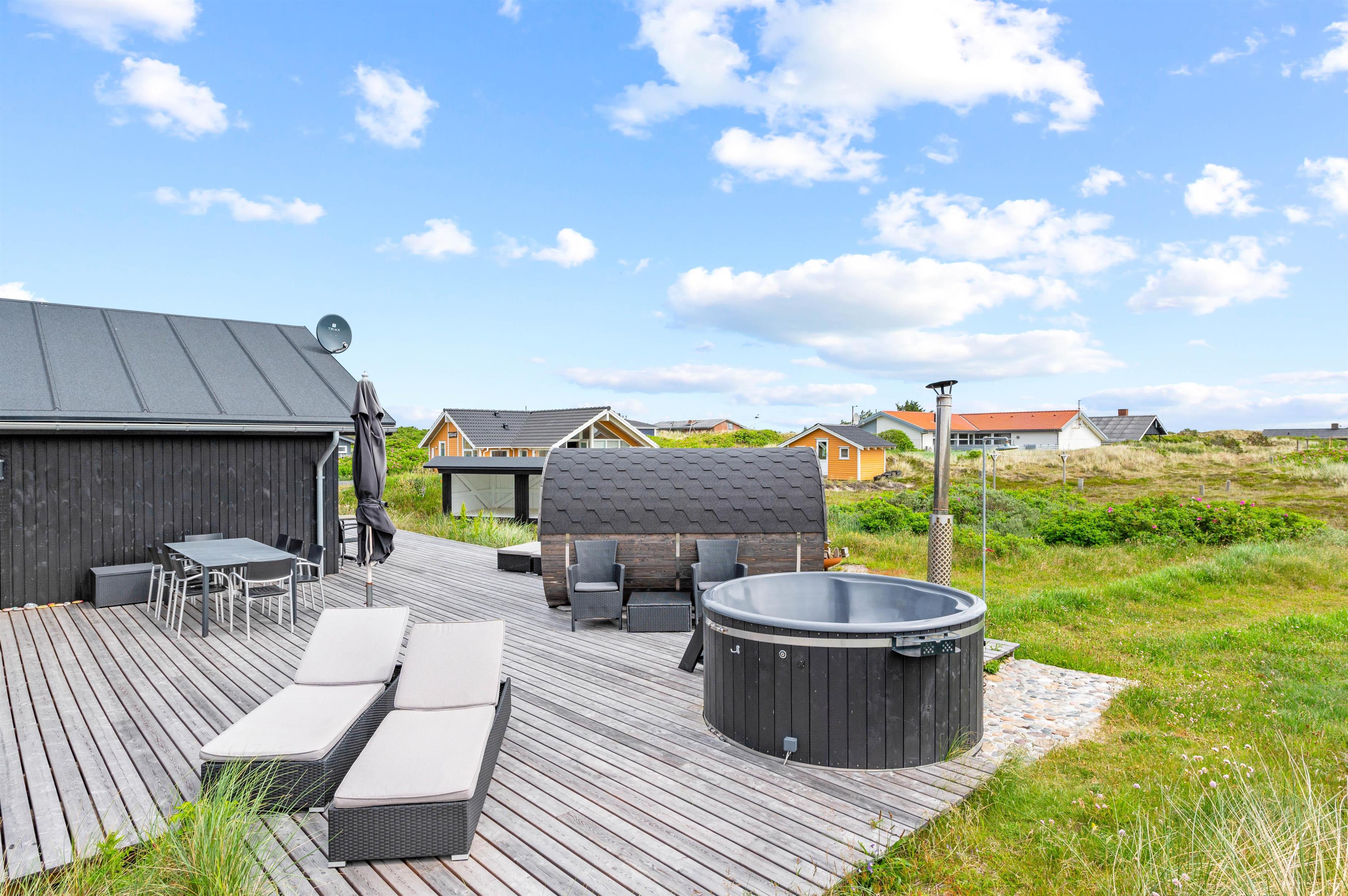 Moderne og hyggelig indretning med udendørs wellnessområde