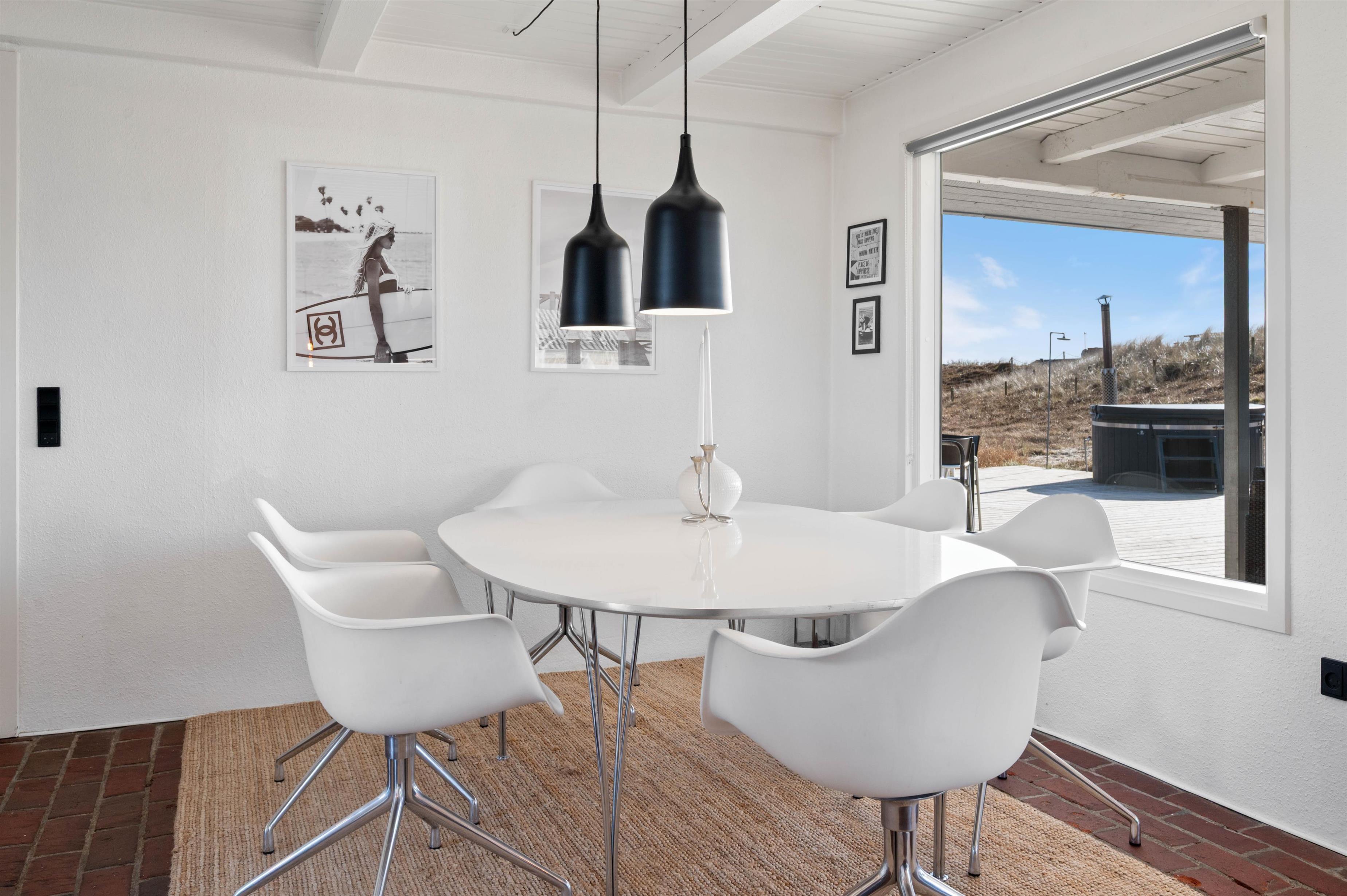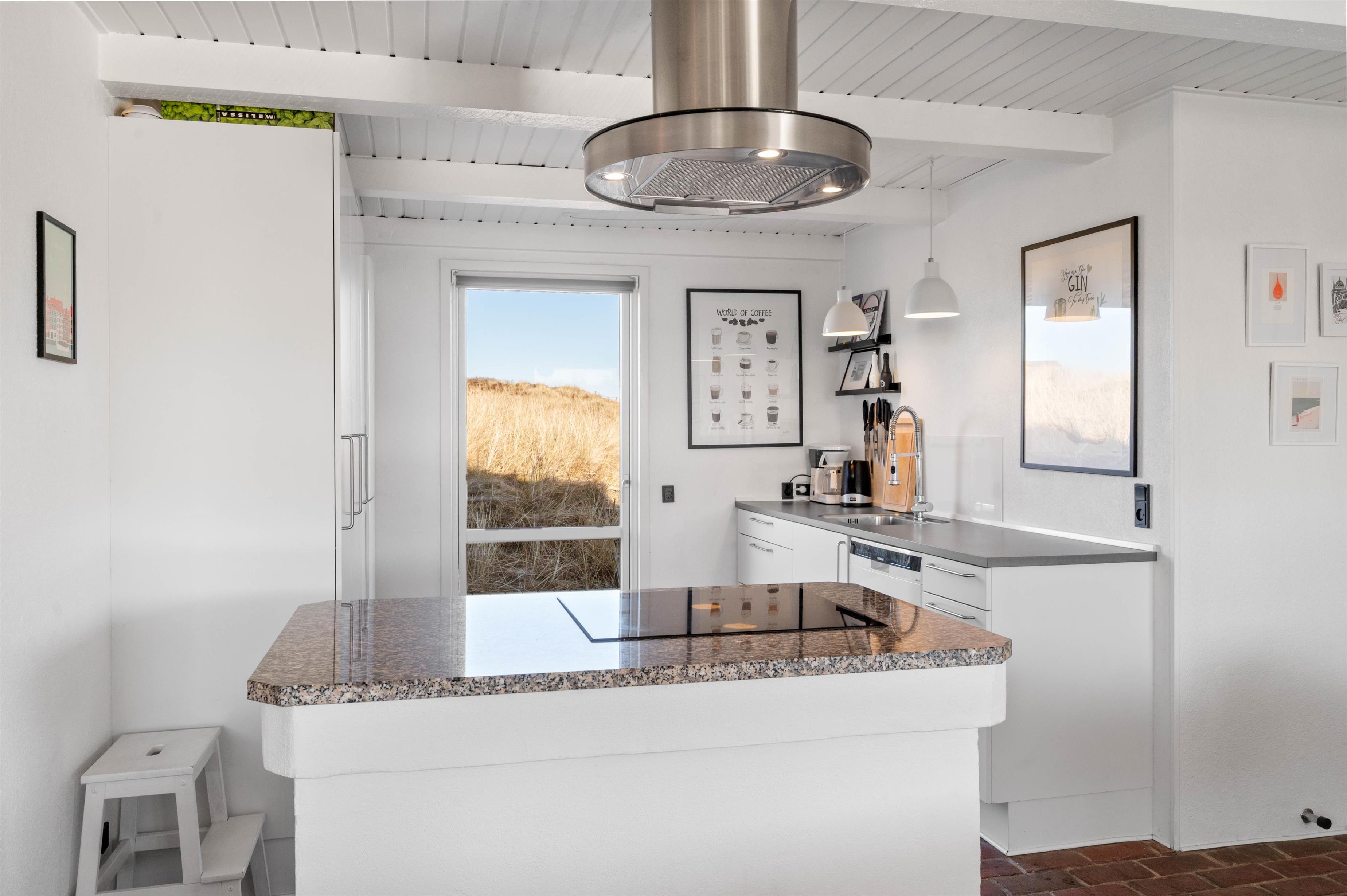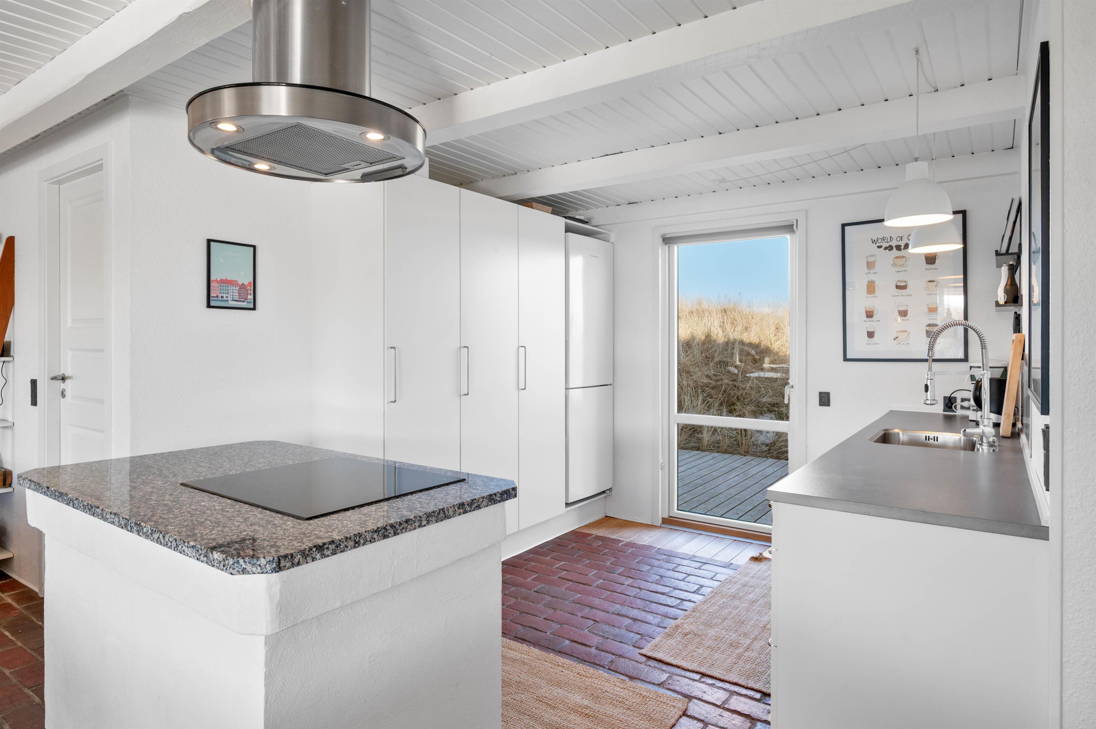Det familievenlige feriehus er renoveret i 2021 og er lyst og moderne indrettet. Her er et stort opholdsrum i åben forbindelse med køkkenet, som indbyder til mange skønne timer med familien. Aftensmaden kan I lave sammen og slutte dagen af med en filmaften til lyden af den knitrende brændeovn. Der er en Chromecast i sommerhuset, så I kan streame jeres yndlingsfilm fra jeres egen telefon til TV´et.