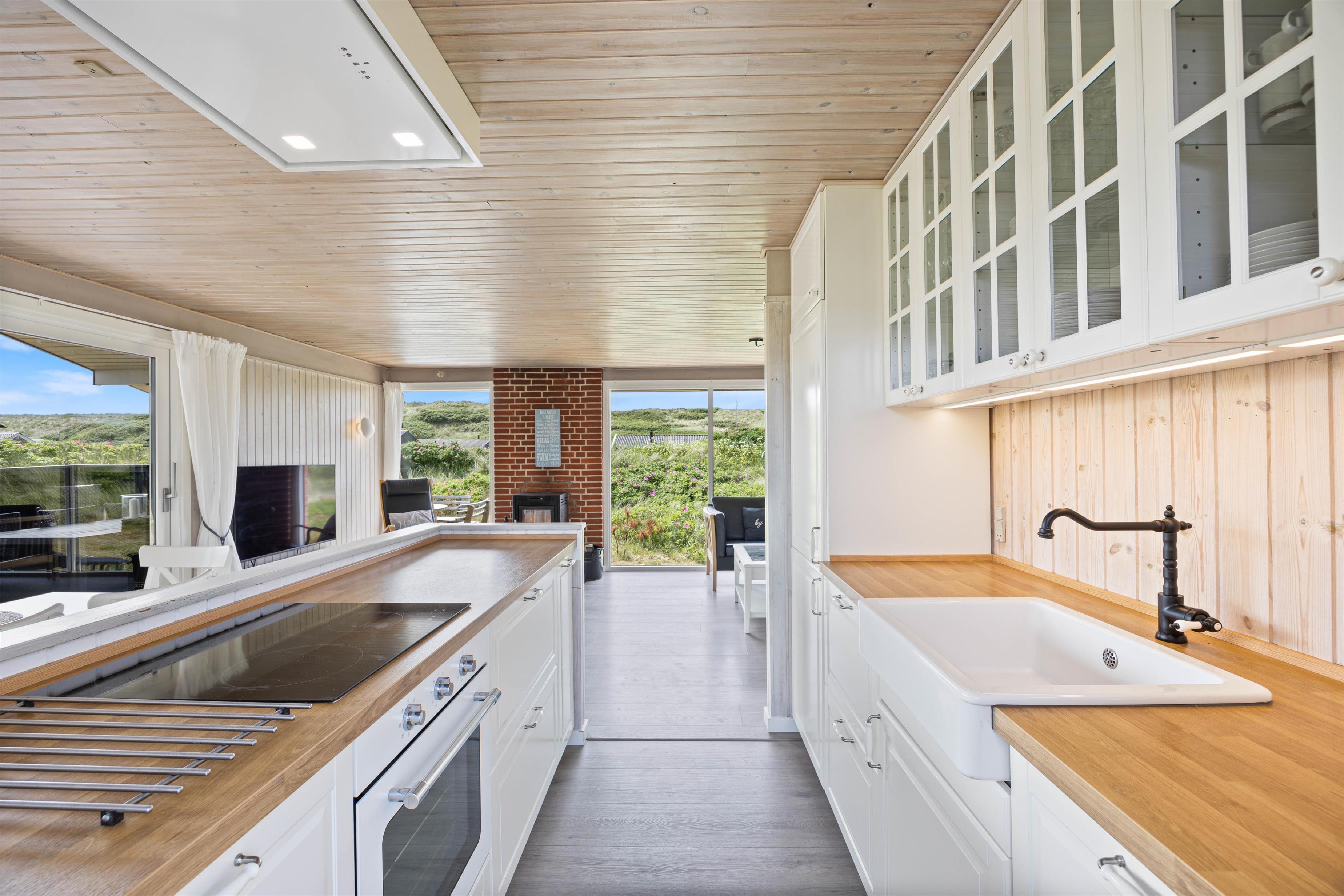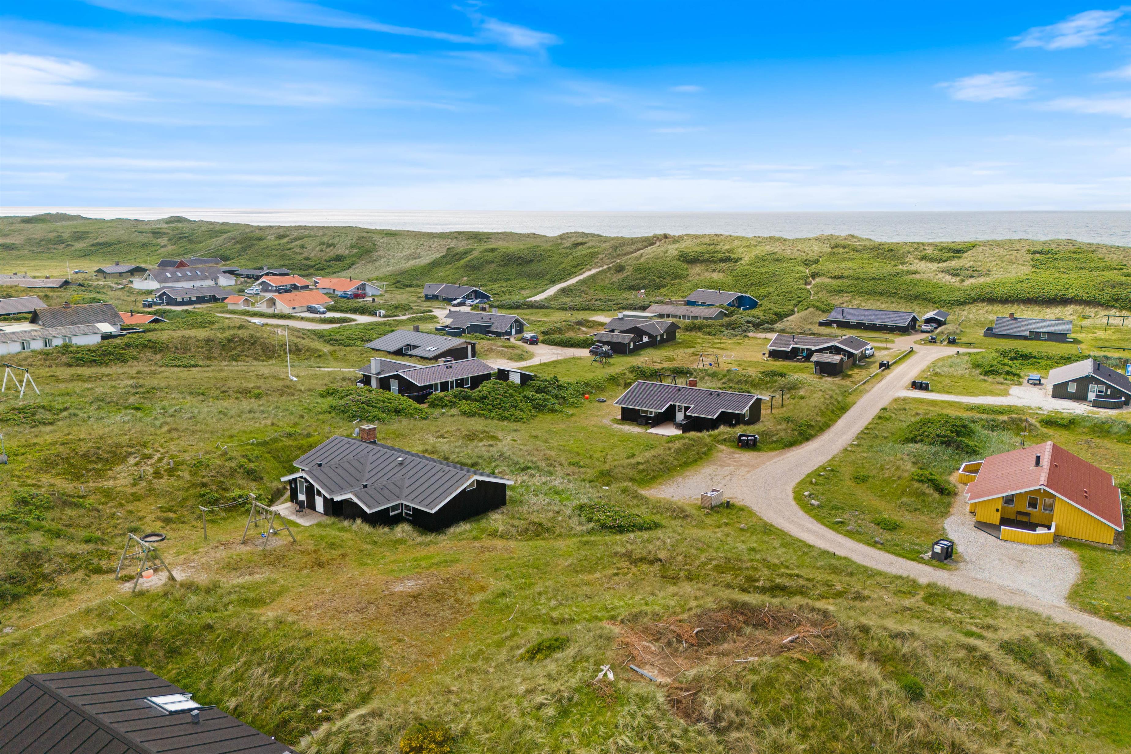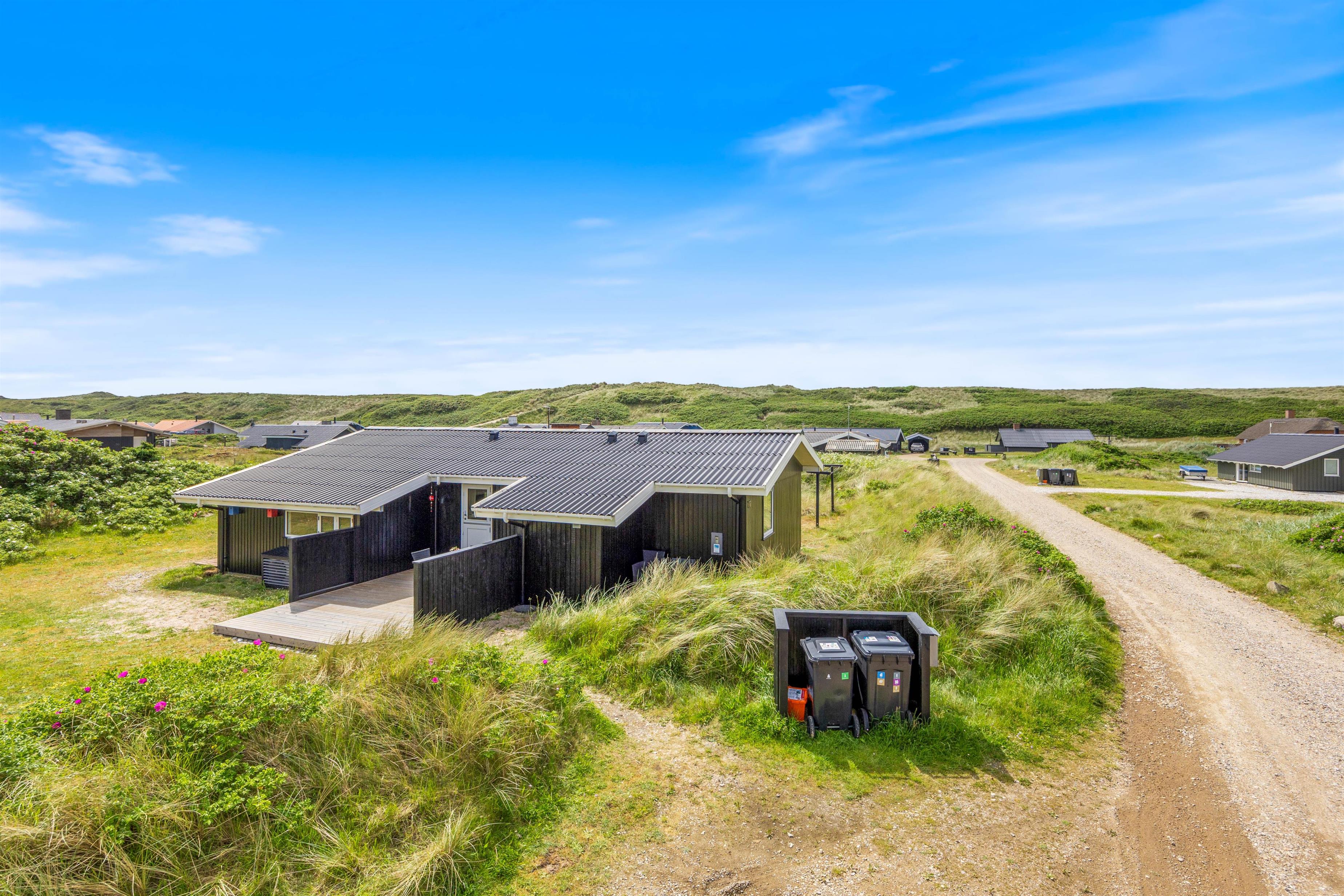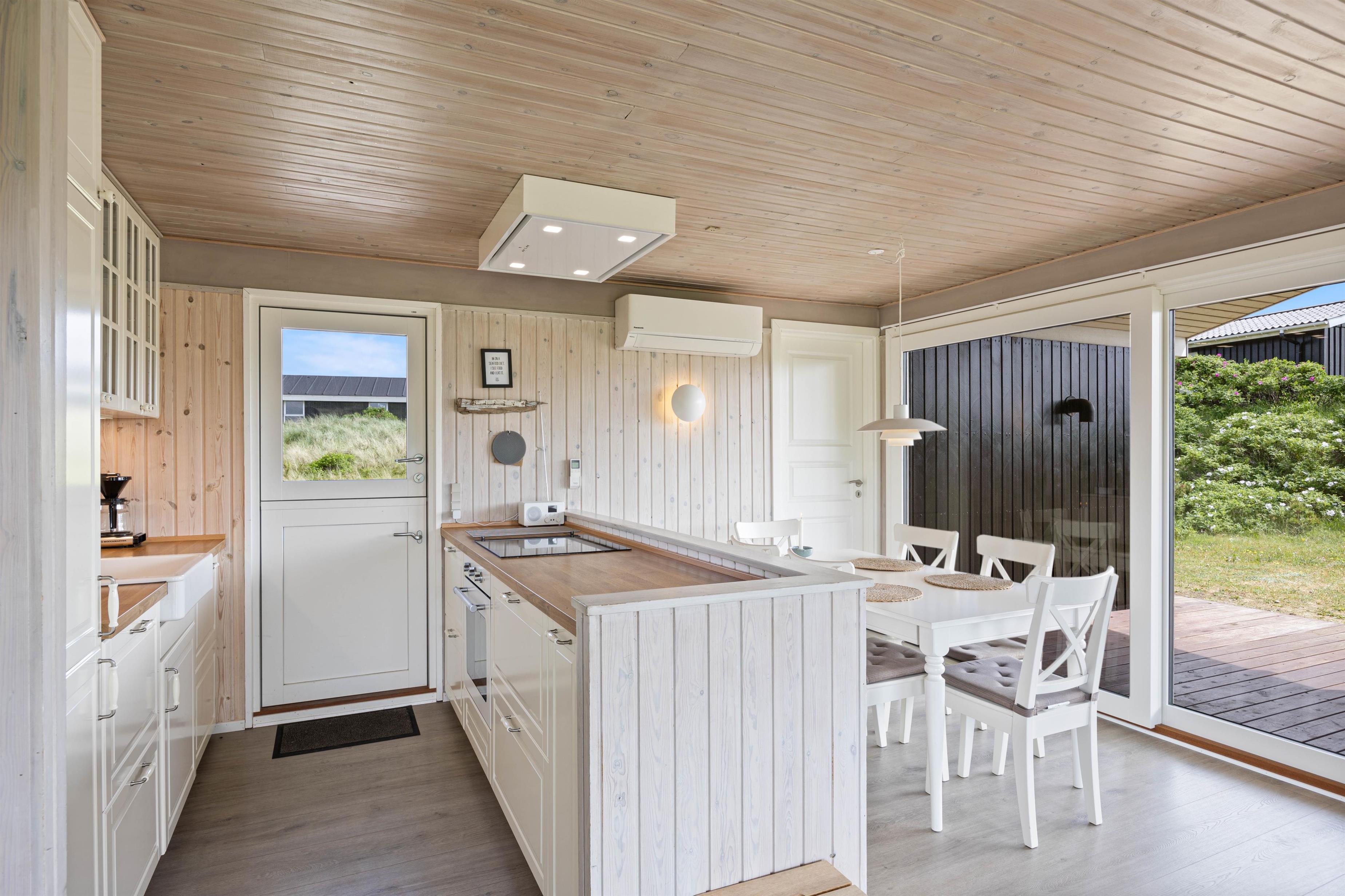 Middagen kan naturligvis tilberedes på feriehusets grill og nydes på terrassen, imens solen går ned bag klitterne og farver himlen purpurrød - og med havet salte duft og dets brusen i baggrunden.