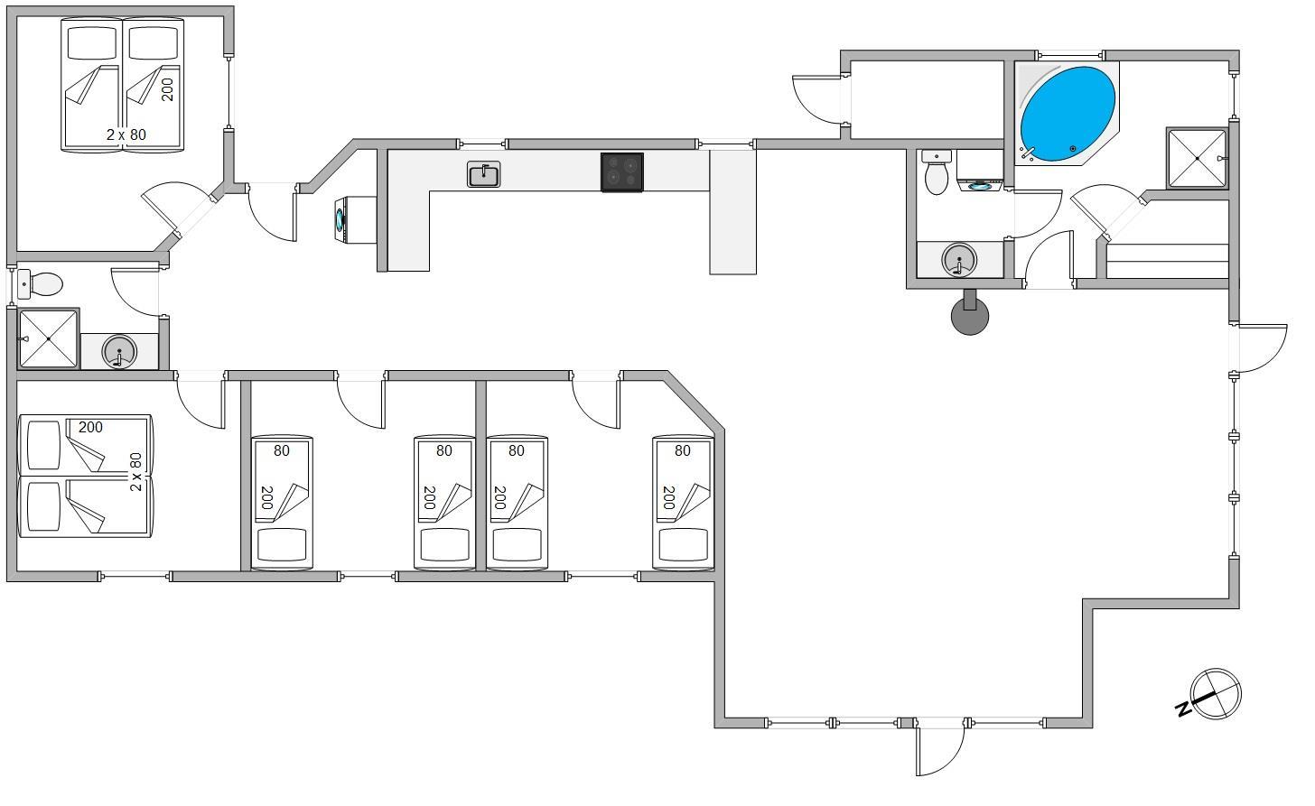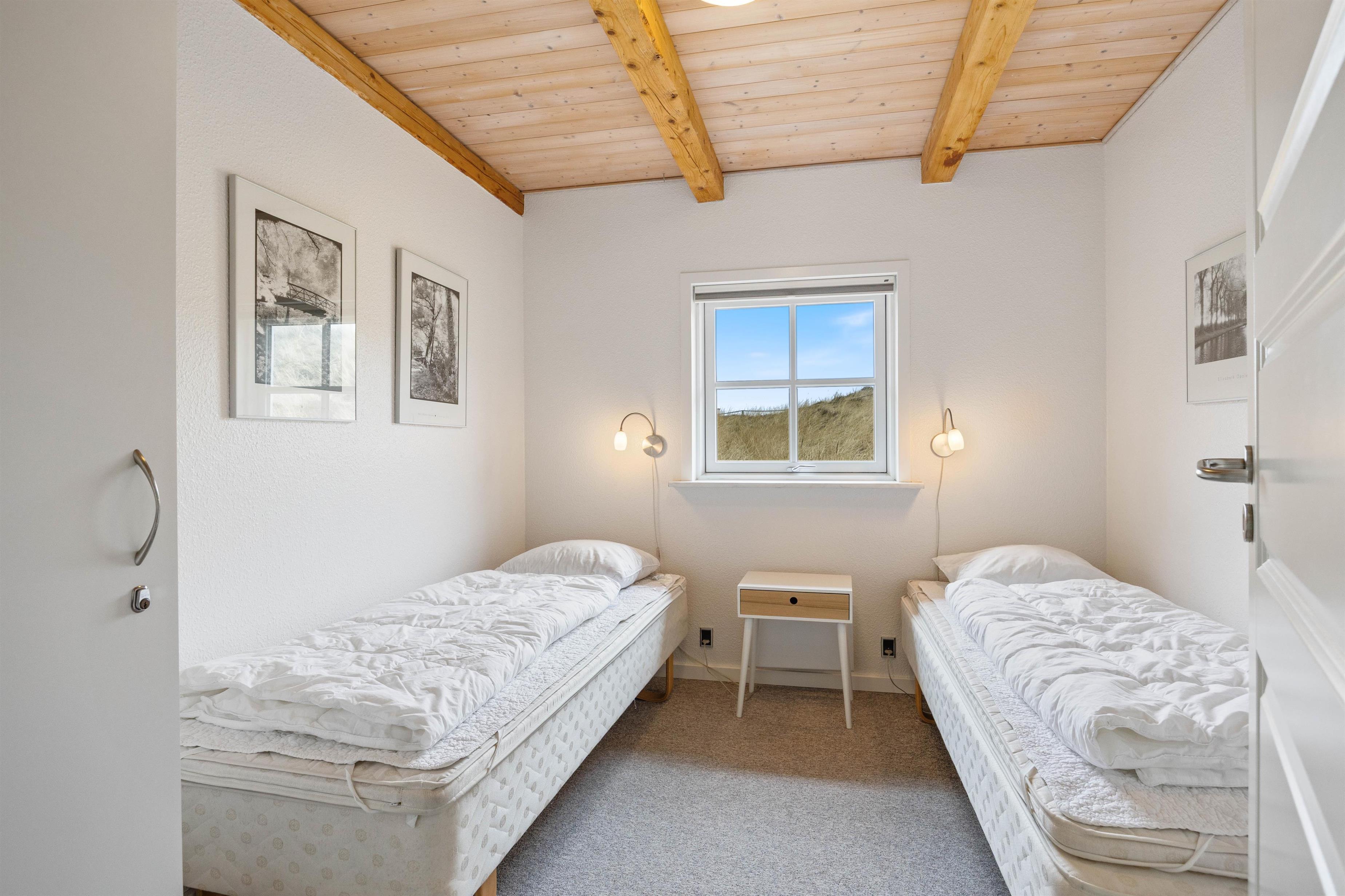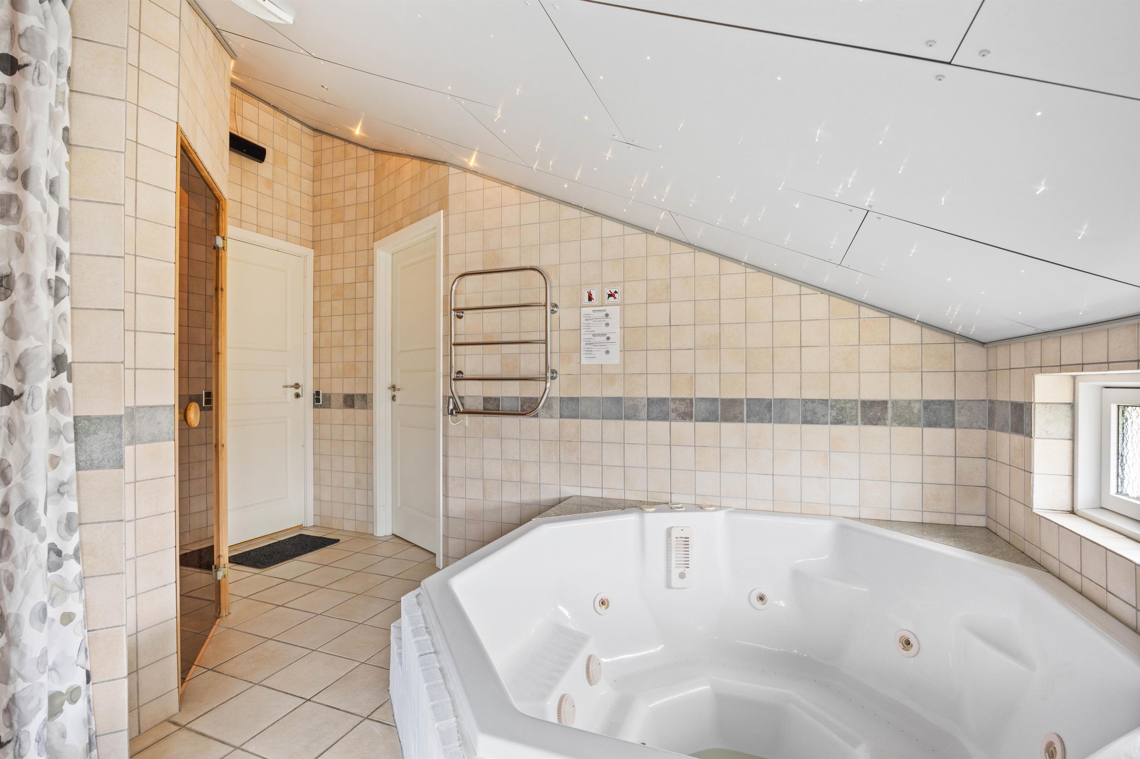 Efter en lang dag i naturen og på stranden, kan I slappe af i det store spabad under en flot “stjernehimmel”, og hvis I herefter har lyst til mere afslapning, er sommerhuset også udstyret med en skøn sauna. Sommerhuset har 2 badeværelser med gulvvarme og begge med bruseniche. Derudover er der 4 gode soverum med henholdsvis 2 dobbeltsenge og 4 enkeltsenge i alt.