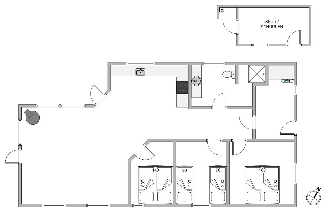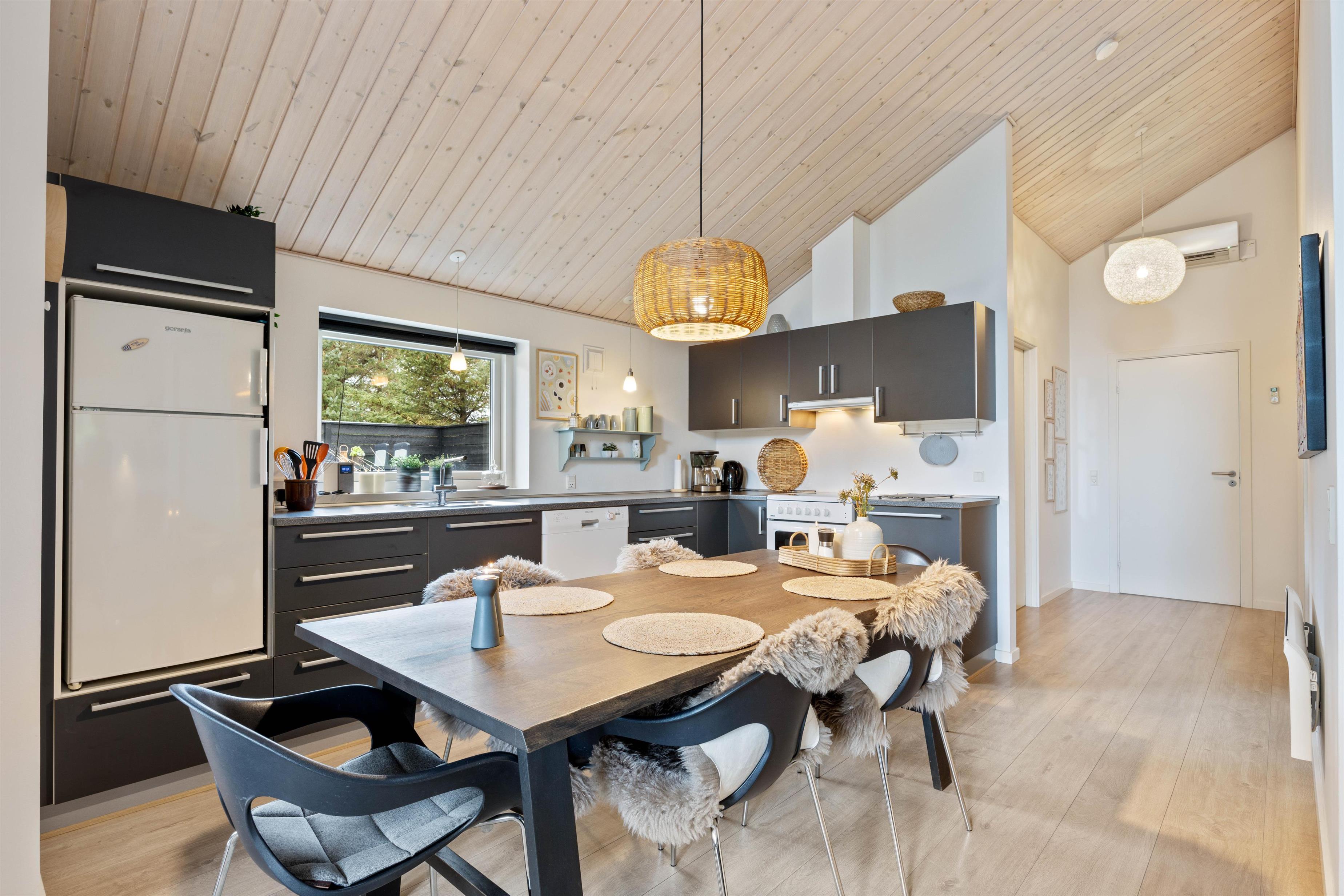 Dette flotte feriehus indbyder rigtig til en skøn og rolig ferie. Sommerhuset er lyst og lækkert indrettet med åbent til kip, store indbydende vinduespartier, som tager naturen med ind i stuen. Feriehuset her har alt, hvad I har brug for til en dejlig afslappende ferie i skønne omgivelser.