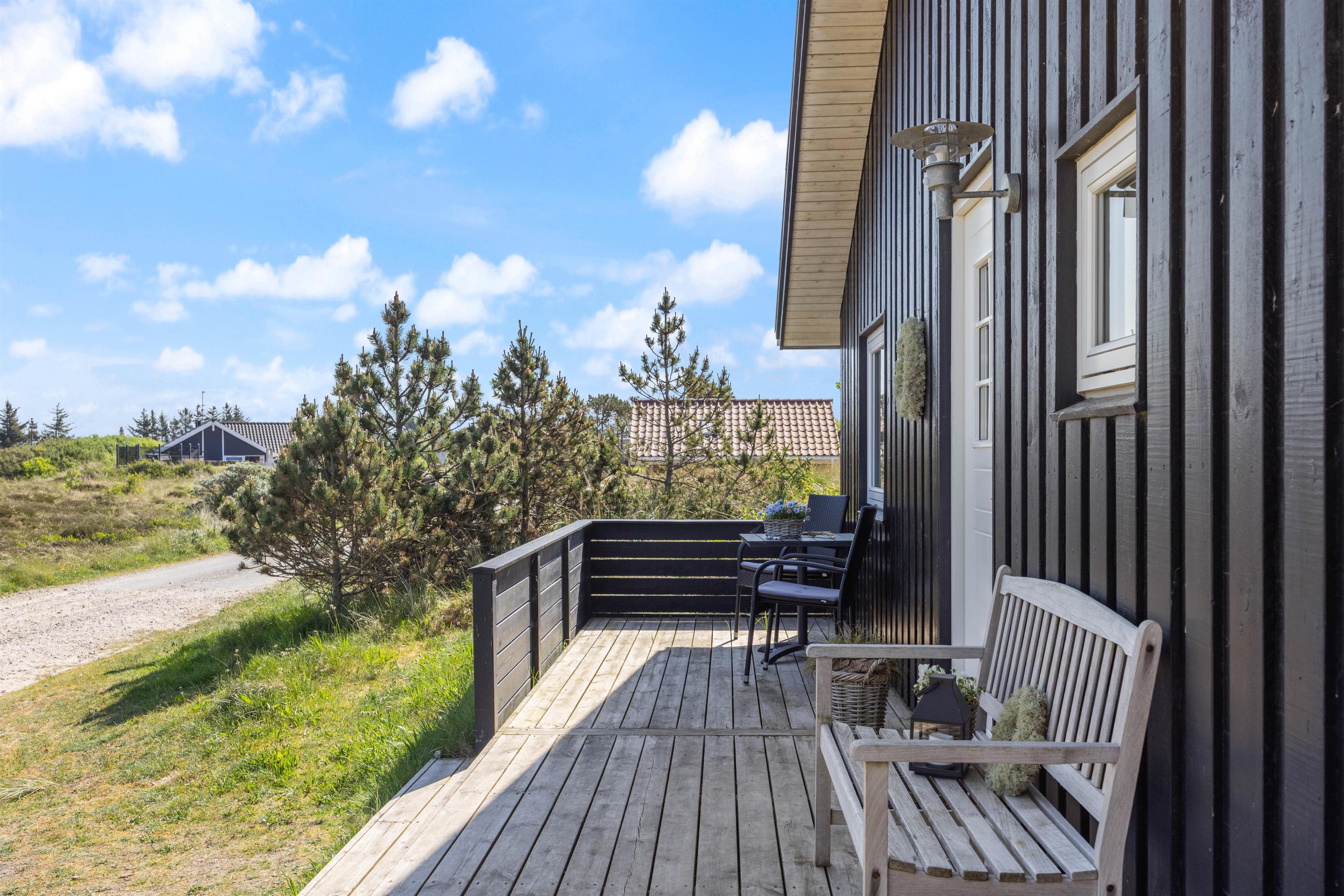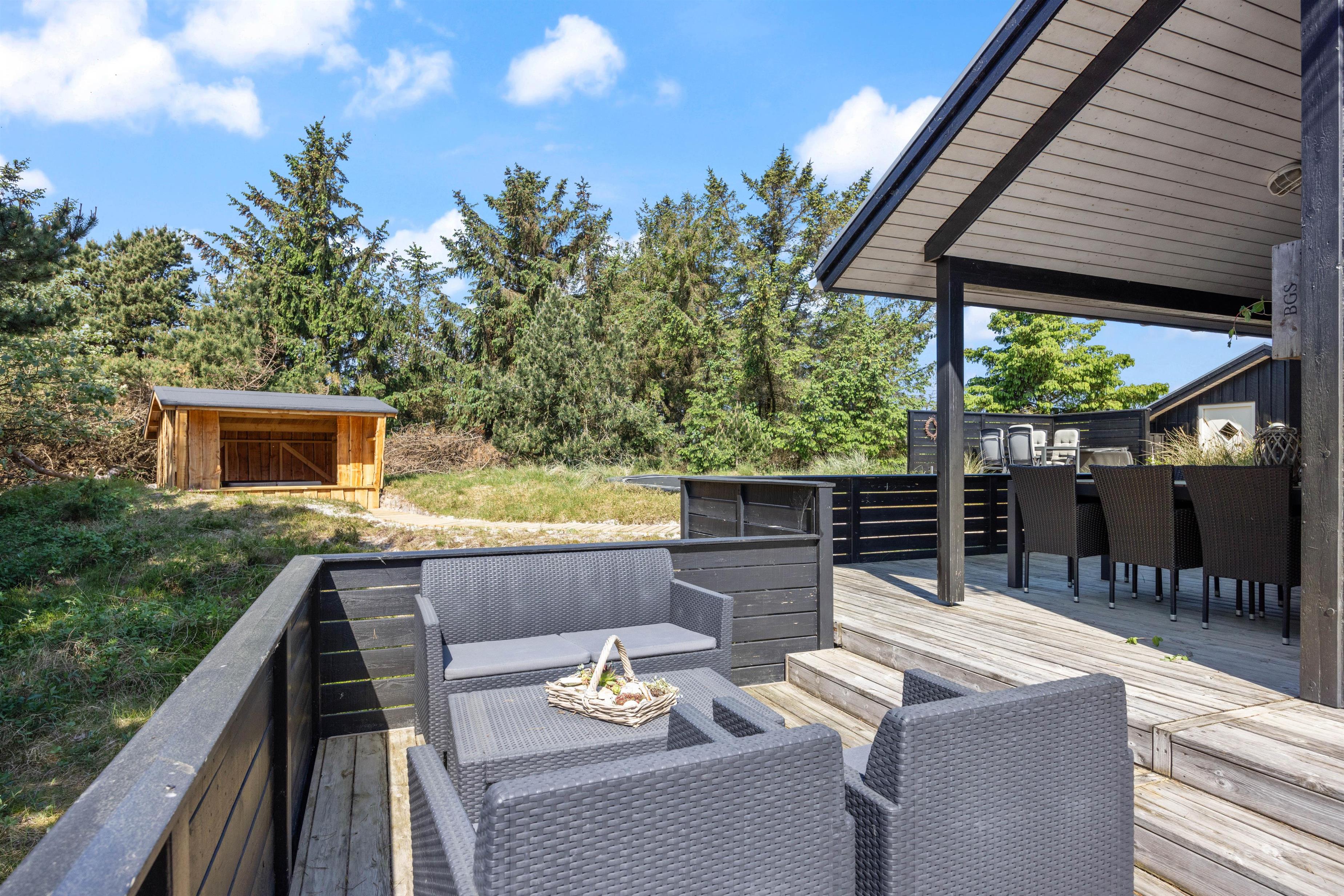 En hyggelig grillaften på terrassen en lun sommeraften, mens I ser himlen farves orangerød over klitterne, må være den ultimative nydelse - og balsam for krop og sjæl. Den overdækkede terrasse er med til at forlænge udesæsonen. Trænger I til varme og afslapning finder I på grunden også en udesauna, som er en sikker vinder. Her kan I få koblet fra og ladet batterierne op.