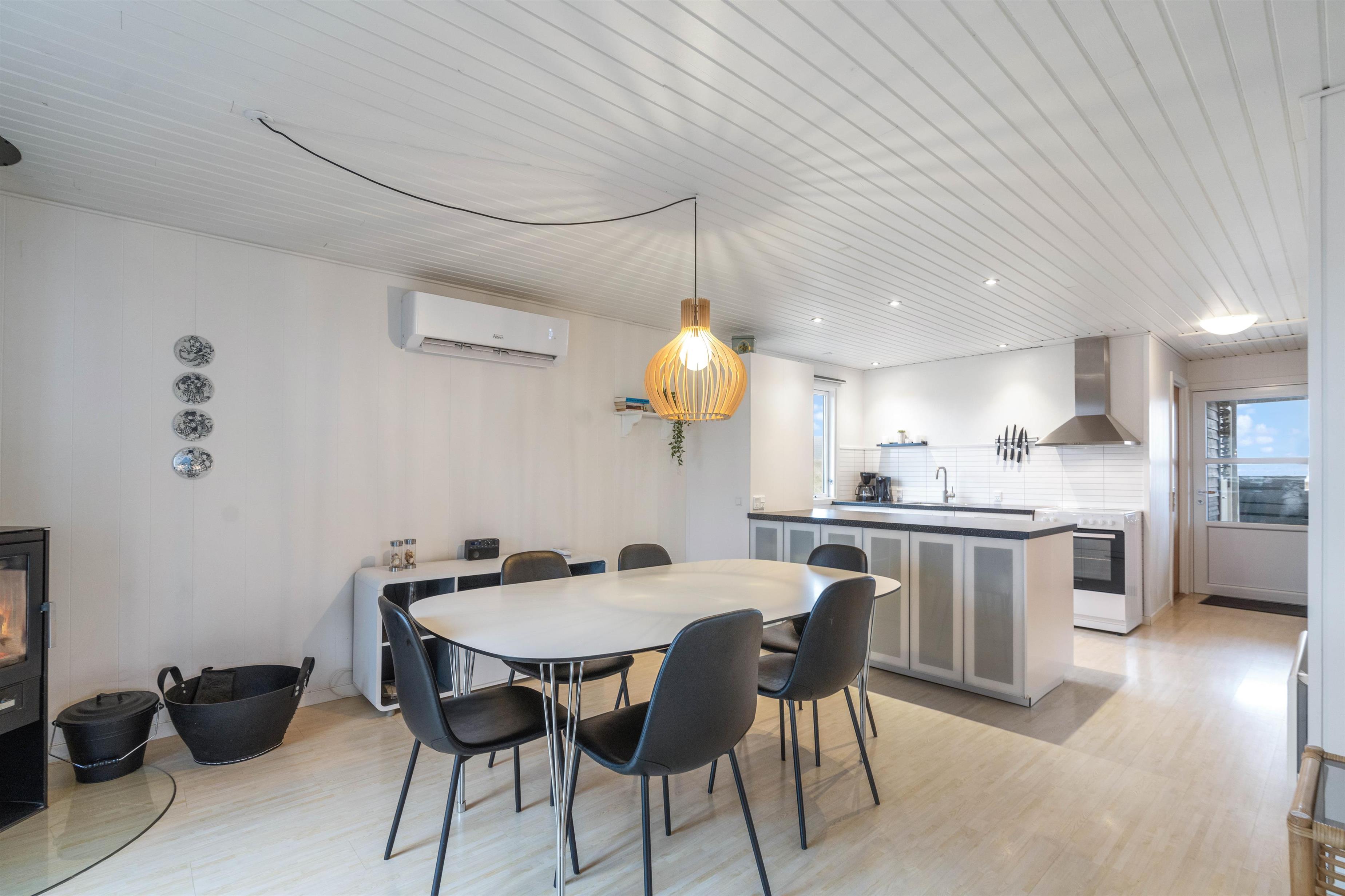 I stuen står brændeovnen for hyggen på de kolde og grå feriedage, og med en kop varm kakao, et spil kort og lyden af de knitrende flammer i baggrunden, kan det ikke blive meget hyggeligere.
