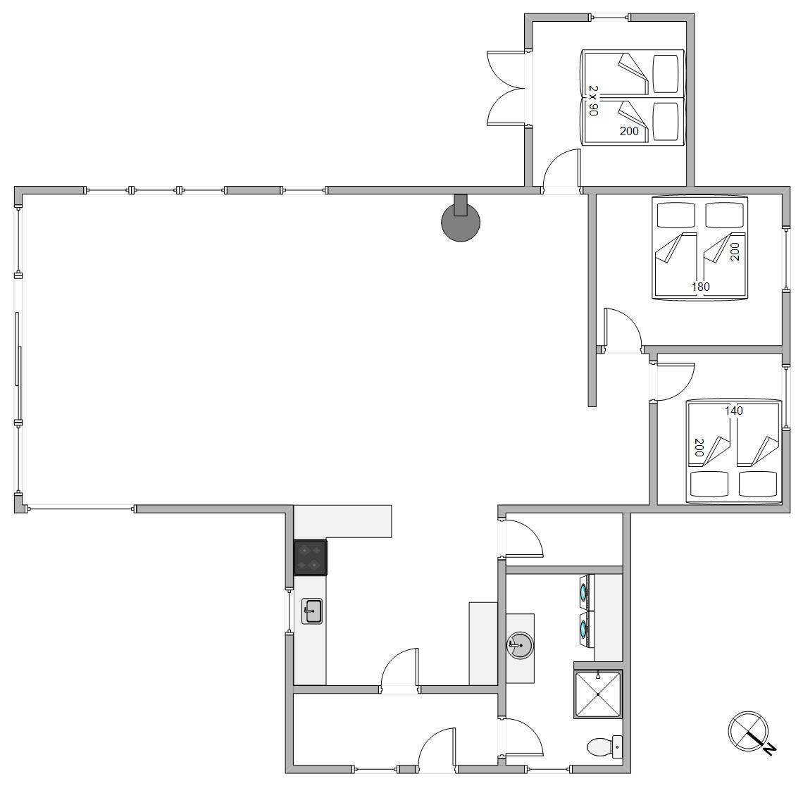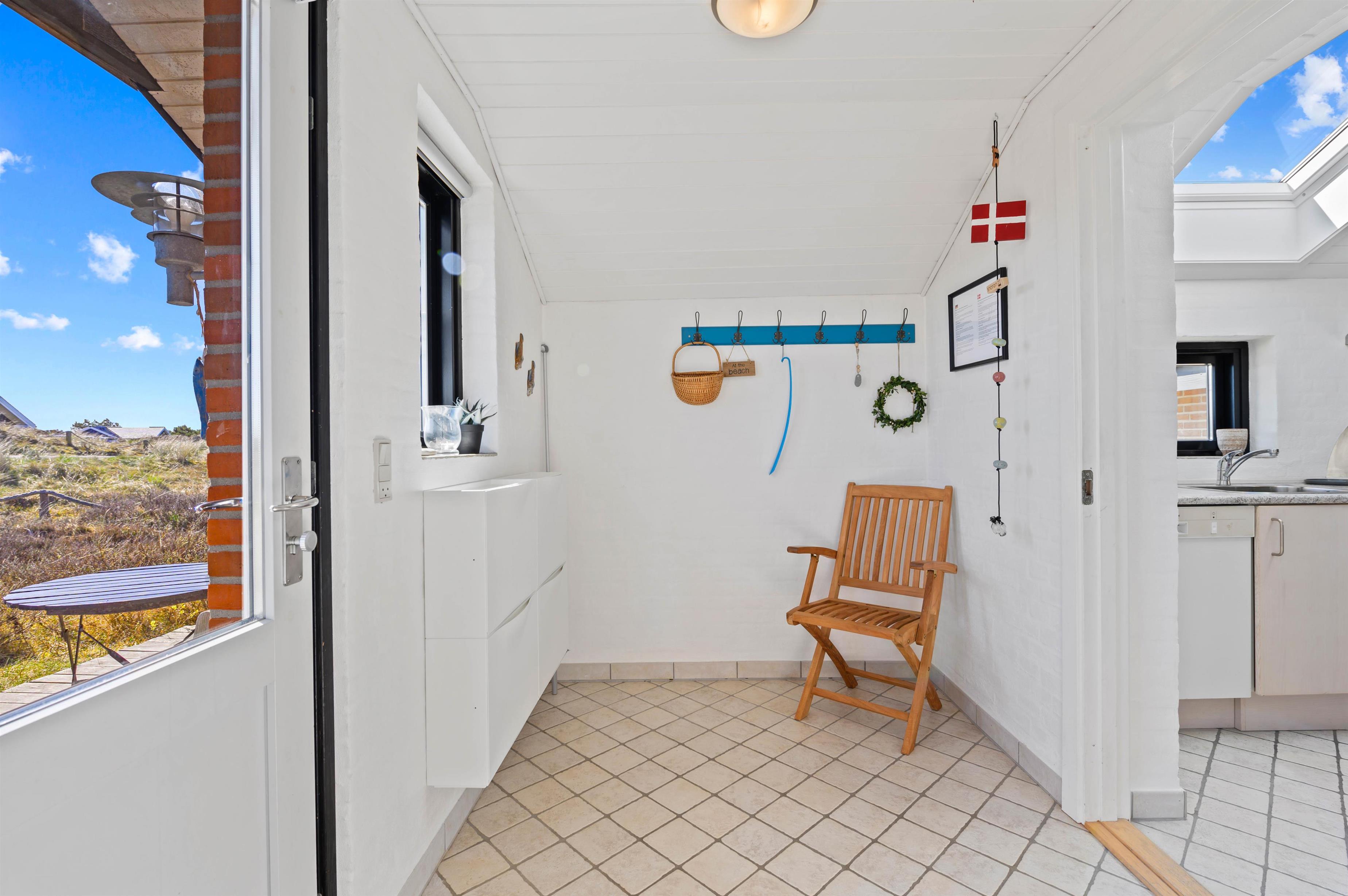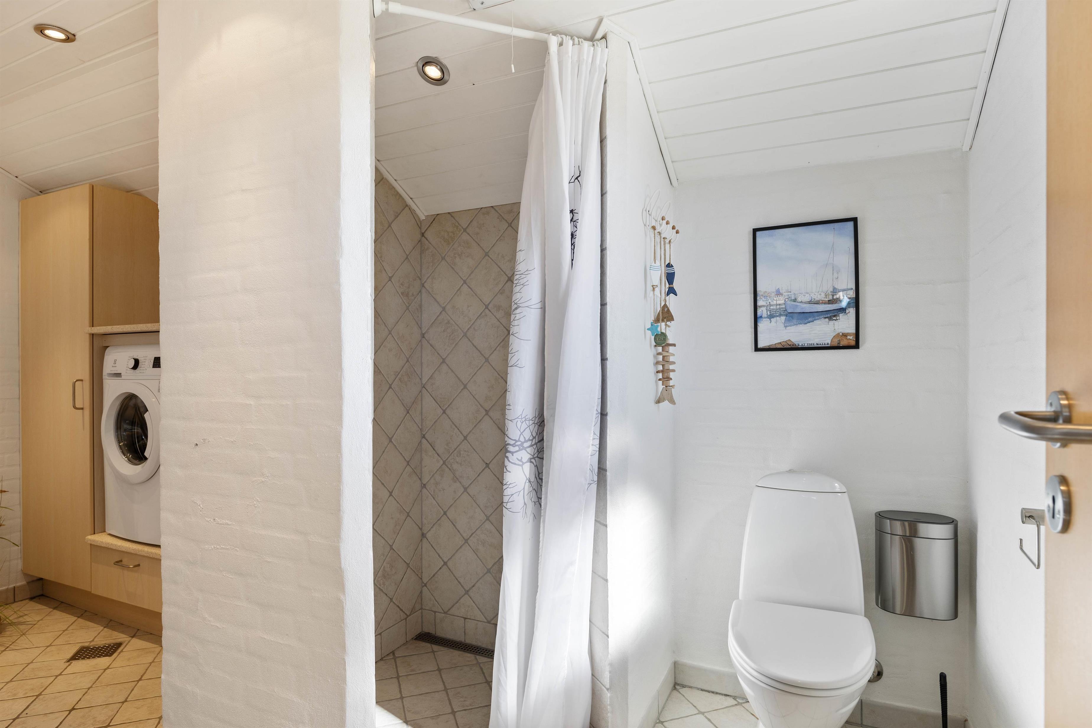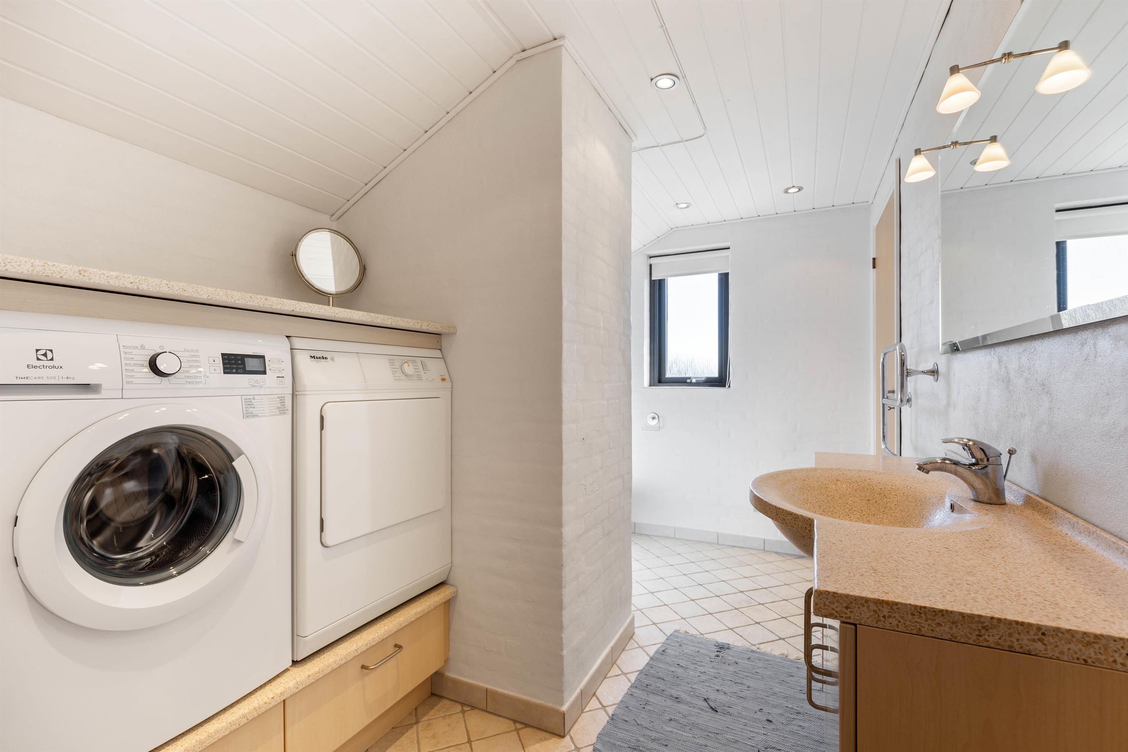 Sommerhuset har et dejligt badeværelse med gulvvarme. Her finder I også både vaskemaskine og tørretumbler, der gør det let at få toppen af vaskekurven, efter en lang dag i klitterne. Sommerhuset råder over 3 soveværelser, der med sine hvide vægge, lyse gulve og lofter venligt indbyder til en god nats søvn.