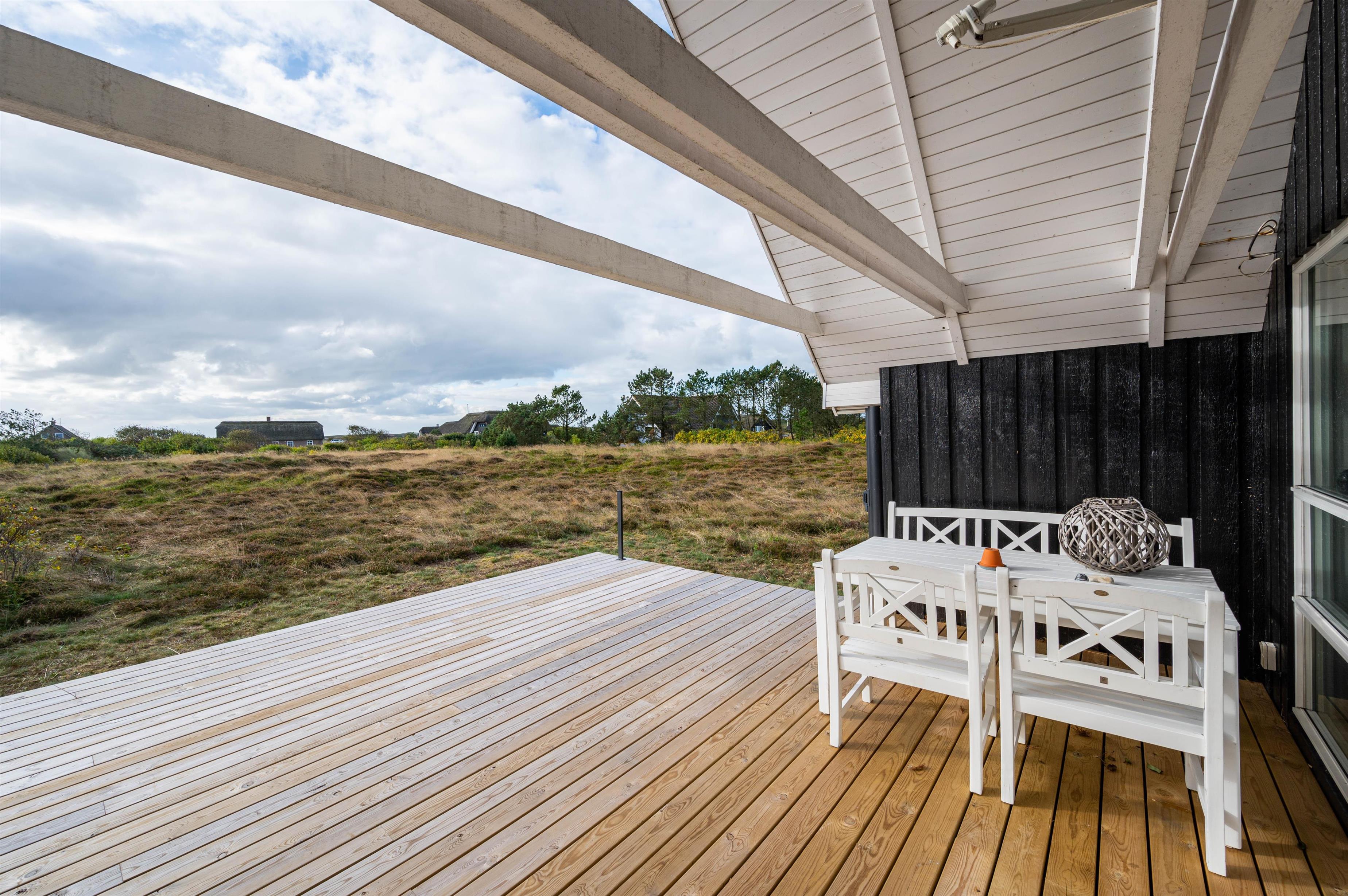 Lige meget hvor vinden kommer fra, og selvom solen ikke skinner, så kan du altid finde en dejlig plet, hvor du kan nyde naturen. Her er en lille gårdhave, hvorfra der er adgang til annekset, hvor der er et værelse med 3 sovepladser og et lille grovkøkken med tørretumbler. Herudover har du en skøn afskærmet vestvendt terrasse samt en fin, overdækket syd- og østvendt terrasse. Her kan du hygge dig med venner og familie hele dagen og nyde en dejlig grillaften.