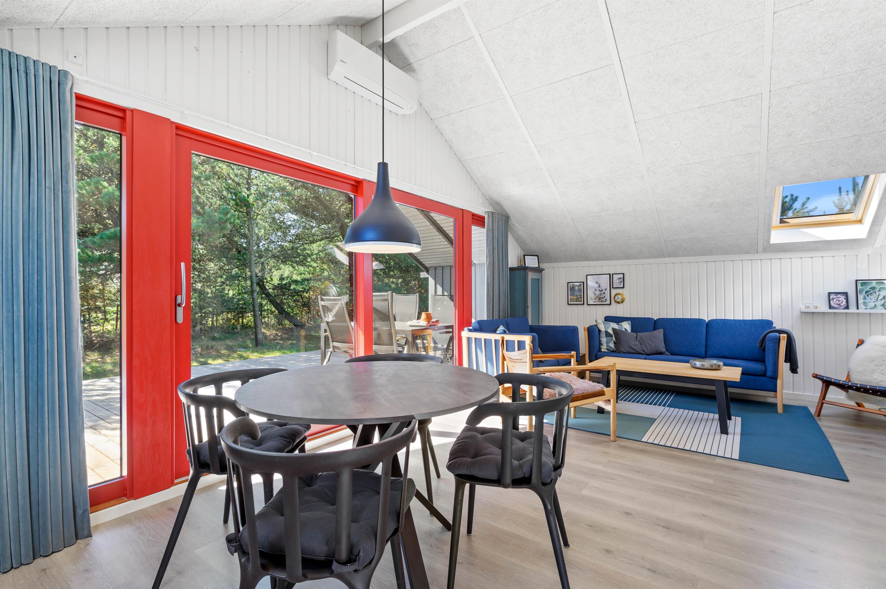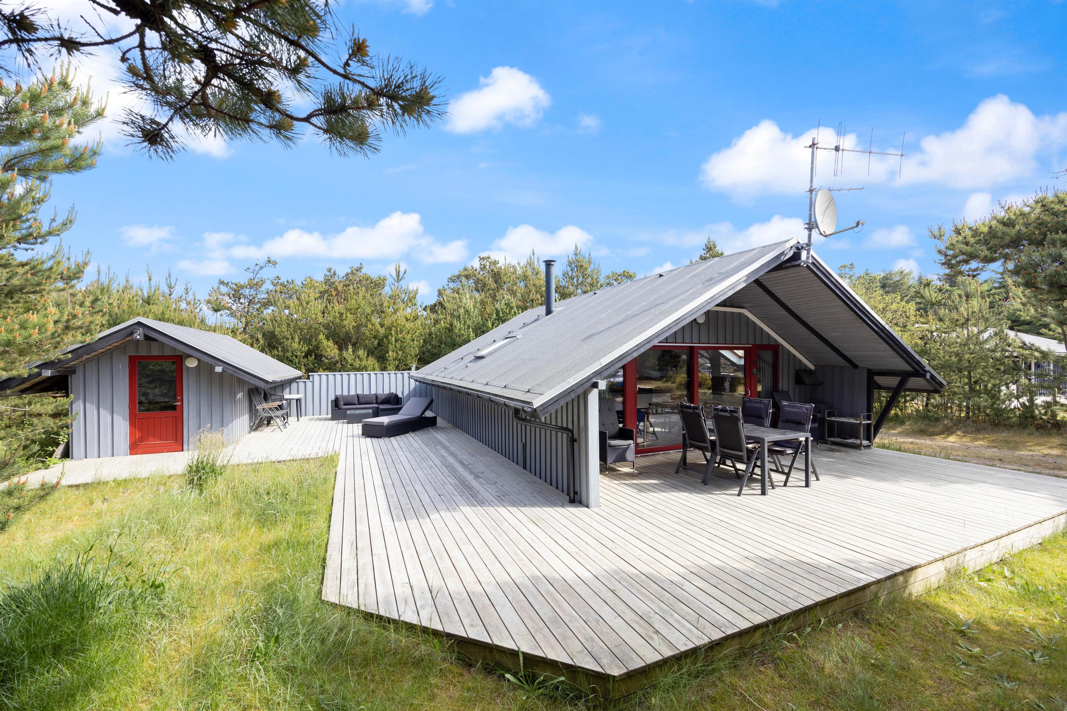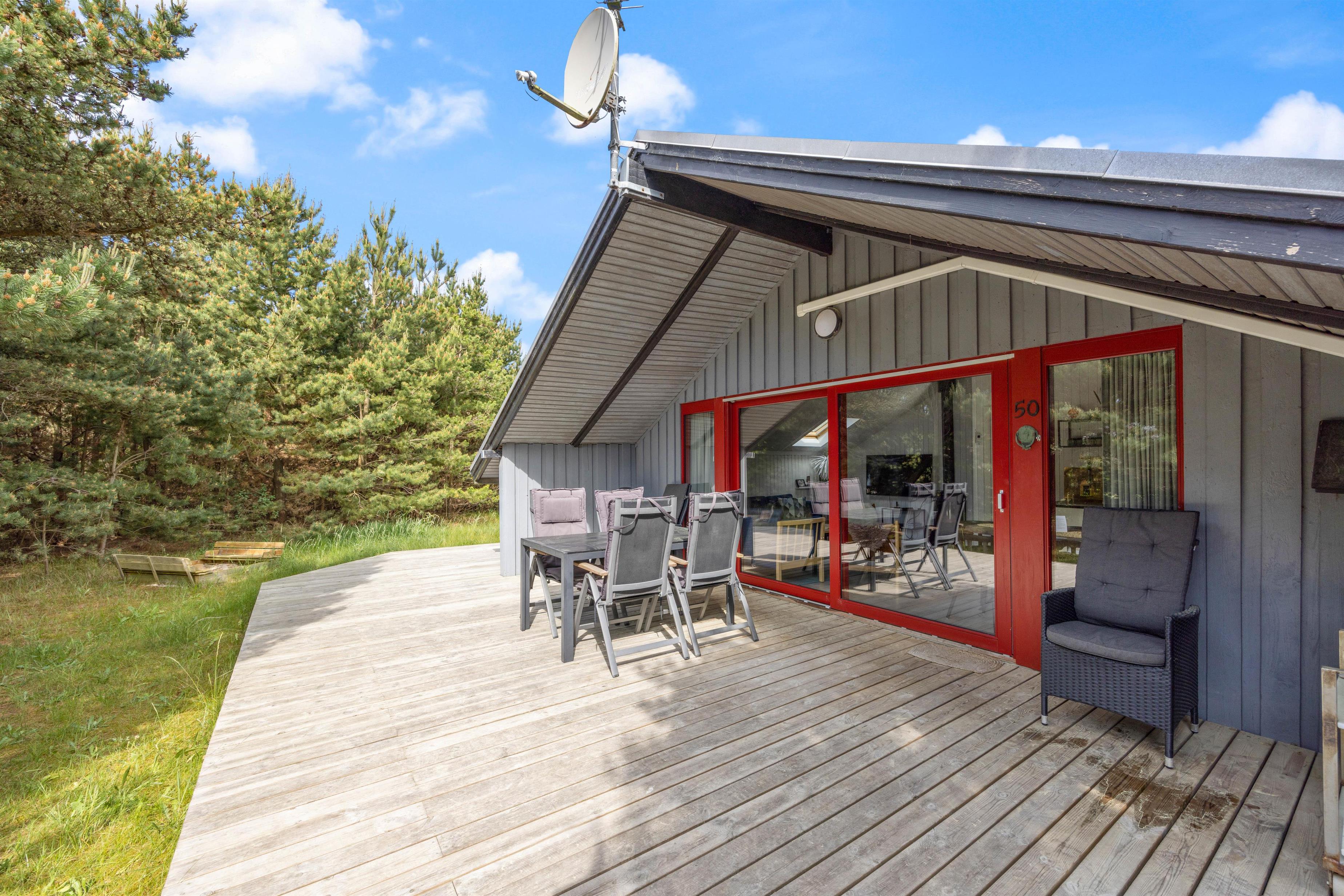 Feriehuset ligger på en naturgrund og har en åben terrasse, hvor komfortable havemøbler indbyder til afslapning med en god bog og en kop kaffe. Nordsøen kan høres i det fjerne, mens du nyder idyllen i feriehuset. Da naturgrunden er omkranset af buske og træer, bor i helt ugeneret og kan slappe helt af på terrassen.