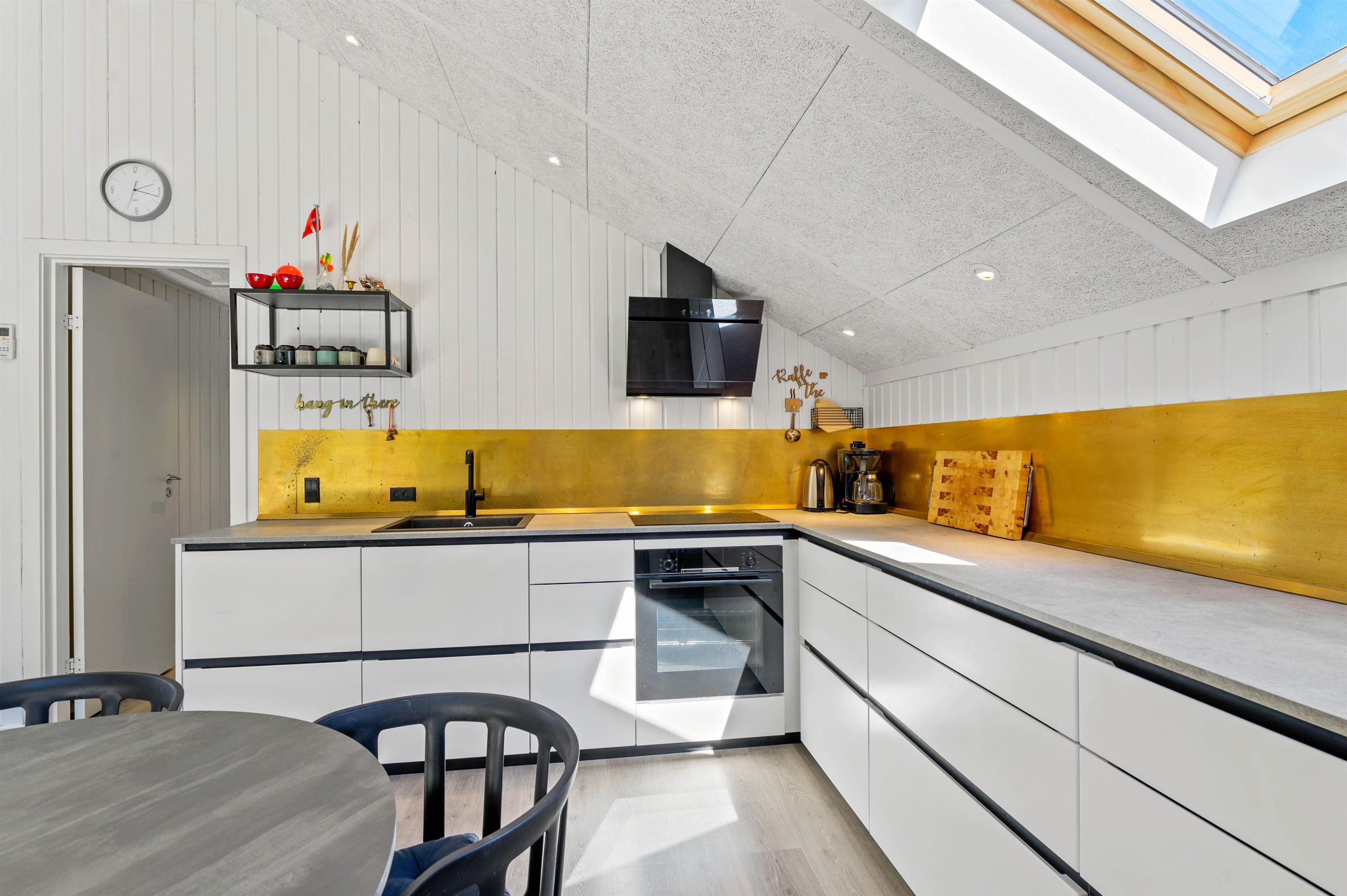 For en lækker morgenmad kan du tilberede denne samt brygge frisk kaffe i køkkenet, som er praktisk udstyret med induktionskomfur og opvaskemaskine. Dette er en afslappet måde at starte ferien på. Den knitrende brændeovn i stuen fuldender det hyggelige samvær i familiens favn og sørger for en behagelig temperatur i opholdsrummet.