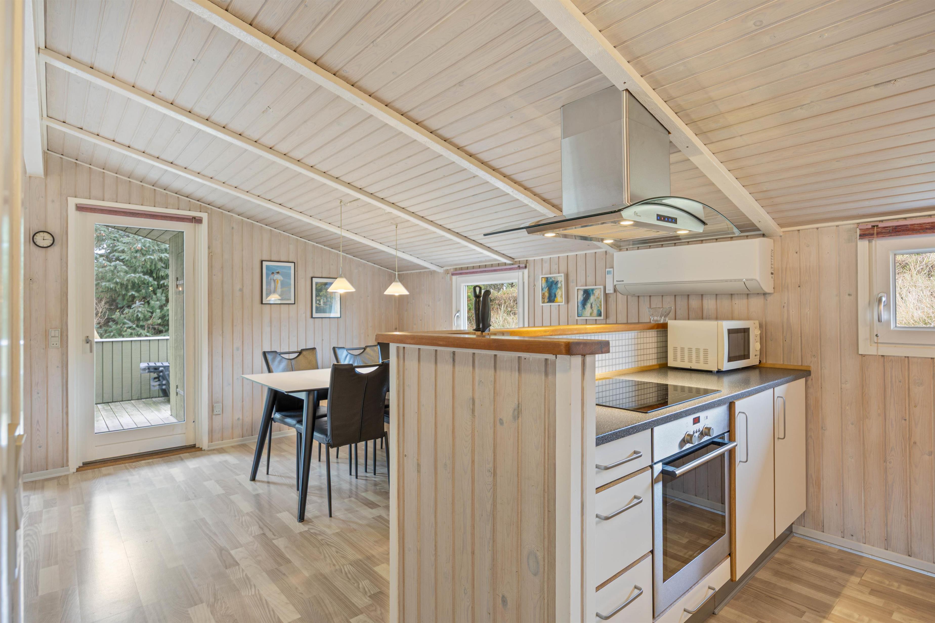 Velkommen i et dejligt feriehus, hvor man har gjort meget ud af den personlige og hyggelige indretning. Her kan der nemt slappes af hele året rundt, om familien samles ved spisebordet eller i den store sofa til familiespil, eller du sætter dig til rette i en af de bekvemme lænestole og nyder en hyggelig regnvejrseftermiddag foran brændeovnen med din yndlingsbog.