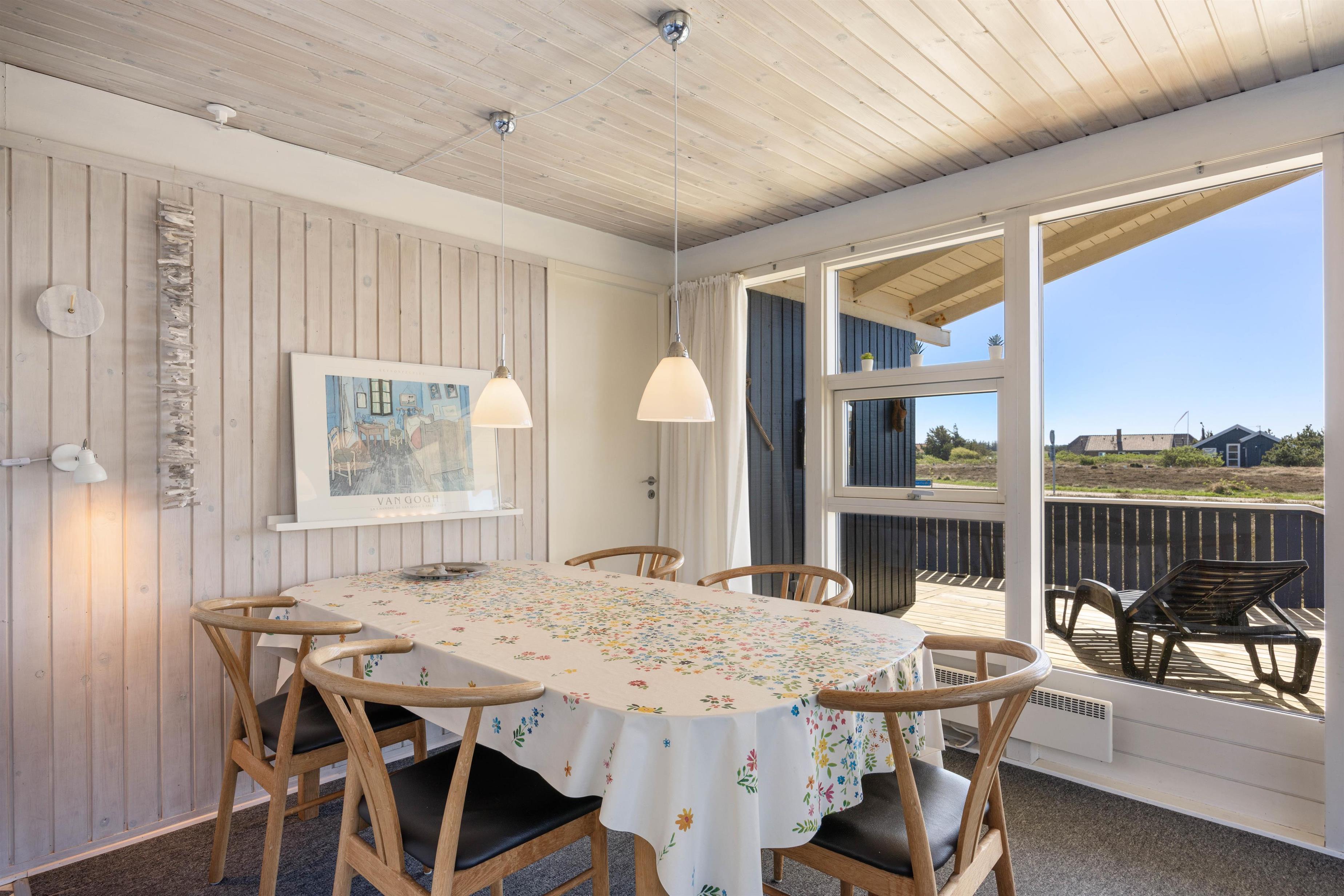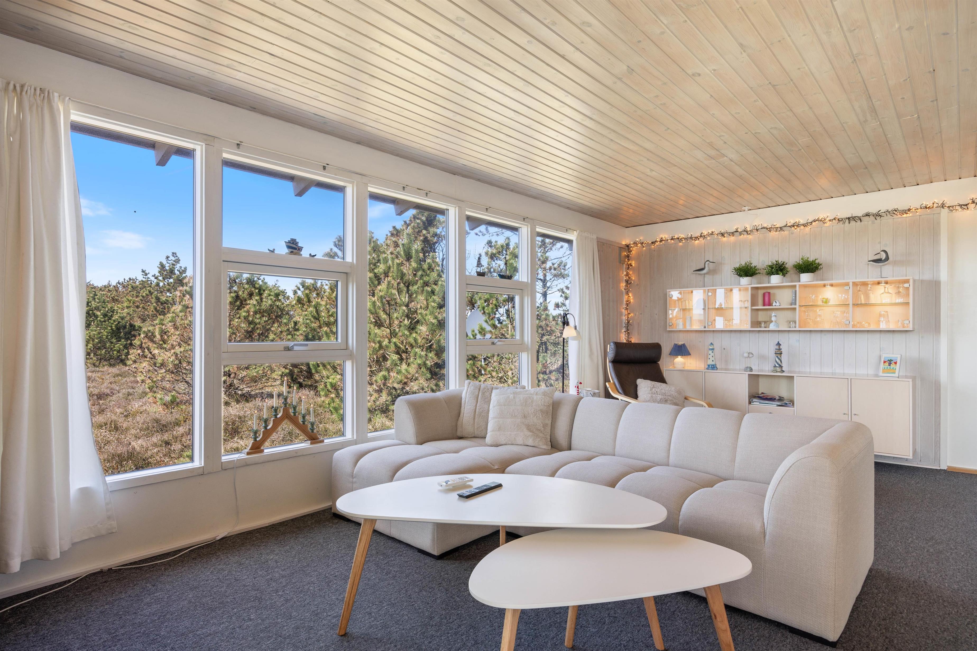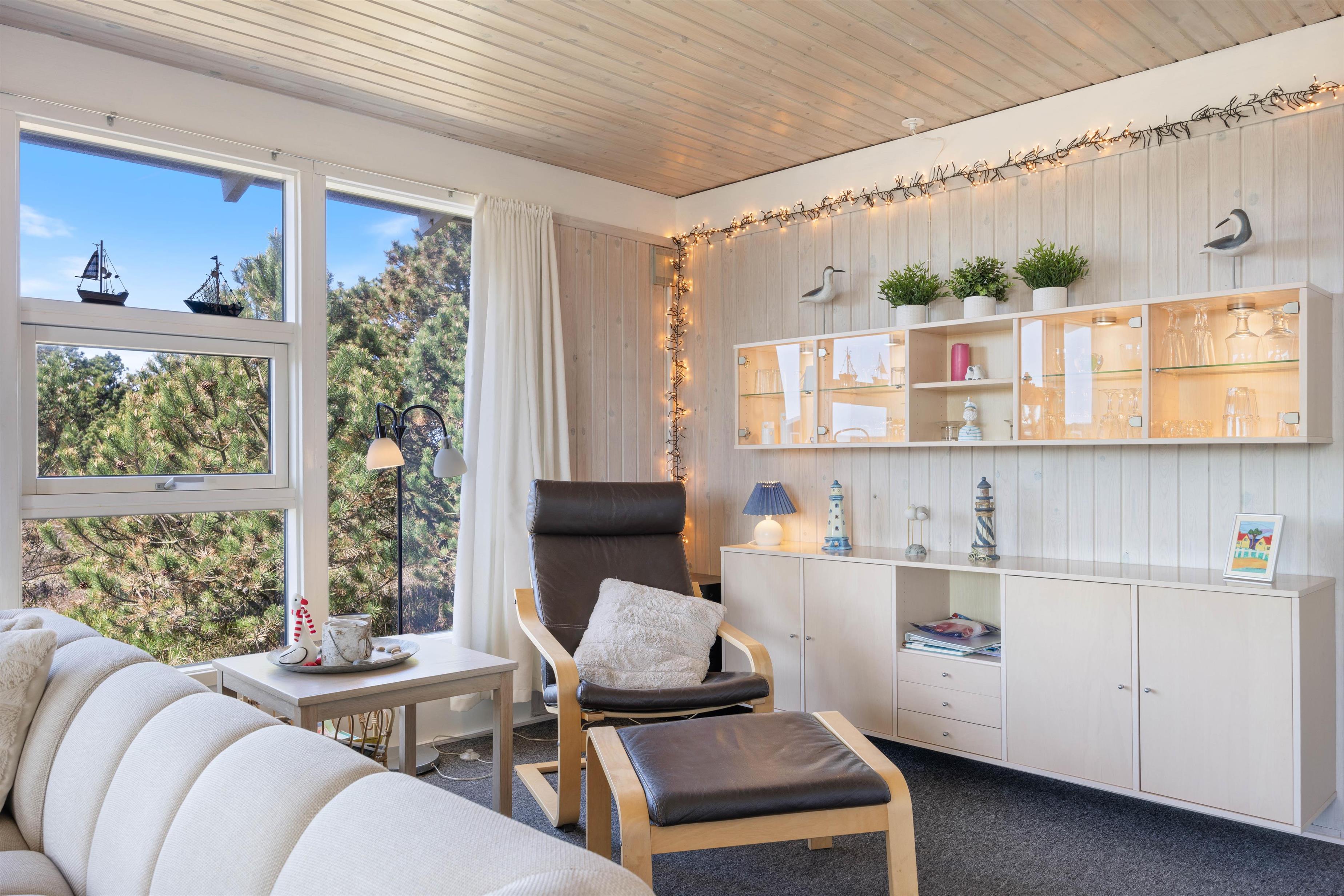 Dette fine, hyggelige sommerhus på 83 m2, Blårbærheden 34, har plads til 5 feriegæster. Sommerhuset lyses dejligt op af dets mange vinduer og emmer af sommerhusstemning med pejs og sauna. Familiens hund kan selvfølgelig komme med og nyde lange gåture på heden, i klitterne og på stranden.
