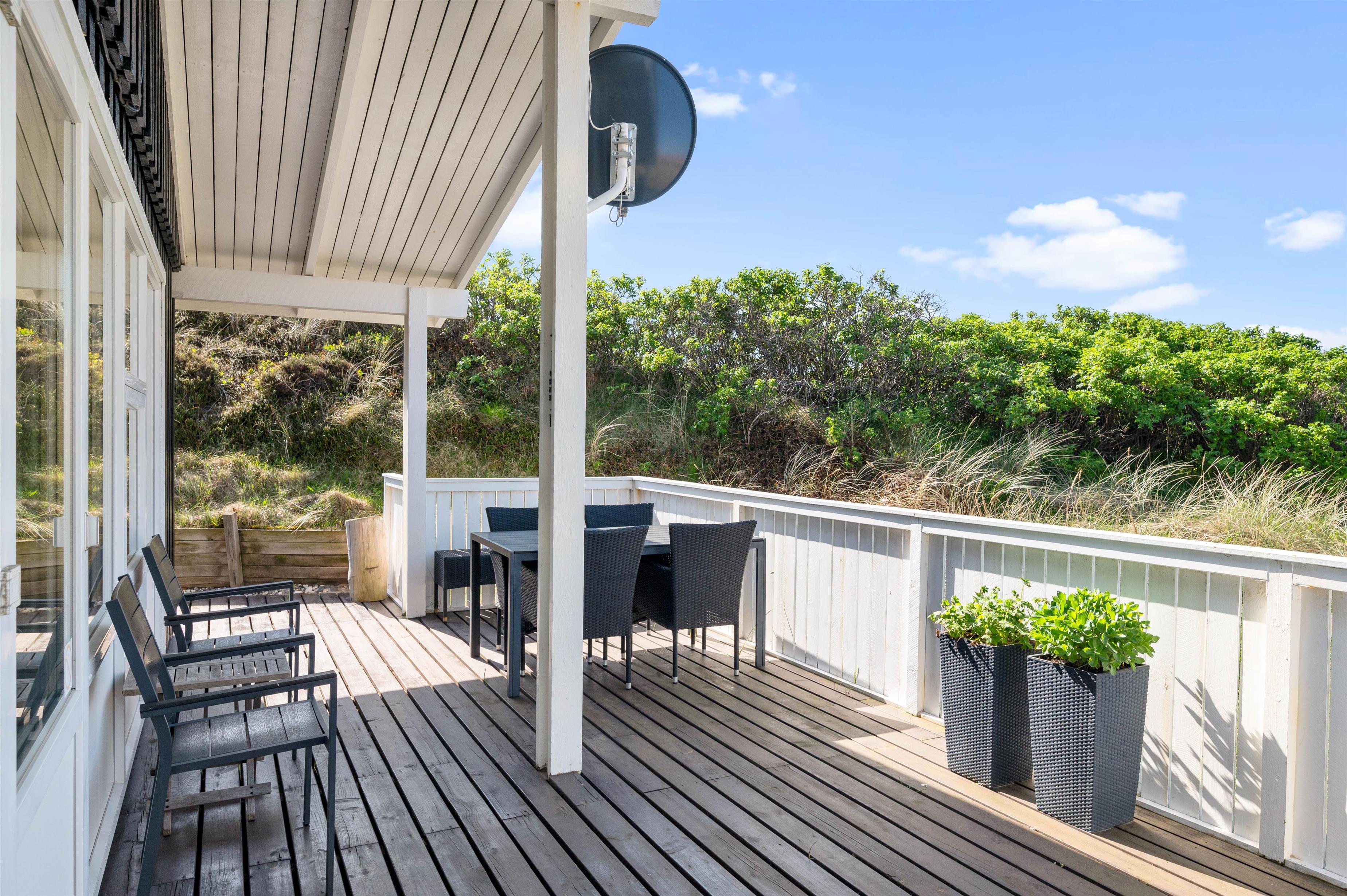 Fra feriehuset er der også en fin udsigt til klitterne. Så uanset om I tager morgenkaffen inde i sommerhuset eller ligger ude på terrassen, så kan I nyde de marehalmsbeklædte klitter, der er pryder landskabet.