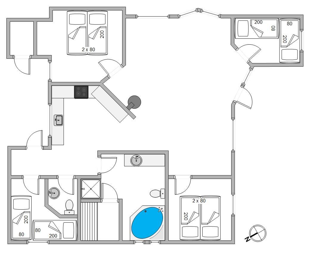 Sommerhuset har 8 sengepladser, som er fordelt på 4 soveværelser - 2 med dobbeltsenge og 2 mindre værelser med 2 enkeltsenge hver. På et af soveværelserne er der et ekstra TV med DVD-afspiller og chromecast (ingen TV-kanaler) samt en Nintendo WII inklusiv spil - her vil børnene uden tvivl elske at bo på ferien. I stuen er der også et Apple TV samt bluetooth højtaler, så I altid kan streame alverdens film og høre en masse god musik.