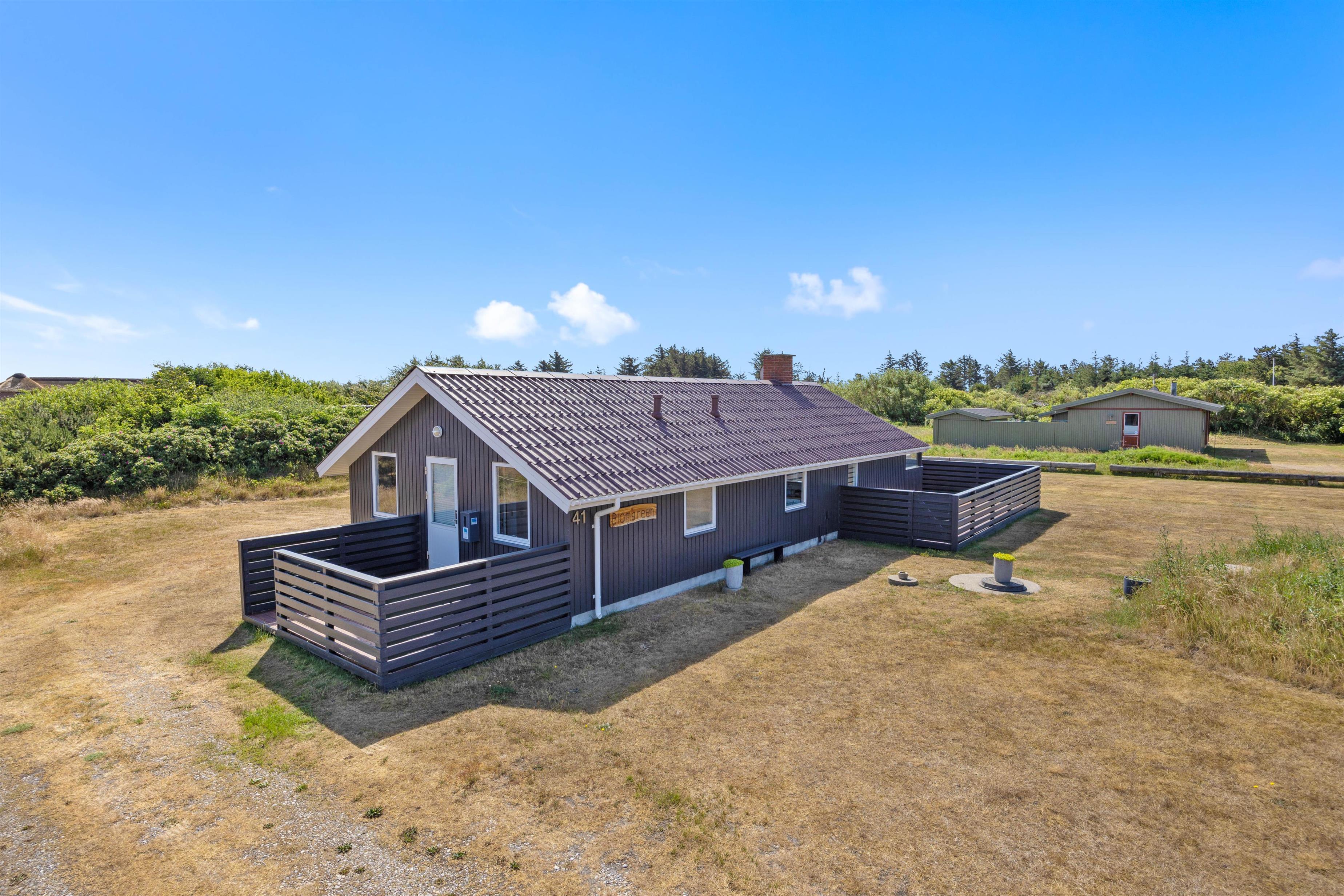 Her kan I holde ferie i et dejligt sommerhus med rolig beliggenhed på en plænegrund. Sommerhuset har en fin lukket terrasse, ideelt hvis I har småbørn eller husdyr med. Der er plads til 6 personer samt 2 hunde. Sommerhuset er beliggende på en naturgrund med gåafstand til både Vesterhavet og indkøbsmuligheder. I sommerhuset er der desuden en gratis trådløs internet forbindelse samt sauna.