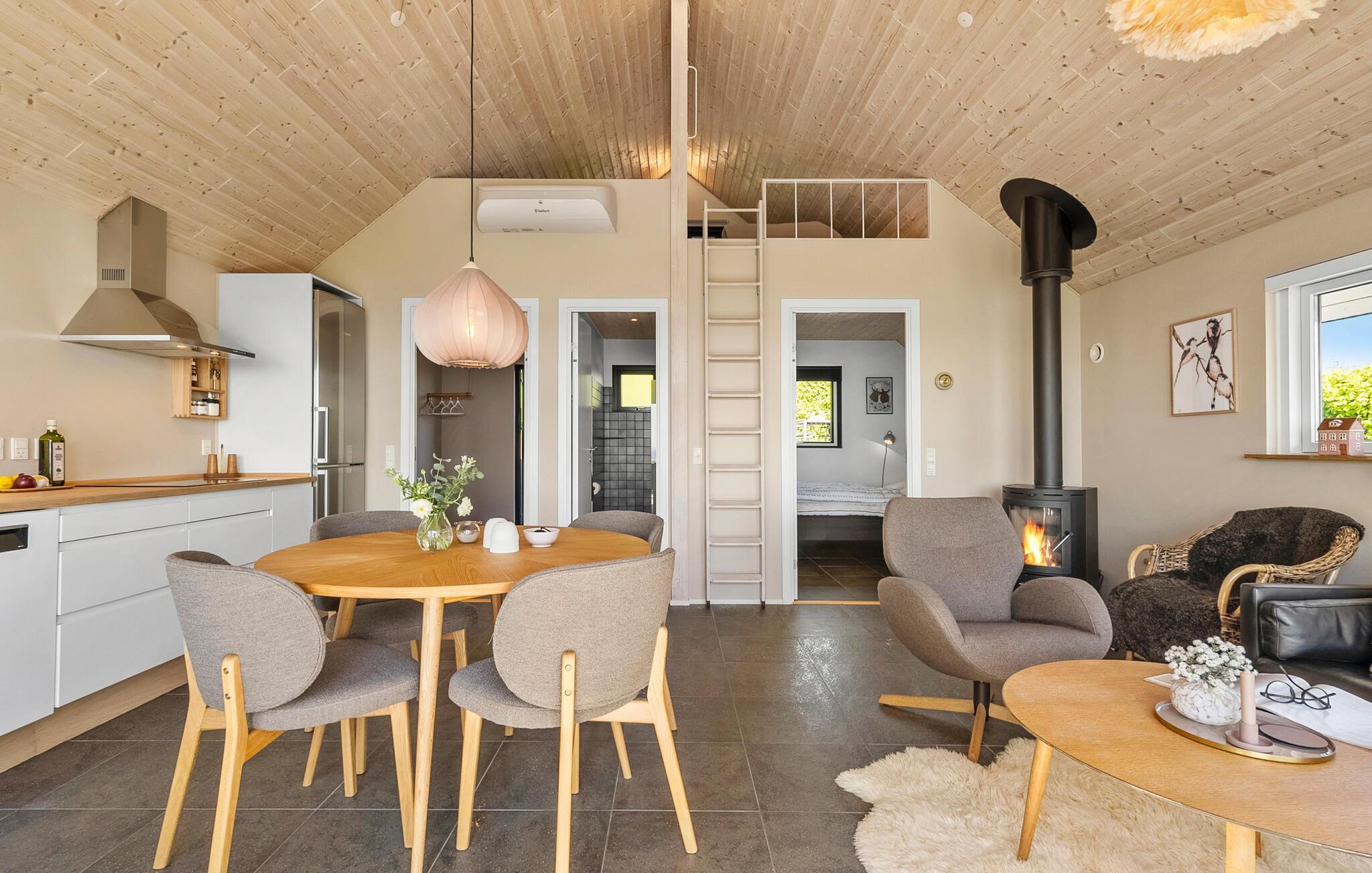 Velkommen til et lille helle og en pause fra den travle hverdag. Dette skønne hus ligger ud til Lillebælt og emmer af ro, kvalitet og feriestemning. Fra den åbne opholdsstue med panoramavinduer har I altid udsigt til bæltets rolige vand, så det kan I nyde, mens I sammensætter dagens retter eller tilbringer en afslappende stund med bøger, brætspil og ild i brændeovnen.