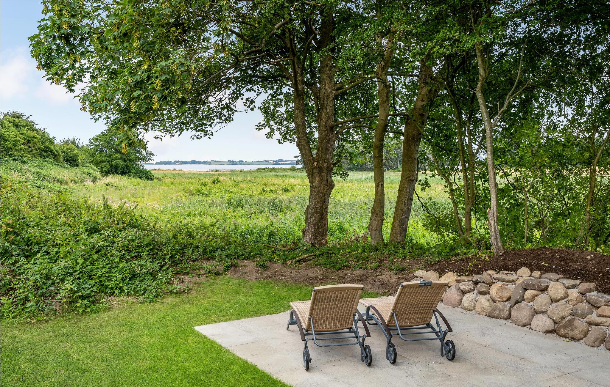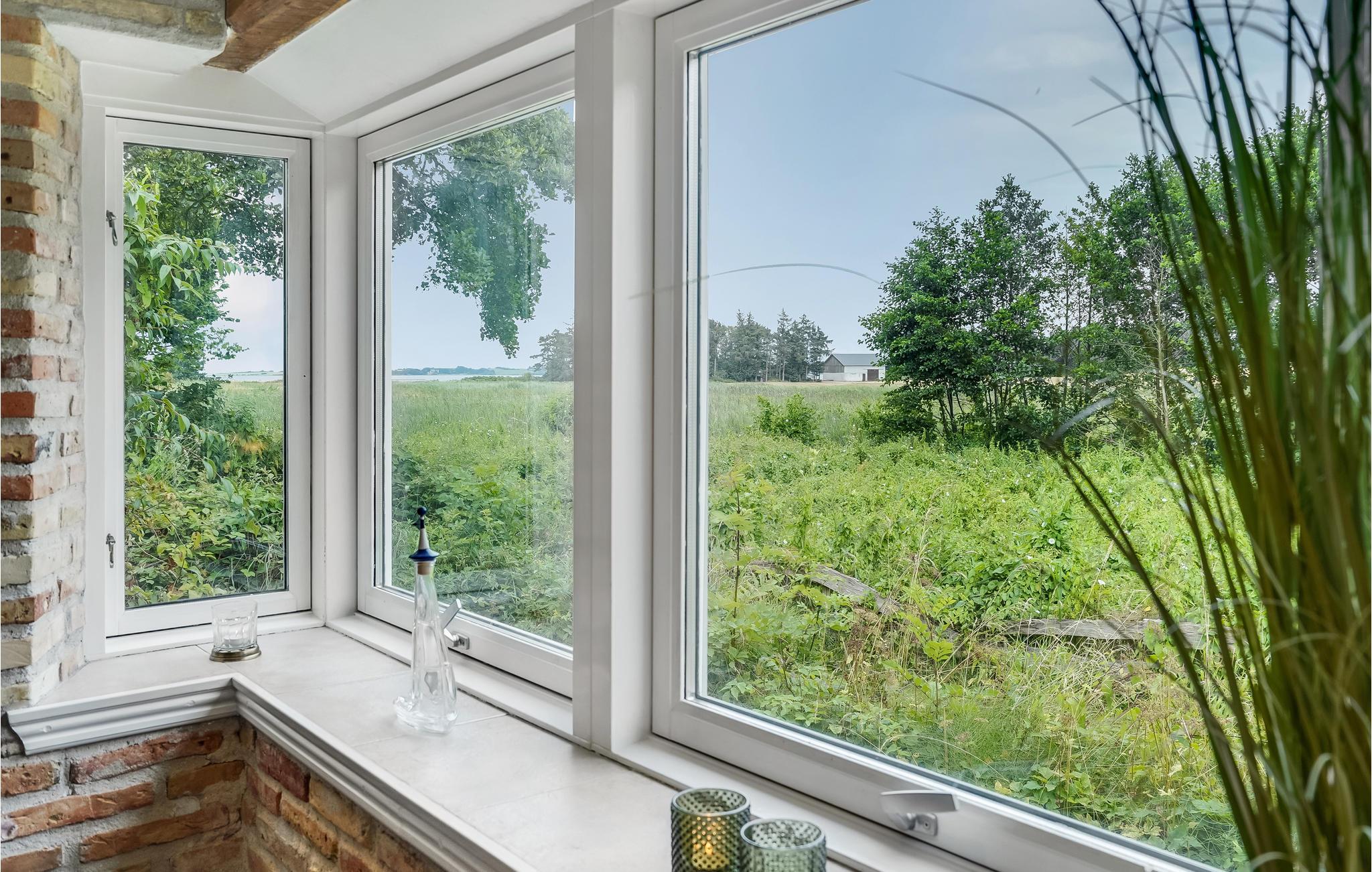 Hyggeligt feriehus med havudsigt, brændeovn, stor naturgrund og nær Blåkrog Strand i Aabenraa.