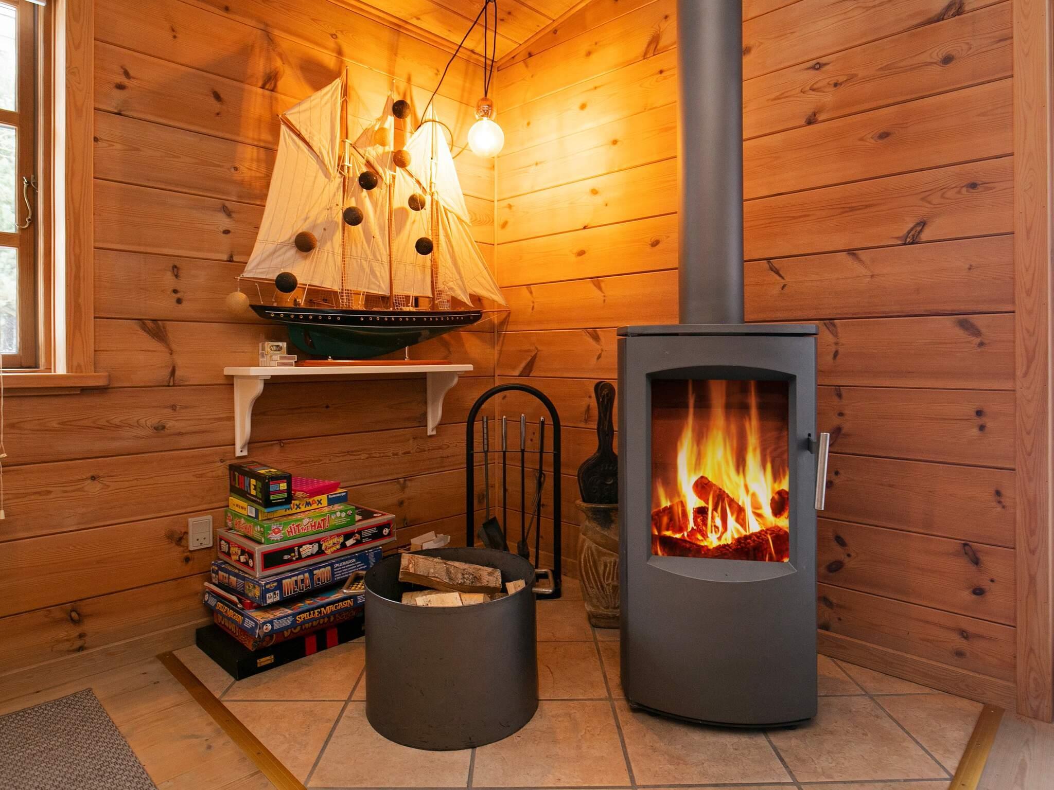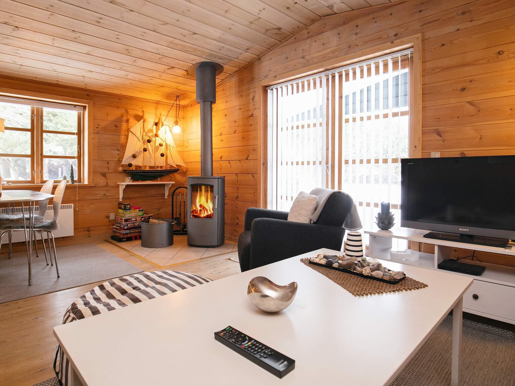 1 Opholdsstue: Brændeovn, radio, dvd-afspiller, tv