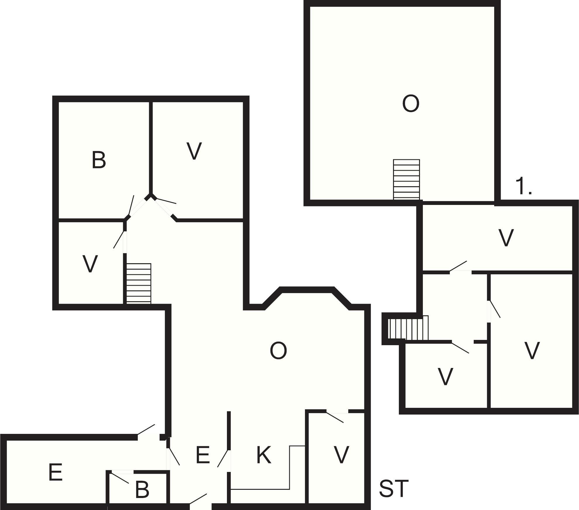 6 Soveværelser: (1DS+2K)+(1DS+2K)+(1DS)+(2S)+(1S)+(1S), barneseng