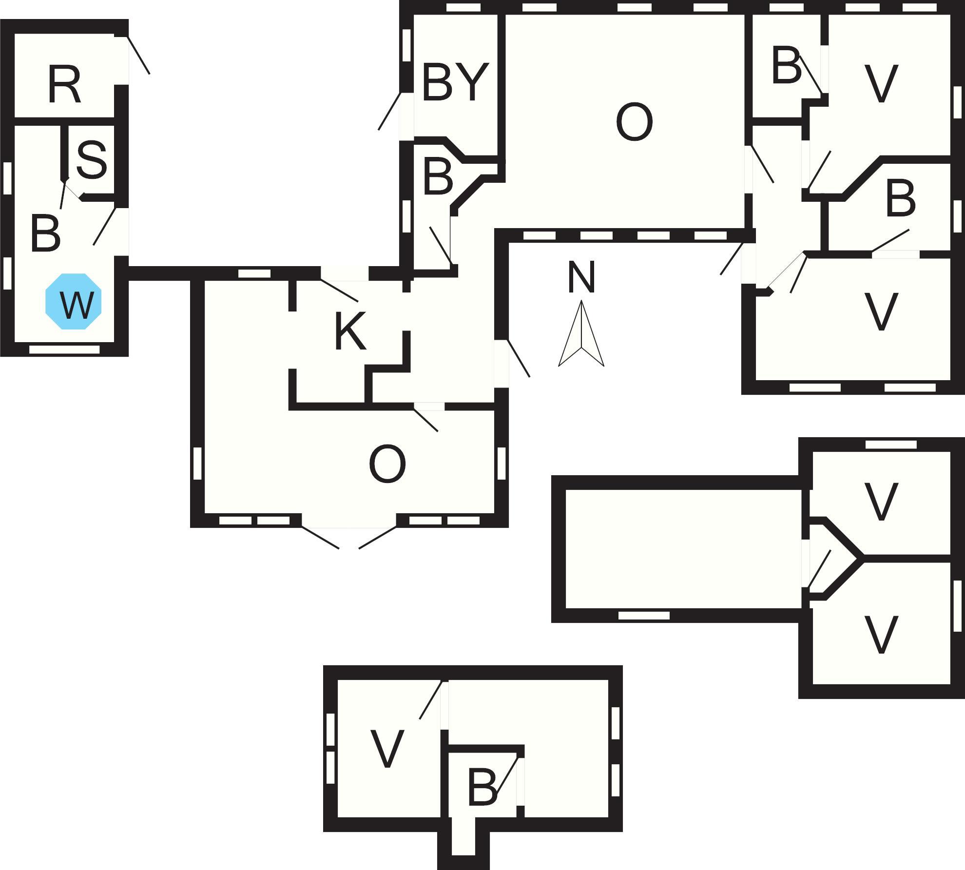 5 Soveværelser: (1DS)+(1DS)+(1DS)+(2S)+(2S), barneseng