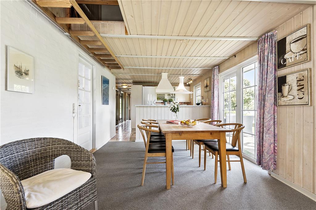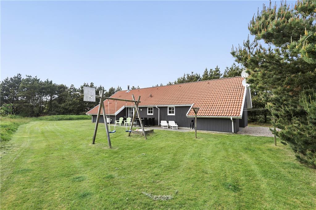 Her finder I to store terrasser og masser af plads til at boltre sig på, på den store græsplæne. Der er gyngestativ og sandkasse til børnene.