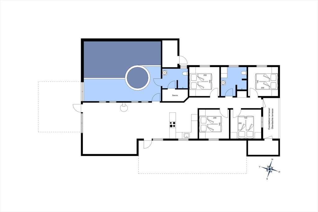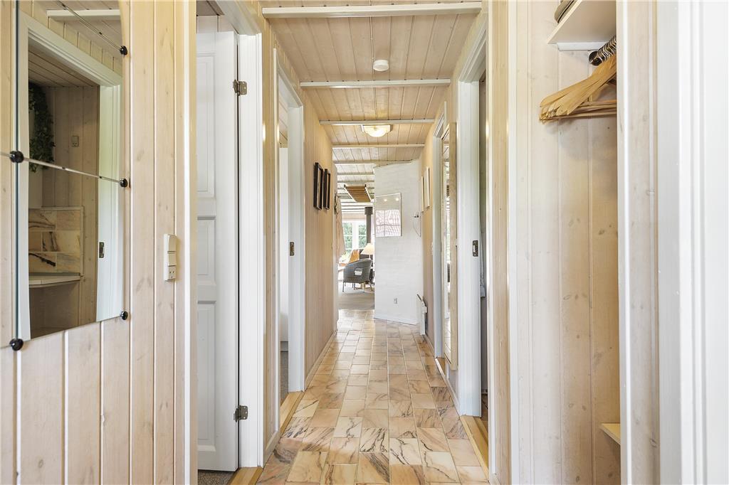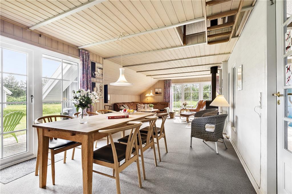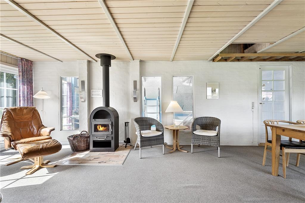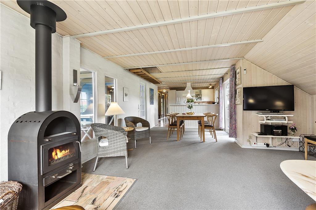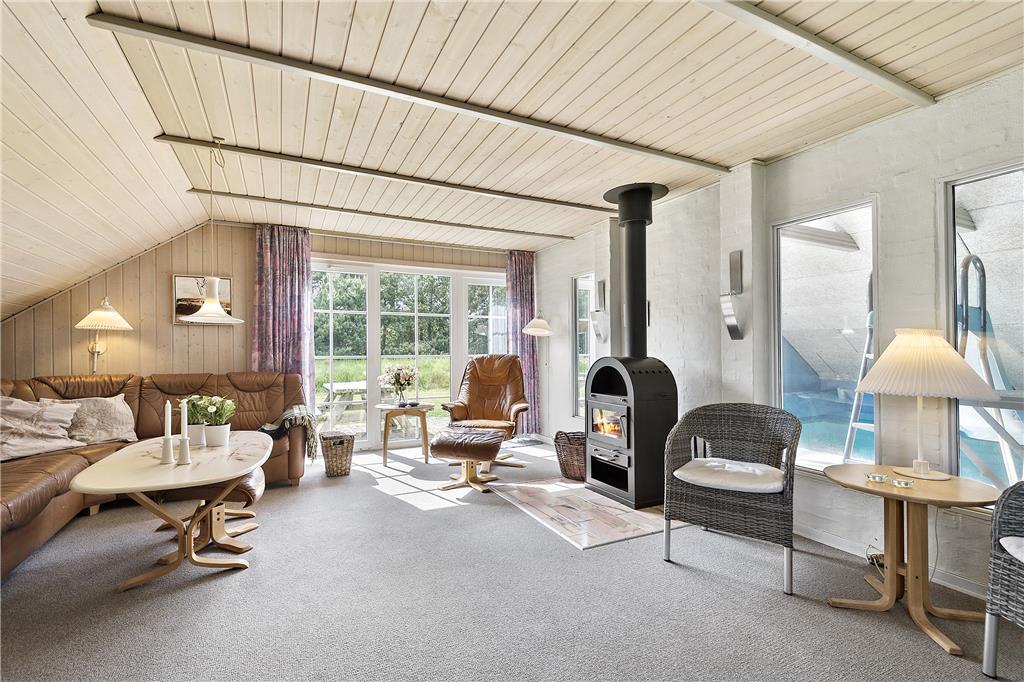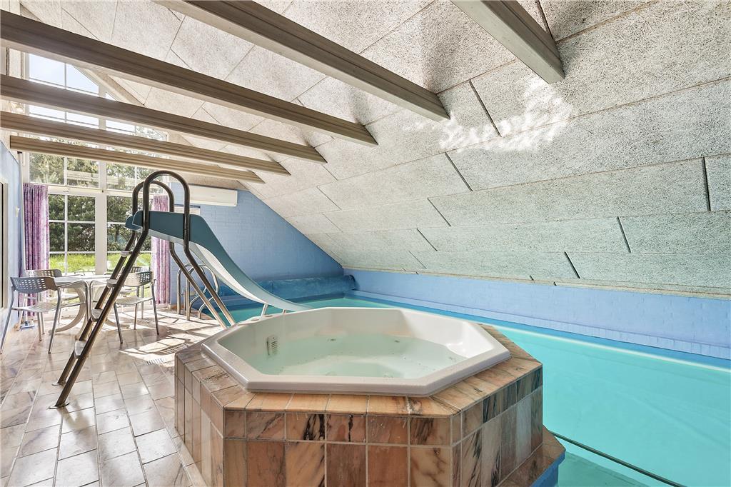 Her får I fire rigtig gode dobbeltværelser og to badeværelser, i det ene badeværelse er der vaskemaskine og tørretumbler og i det andet er der sauna. Der er et dejligt køkkenalrum med hyggelig spiseplads, køkkenet er veludstyret med microovn, varmluftsovn og opvaskemaskine. Stuen er lys og med dejlig udsigt til haven, der er brændeovn hvor I kan tænde op på de kølige aftener. I kan sagtens få tiden til at gå i den 21m2 store swimmingpool med rutsjebane og den 5 mands store standvandsspa. Skulle I mangle yderligere underholdning, er der TV og gratis trådløs internetforbindelse i sommerhuset. Huset er et lavenergi-hus og er senest moderniseret i 2007.