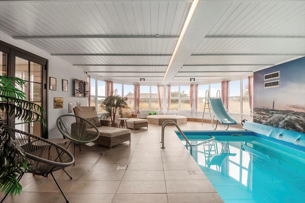 Der er virkelig lagt op til en førsteklasses livsnyderferie på Ingridsvej 12. Dette flotte sommerhus er nemlig udstyret med et stort aktivitetsrum, en lækker poolafdeling og et herligt terrassemiljø med spa og sauna, og så er der ovenikøbet blot 350 meter til Blåvands dejlige badestrand.