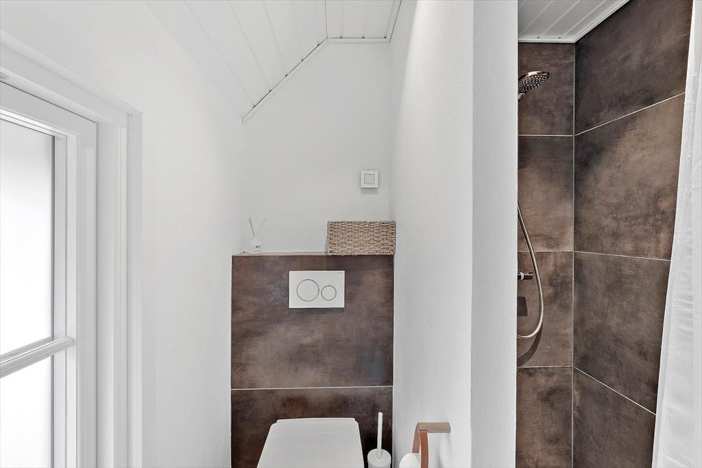 Fra poolafdelingen, opholdsrummet og to af soveværelserne har I direkte adgang til de lækre træterrasser, der ligger spredt rundt om sommerhuset. Det gør det nemt at nyde sol og sommerliv – uanset om I bare vil trække frisk luft i fem minutter eller slænge jer i havestolene i timevis. På sydsiden af huset finder I et overdækket terrasseområde med loungemøbler, og så er der for øvrigt gyngestativ og lader til elbil på den 2500 m2 store og træklædte naturgrund.