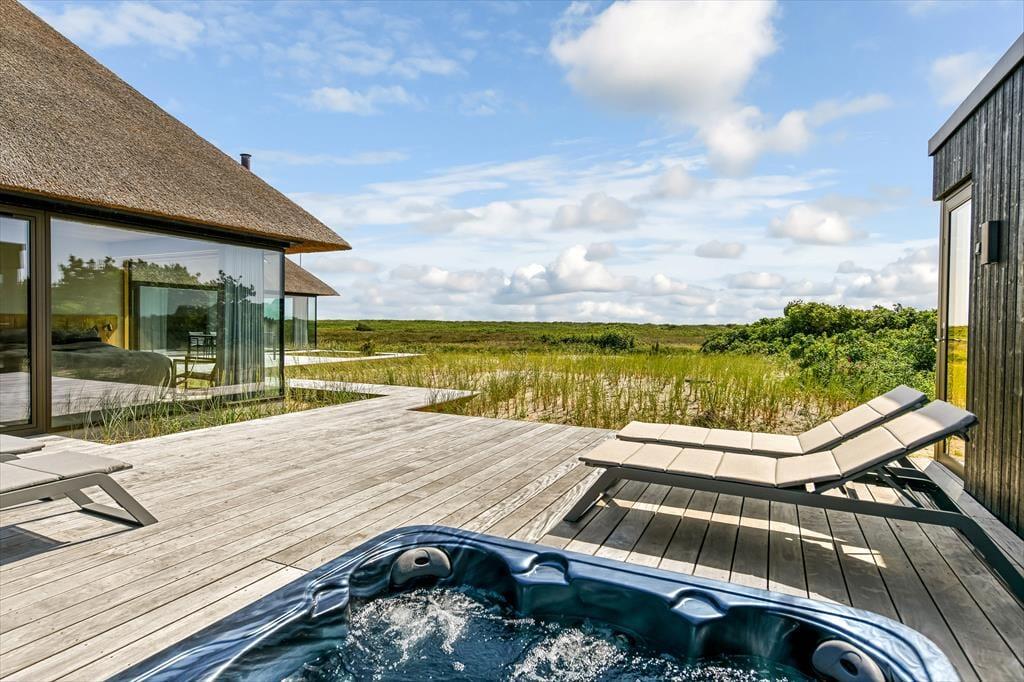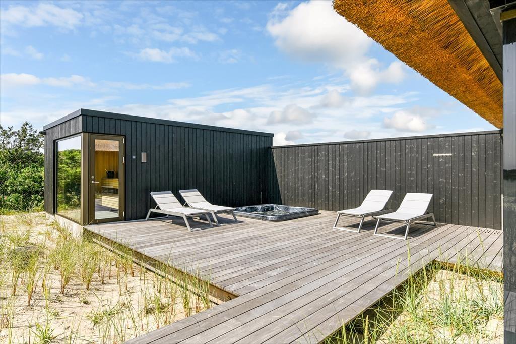 Udenfor venter et spektakulært landskab, hvor du har en direkte adgang til stranden og en udsigt, der får mundvandet til at løbe. Den store udespa giver dig mulighed for at slappe af under stjernerne, mens du ser ud over de bølgende klitter og Vesterhavet. Det er den perfekte ramme for en fredfyldt morgen eller en romantisk aften. Sommerhuset ligger tæt på de berømte "Muldyr", og den uforstyrrede beliggenhed sikrer, at du kan nyde naturen i fulde drag fra både hus, sauna og udespa. Panorama-saunaen er helt speciel, og når du sidder i saunaen, kan du nyde udsigten til klittoppen lige udenfor huset. Huset er omgivet af skønne terrasser og udstyret med høj kvalitet i loungemøbler.