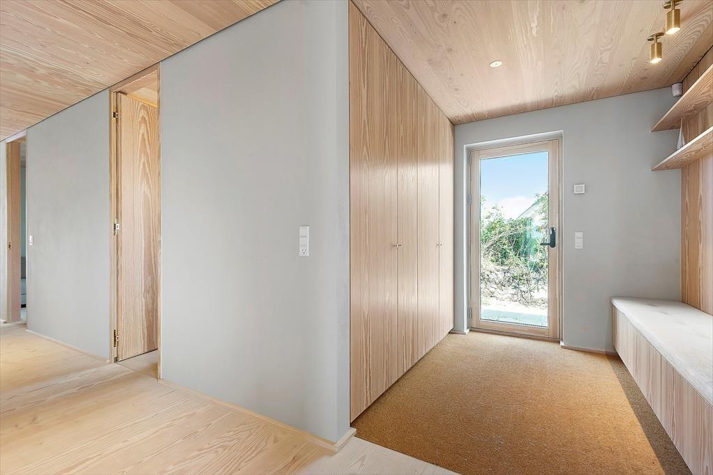 Når du træder ind i sommerhuset, vil du straks bemærke den eksklusive kvalitet, der gennemsyrer hele boligen. Huset er indrettet med specielt importeret brændeovn, der skaber en hyggelig atmosfære på de kølige aftener, mens de lyse Dinesen gulve og Douglas-træets varme udstråling giver en følelse af raffineret luksus. De smukke søulds-lofter tilføjer en ekstra dimension af elegance, og hvert rum er udsmykket med snedkerkvalitet på alt inventar.