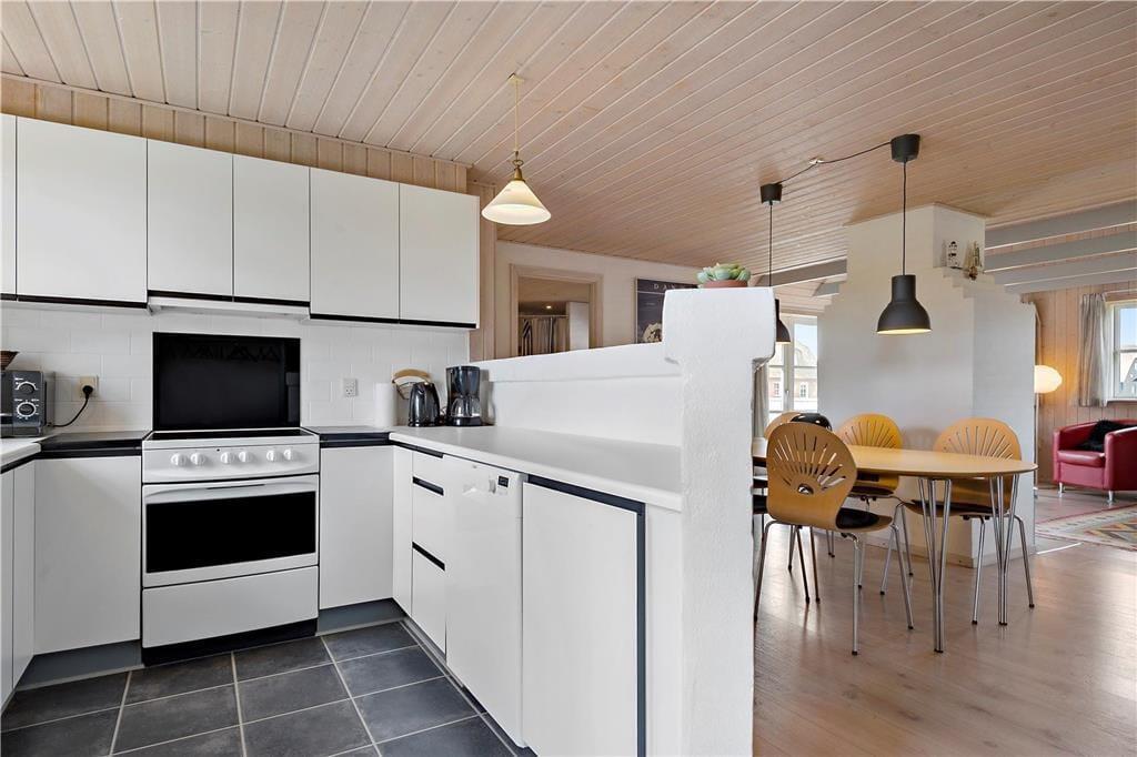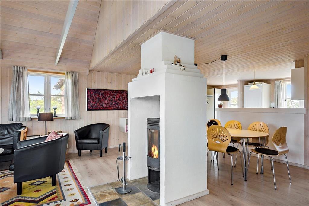 Med stråtag, hvide sprossevinduer og rødstensfacade har sommerhuset en klassisk og pæn fremtoning, der passer godt ind i det naturskønne landskab. Klassisk kan man også kalde indretningen, for der oser af vaskeægte sommerhushygge i stuen, som blandt andet prydes af lyse trævægge, loft til kip og brændeovn. Huset er senest blevet renoveret i 2018, og det kan blandt andet ses i den åbne køkkenafdeling, der giver jer en god og funktionel ramme om madlavningsstunderne. Er det ikke tid til at kokkerere, men derimod ved at være sengetid, kan I finde jer godt til rette på husets fire soveværelser, der i alt kan rumme otte personer. Og når I vågner op til endnu en feriedag, kan I blive frisket op med et brusebad på de to badeværelser – med mindre I bliver fristet til at tage den i helt roligt tempo og bruge formiddagen på at gå i sauna og slappe af i spabadet.