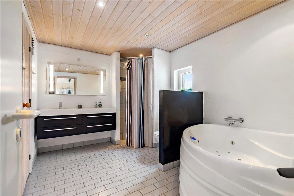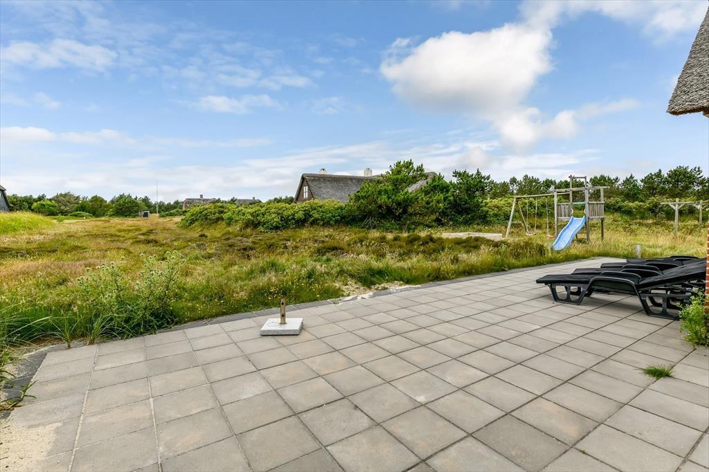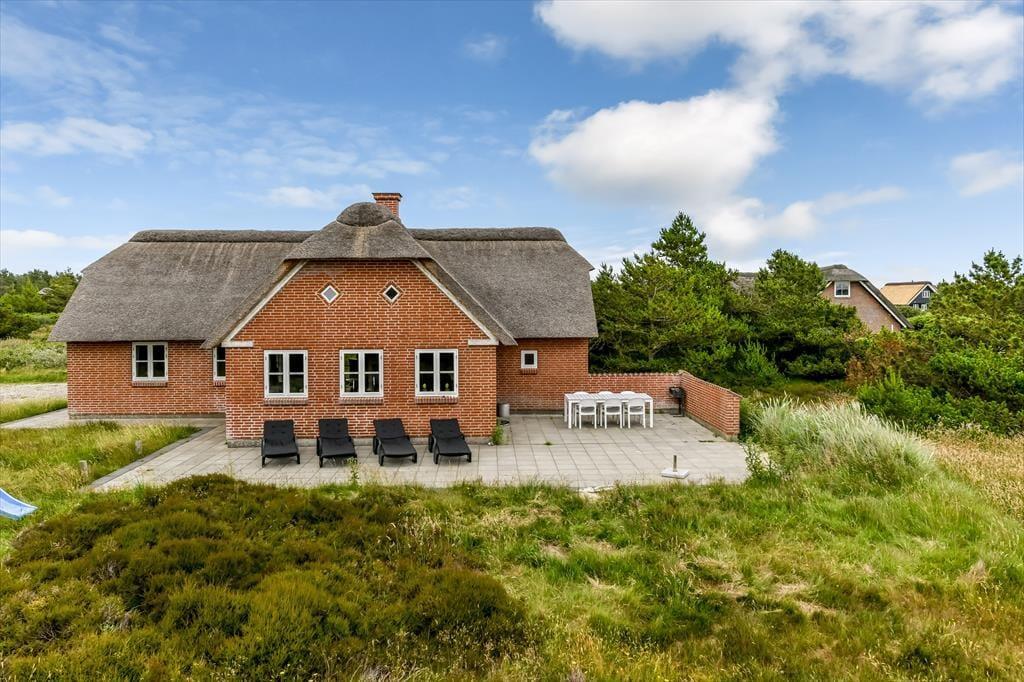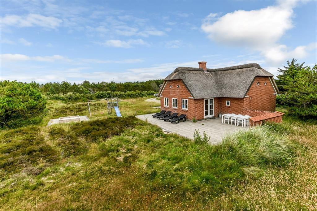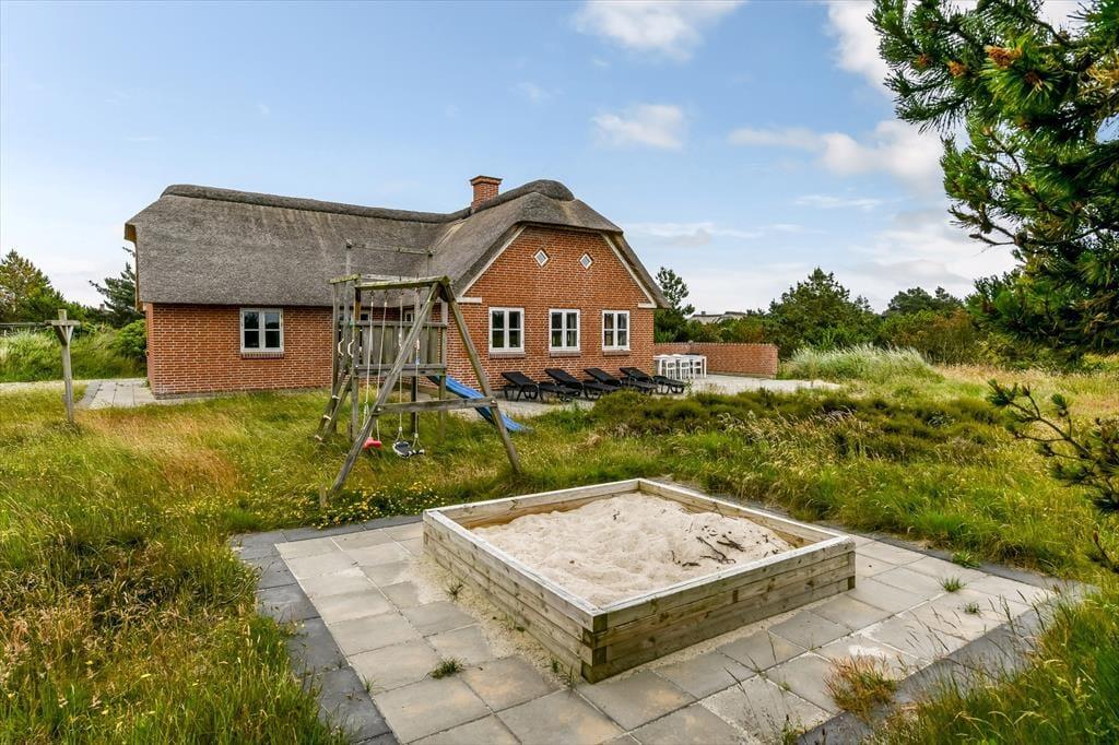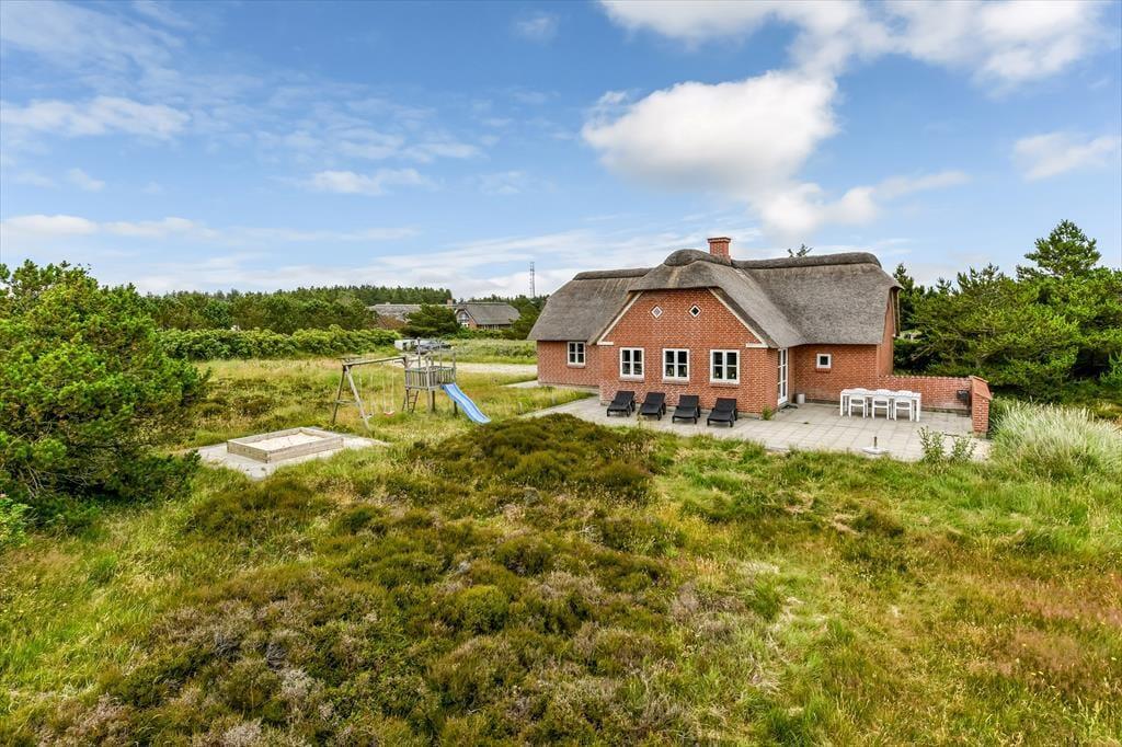 Dette store, stråtækte sommerhus har en glimrende planløsning og er fuld af skønne detaljer, inklusiv spabad og sauna på det ene badeværelse. Ude i det fri er der masser af plads til at lege og slappe af på den store naturgrund – når I altså ikke nyder livet på Blåvand Strand, der ligger få hundrede meter væk.