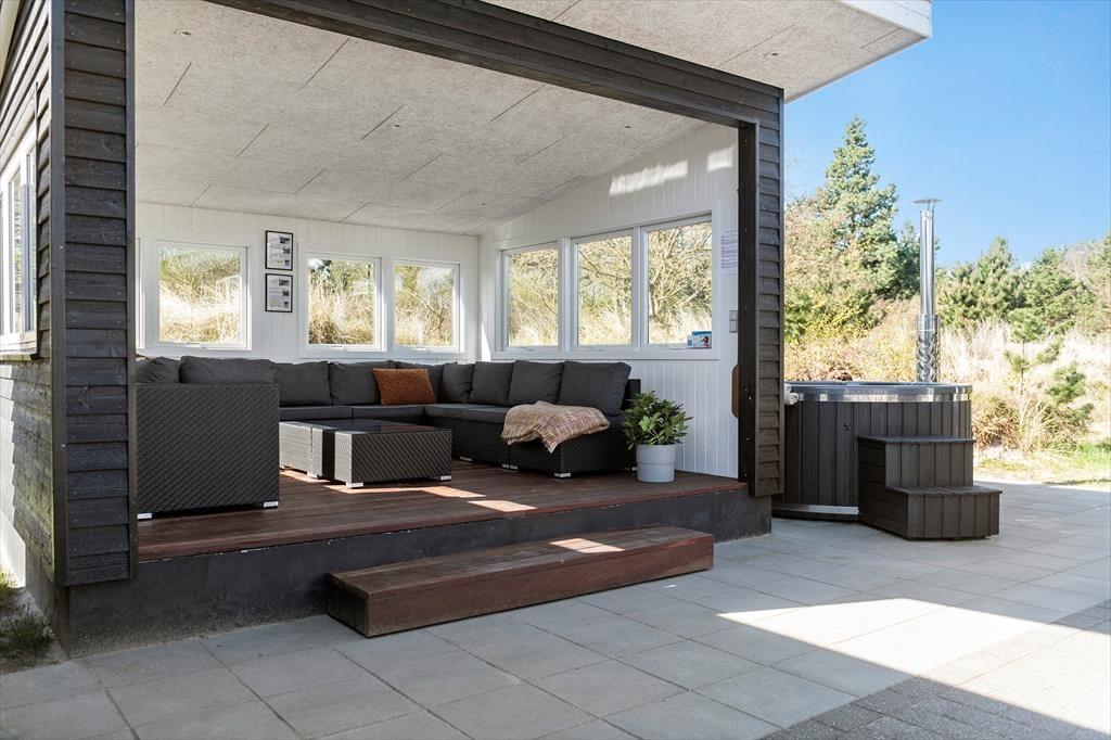 Udendørsarealerne er mindst lige så attraktive som indendørs. På den store, solrige terrasse kan du slappe af i havemøblerne eller nyde måltider under den stilfulde pergola. Pergolaen skaber en skyggefuld oase, hvor du kan nyde de varme sommerdage med en kølig drink i hånden. Efter en dag med oplevelser i området kan du forkæle dig selv med en tur i det luksuriøse vildmarksbad. Her kan du lade tankerne flyve og musklerne slappe af, mens du nyder udsigten til den smukke have. Haven er ideel til leg og aktiviteter med børnene eller en fredelig stund med fuglesang og duften af frisk skov.