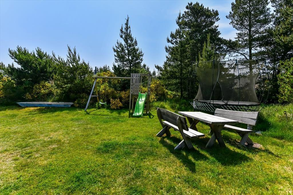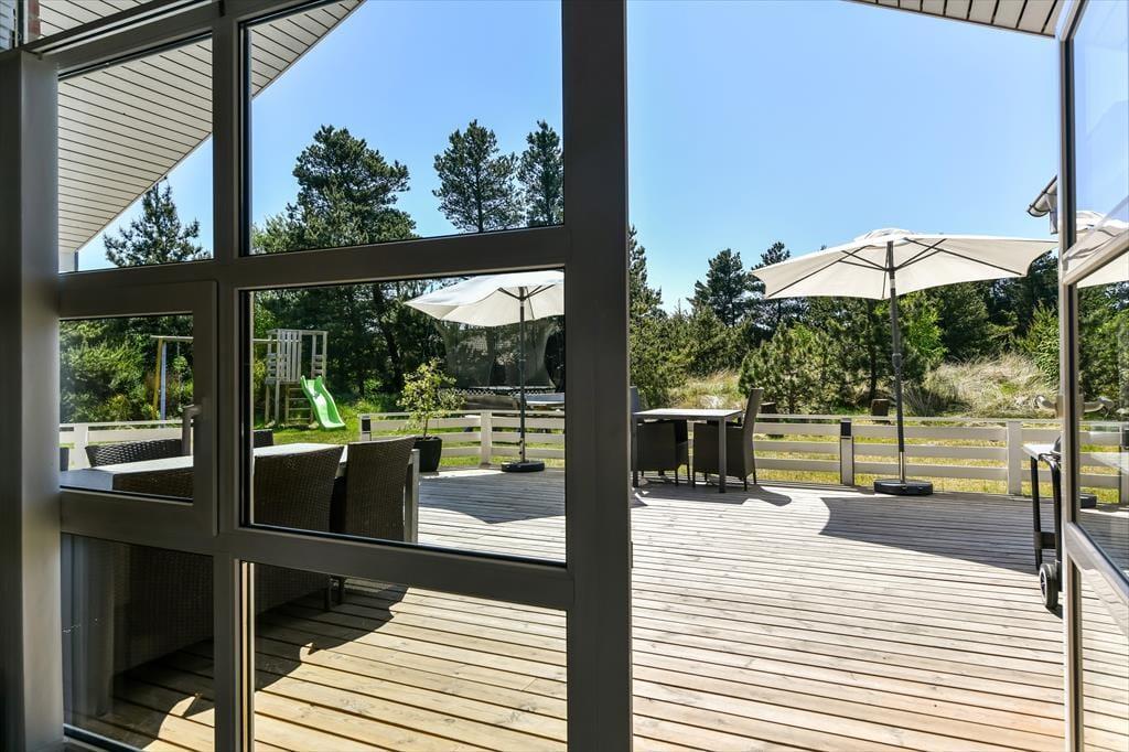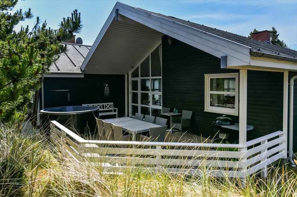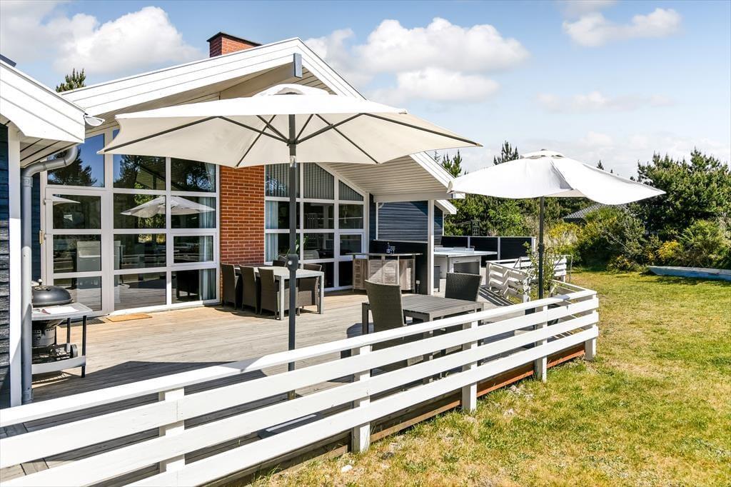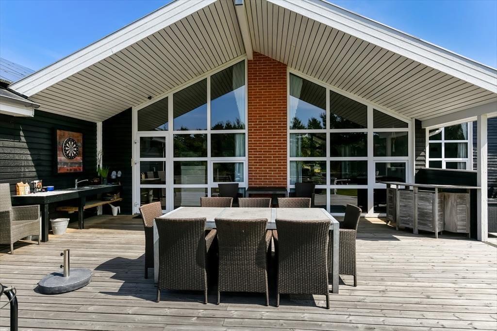 Den indendørs wellnessafdeling er fantastisk, men det er nu også fremragende at have et vildmarksbad ude på terrassen. Er det ikke tid til et bad under stjernehimlen, men derimod sjov og ballade, er der et bordtennisbord og fodboldmål i det fri – og derudover gynge, sandkasse og trampolin til de yngste feriegæster. Det sydvendte terrassemiljø skal nok blive et hit, når solen skinner, og takket være udekøkkenet bliver grillaftenerne endnu bedre. Huset er forsynet med solceller, der indgår i driften af huset, og dermed minimerer udgiften til el-forbrug.