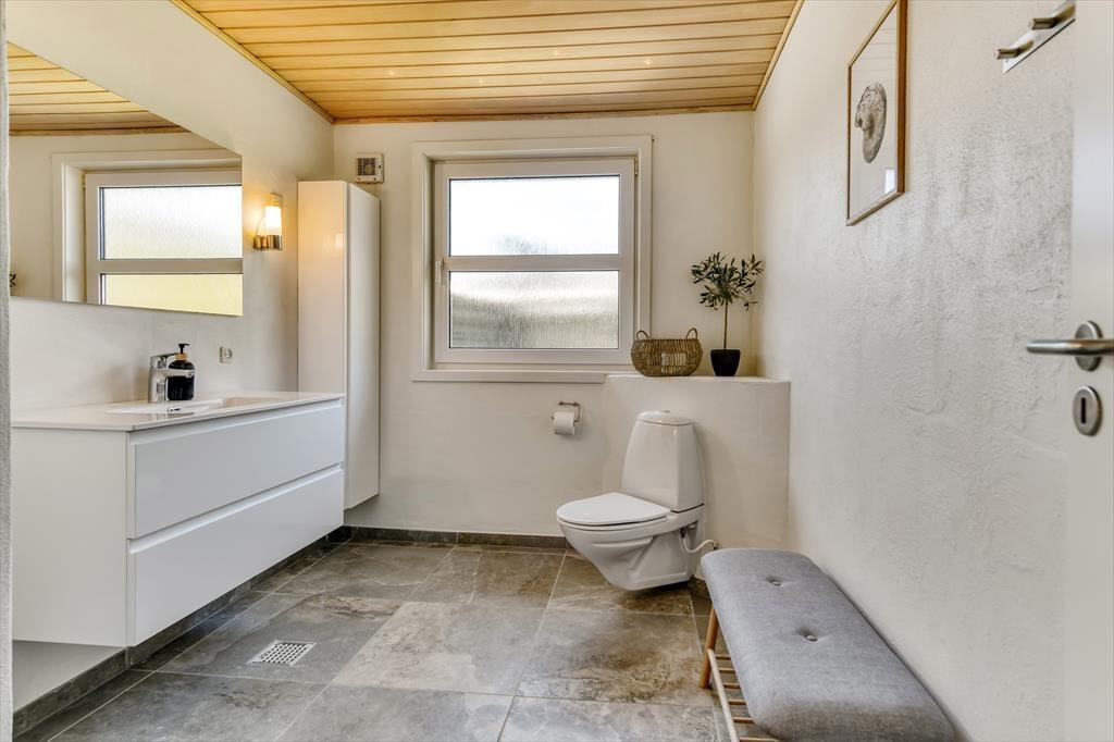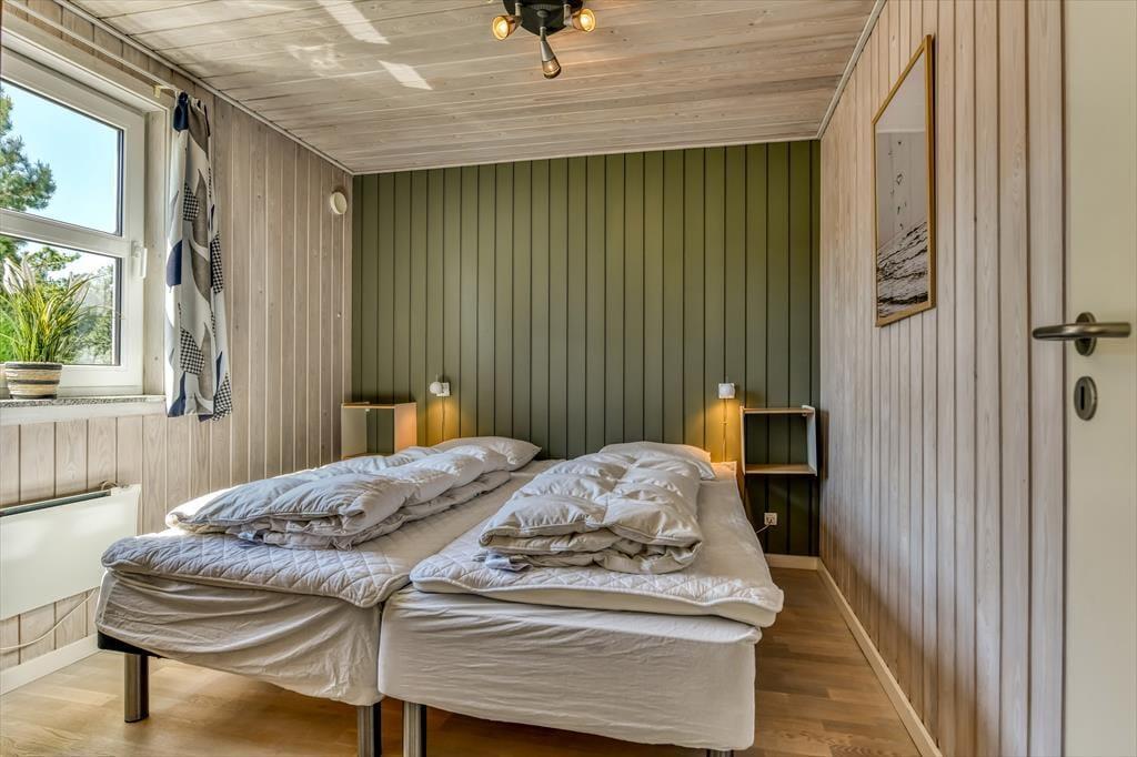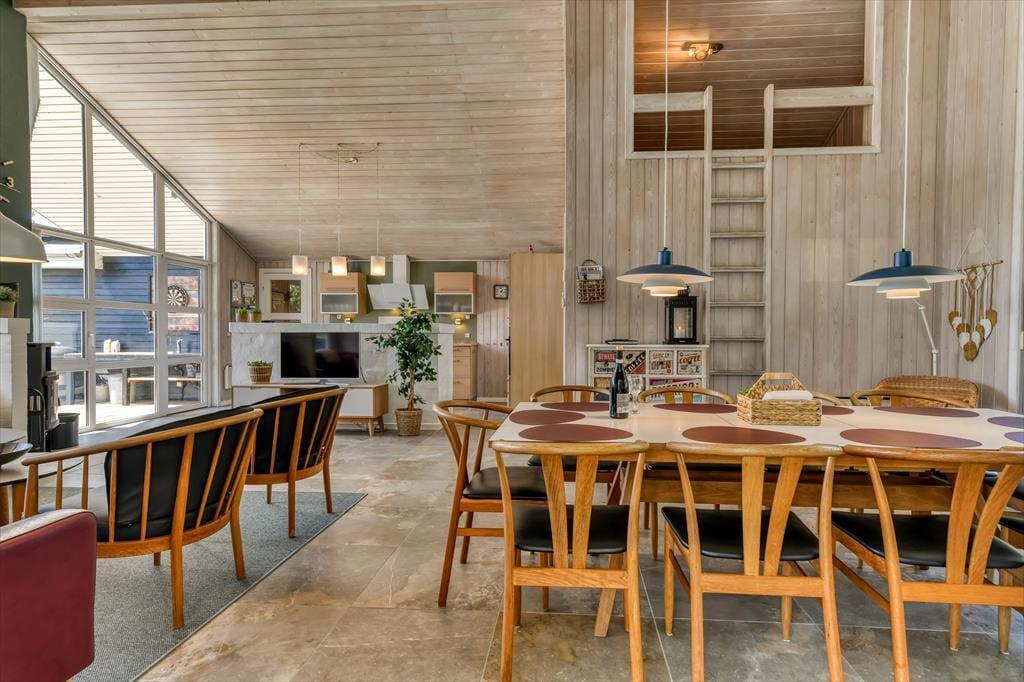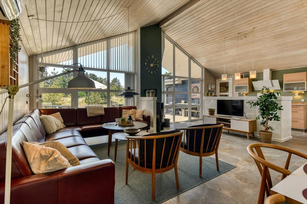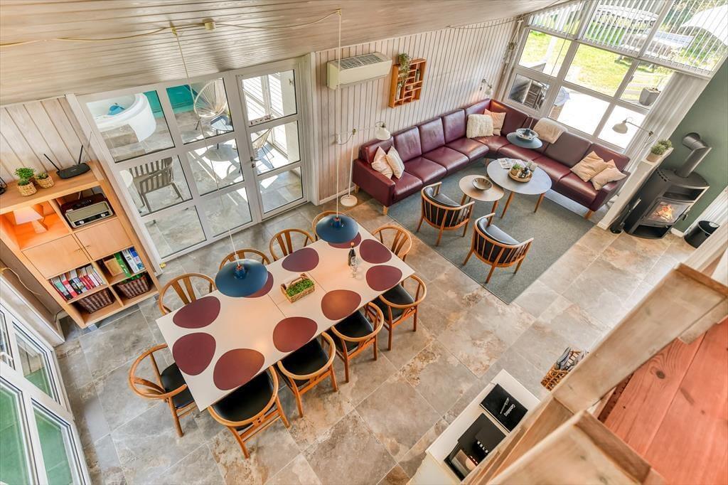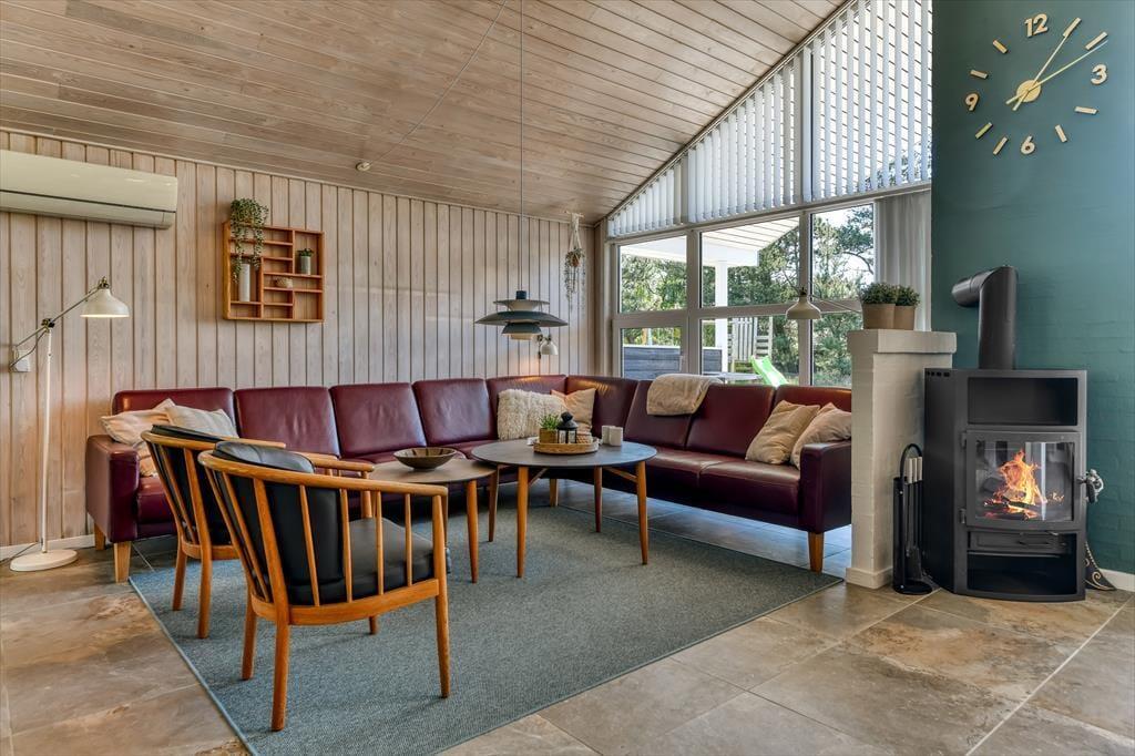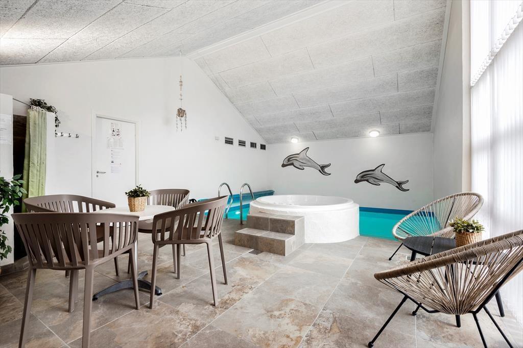 Sommerhuset måler hele 209 m2, så selv når huset er fuldt, har I masser af plads til sociale stunder og total afslapning. Om natten kan I fordele jer på de fem soveværelser, og om morgenen behøver I ikke at stå i kø særlig længe for at få et brusebad, når der er to badeværelser i huset. Det ene ligger i poolafdelingen, der foruden selve swimmingpoolen rummer et lækkert sekspersoner spabad og en dejlig sauna. Opholdsrummet, hvor køkken og stue ligger forenet, er et skønt sted at samles, når I ikke vil svømme, men hellere bruge tiden på brætspil, filmaftener og lækre måltider. Brændeovnen og de komfortable møbler lægger op til et særdeles behageligt ferieliv, og hvis børnene vil have deres helt egen hule, kan de kravle op på hemsen for at lege.