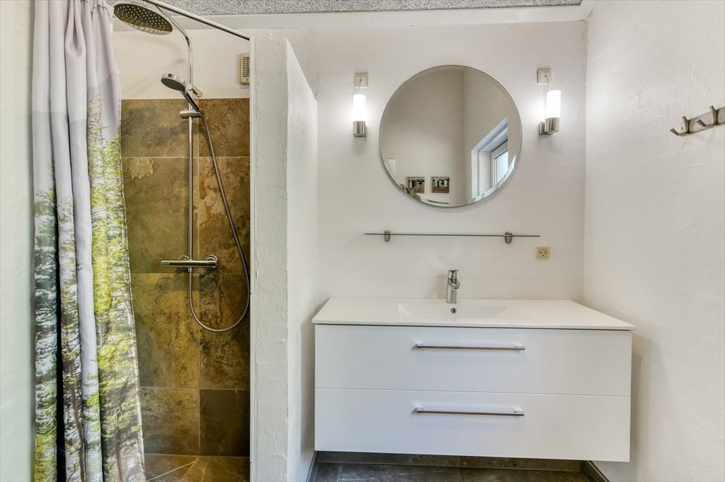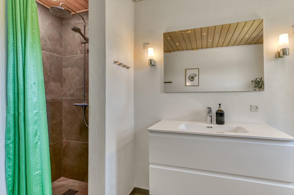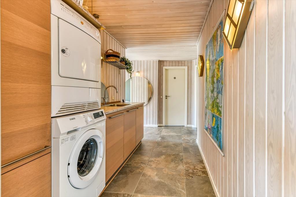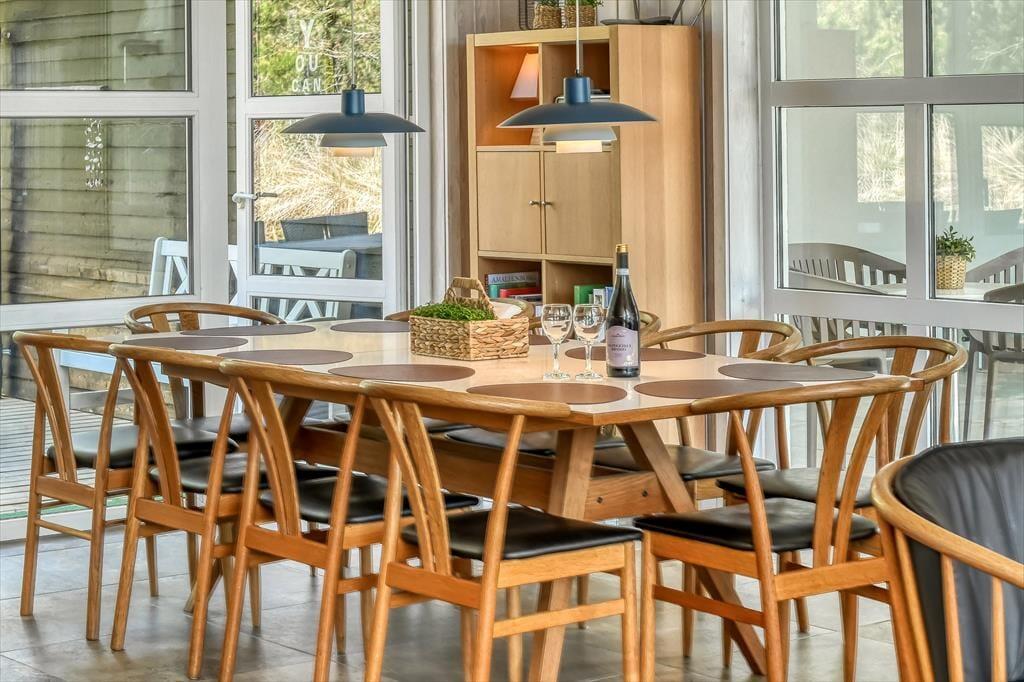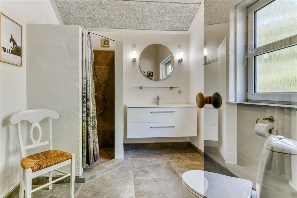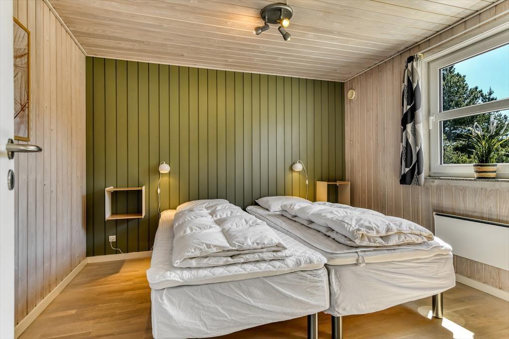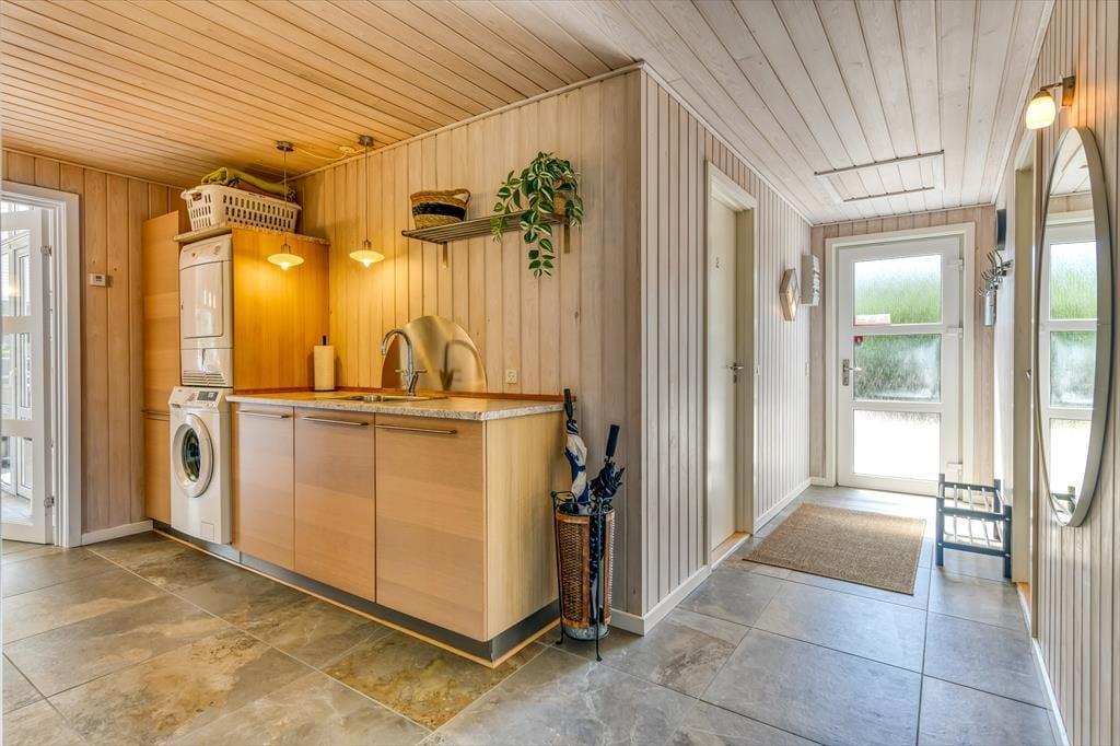 Sommerhuset måler hele 209 m2, så selv når huset er fuldt, har I masser af plads til sociale stunder og total afslapning. Om natten kan I fordele jer på de fem soveværelser, og om morgenen behøver I ikke at stå i kø særlig længe for at få et brusebad, når der er to badeværelser i huset. Det ene ligger i poolafdelingen, der foruden selve swimmingpoolen rummer et lækkert sekspersoner spabad og en dejlig sauna. Opholdsrummet, hvor køkken og stue ligger forenet, er et skønt sted at samles, når I ikke vil svømme, men hellere bruge tiden på brætspil, filmaftener og lækre måltider. Brændeovnen og de komfortable møbler lægger op til et særdeles behageligt ferieliv, og hvis børnene vil have deres helt egen hule, kan de kravle op på hemsen for at lege.