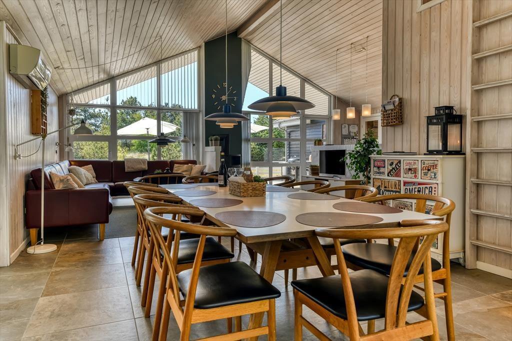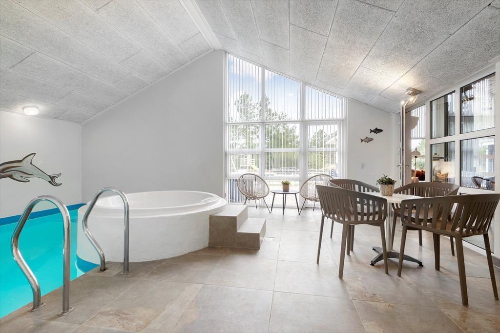 Drømmer I om at bo i et feriehus med indendørs swimmingpool, udendørs vildmarksbad, brændeovn i stuen eller bordtennisbord på terrassen? På Karl Postsvej 5 i Blåvand behøver I slet ikke at vælge, for dette store og særdeles velindrettede sommerhus byder på alle førnævnte herligheder – og så er det endda udstyret med komfortable sovepladser til ti personer.