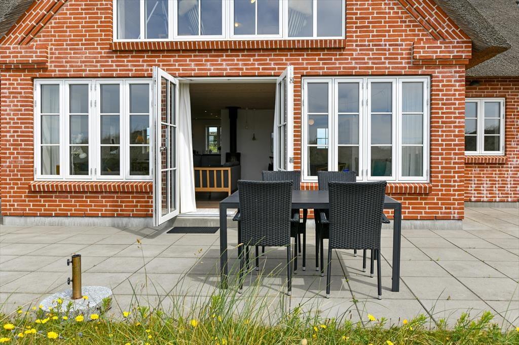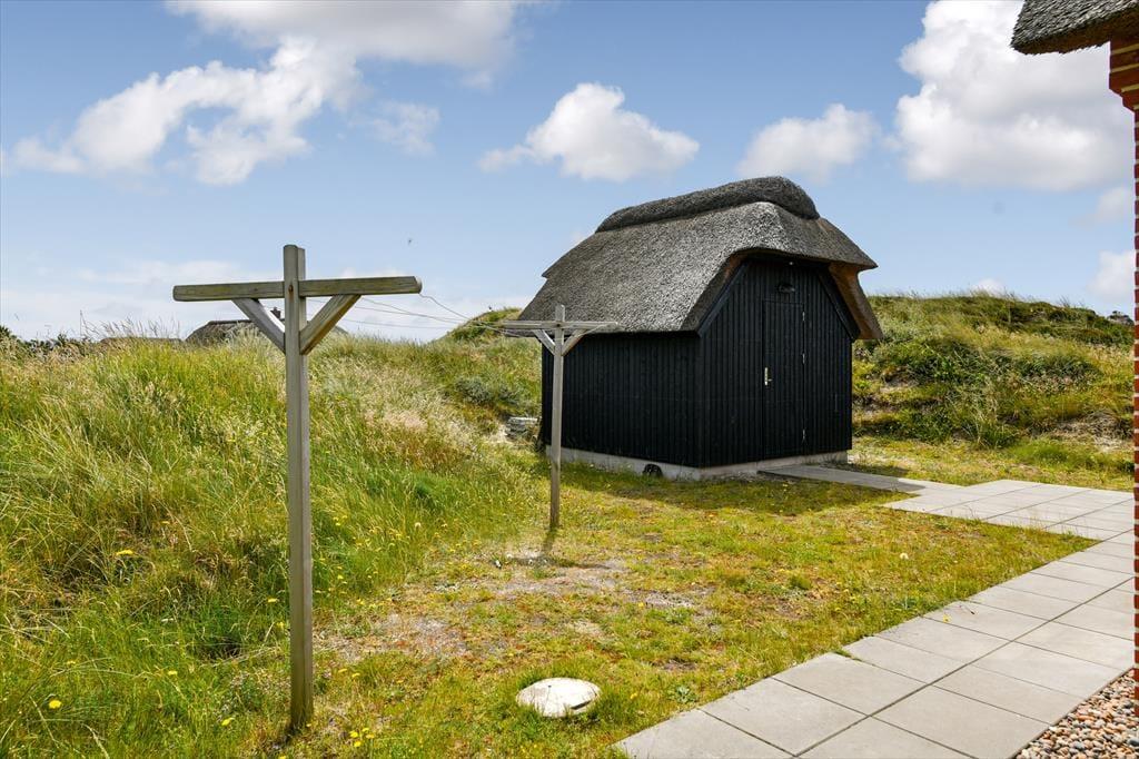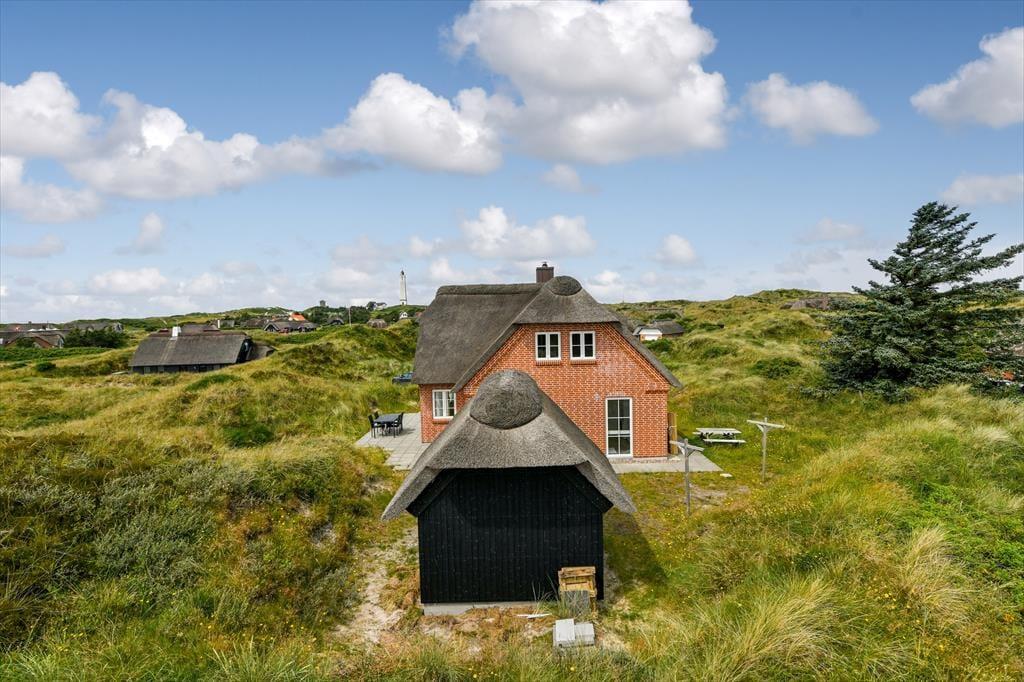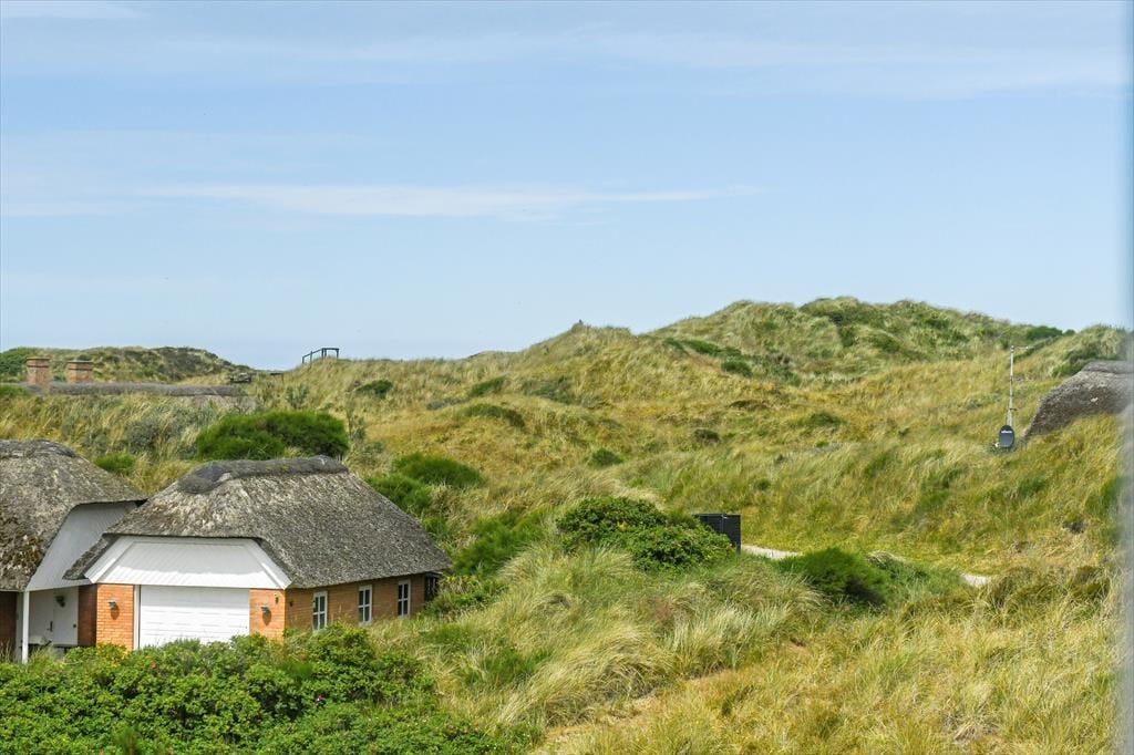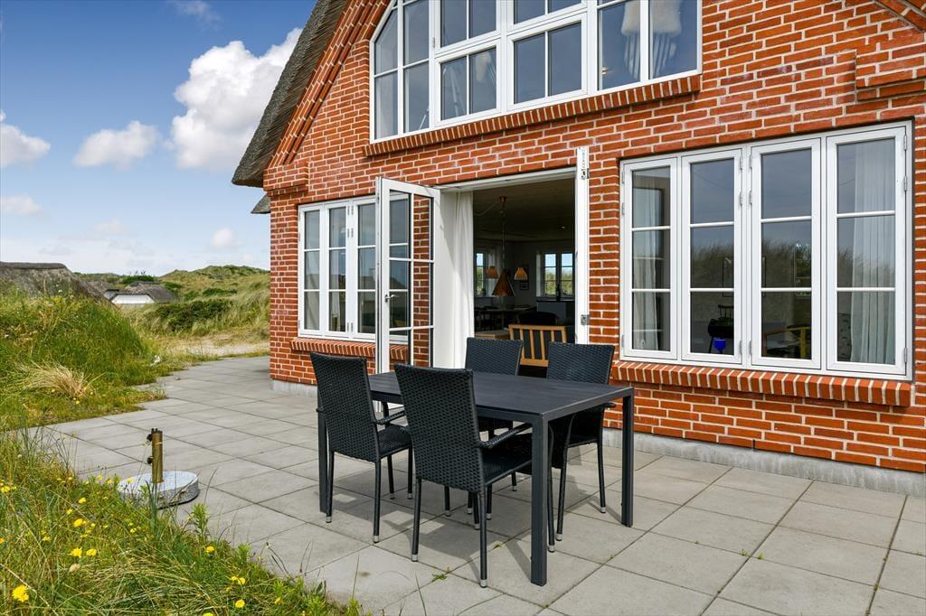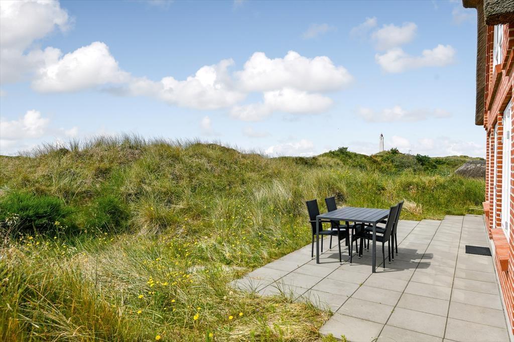 Fra sommerhuset fører en stor terrasse dig ud i det fri, hvor du kan indånde havluften og lade blikket glide ud over det bølgende landskab. Her er rig mulighed for at nyde solen dagen lang, spise udendørs måltider eller bare slappe af i de komfortable havemøbler. Klitlandskabet omkring huset indbyder til gåture, løbeture eller bare til at sidde stille og lade tankerne vandre.