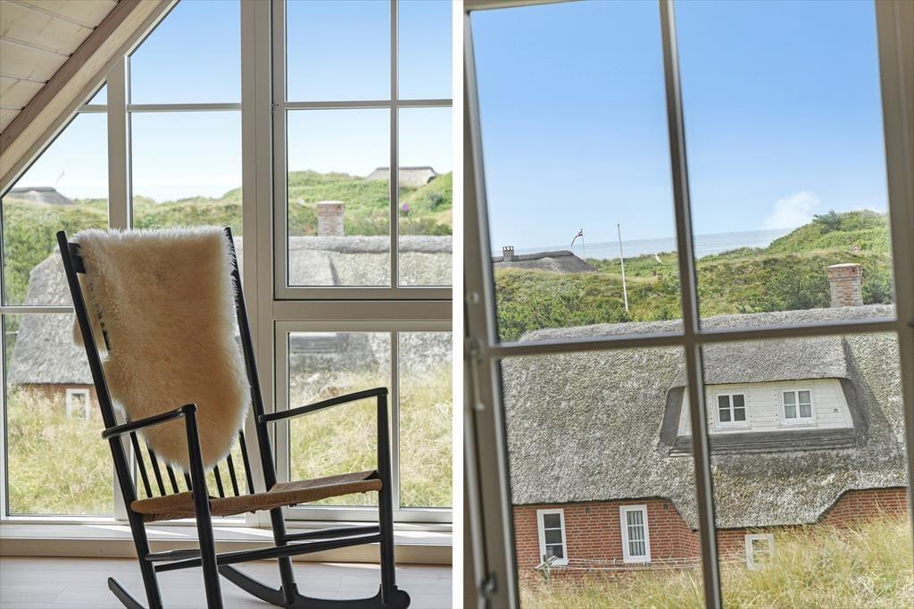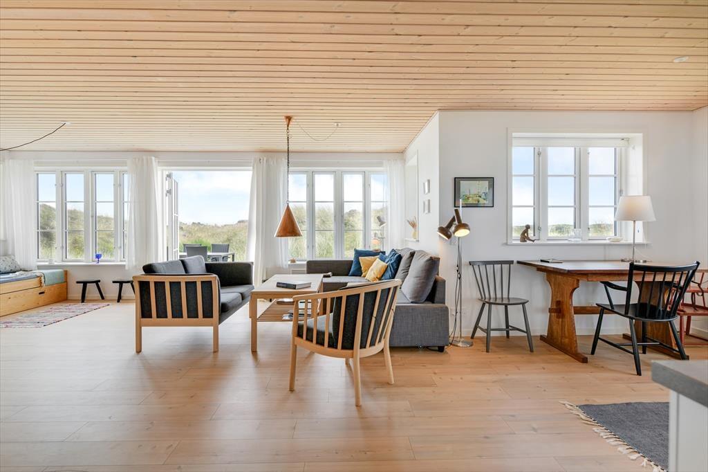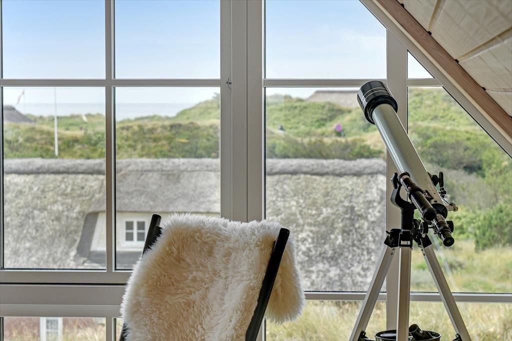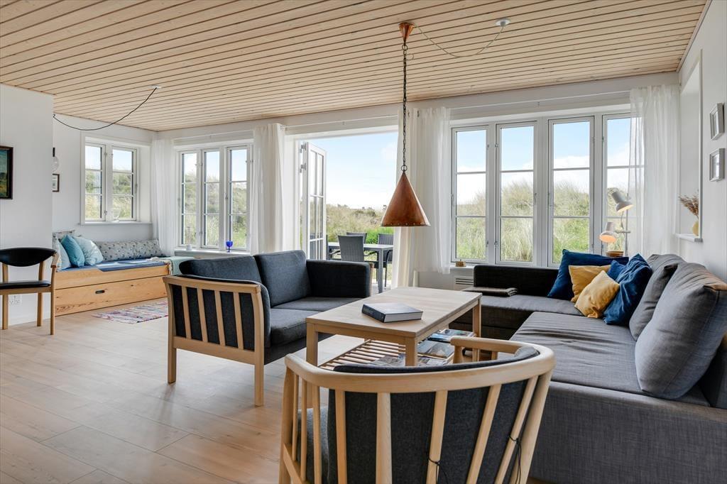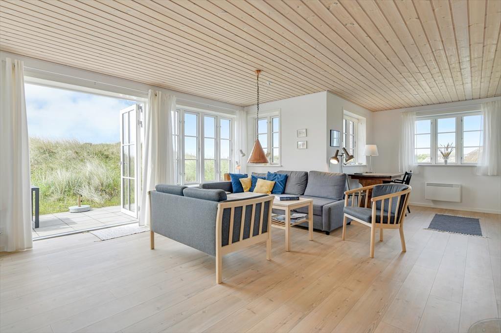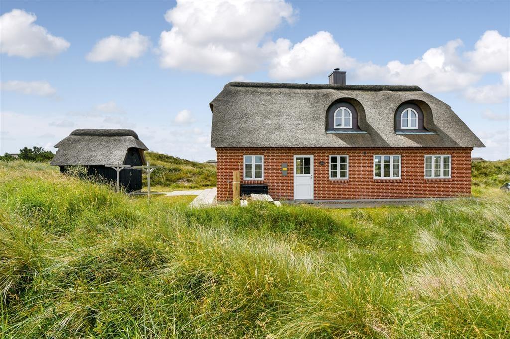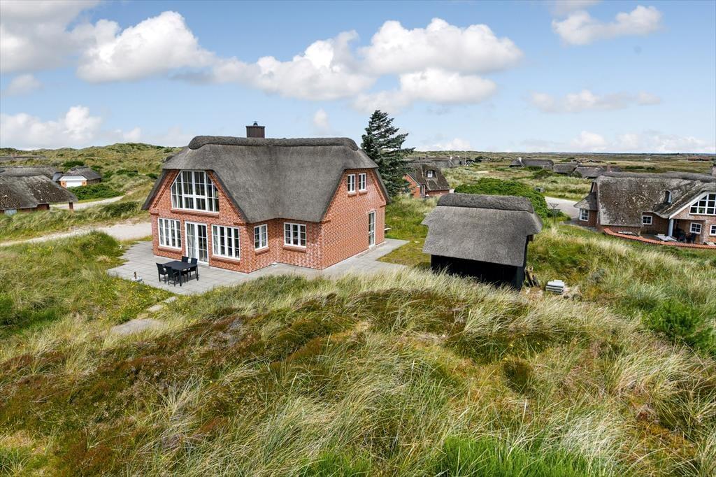 Fra sommerhuset fører en stor terrasse dig ud i det fri, hvor du kan indånde havluften og lade blikket glide ud over det bølgende landskab. Her er rig mulighed for at nyde solen dagen lang, spise udendørs måltider eller bare slappe af i de komfortable havemøbler. Klitlandskabet omkring huset indbyder til gåture, løbeture eller bare til at sidde stille og lade tankerne vandre.