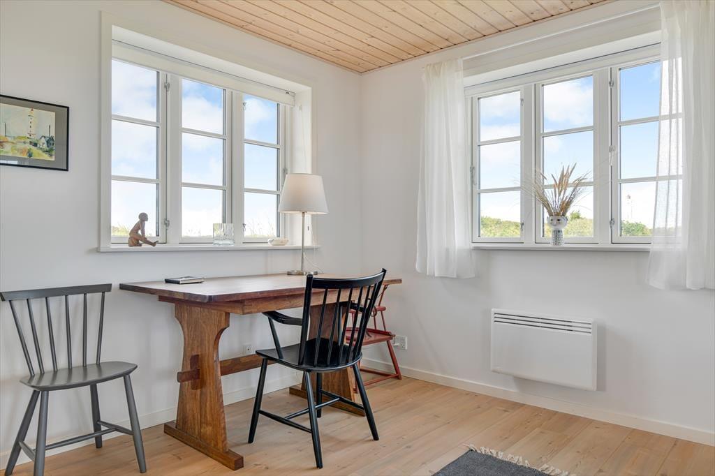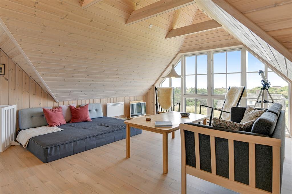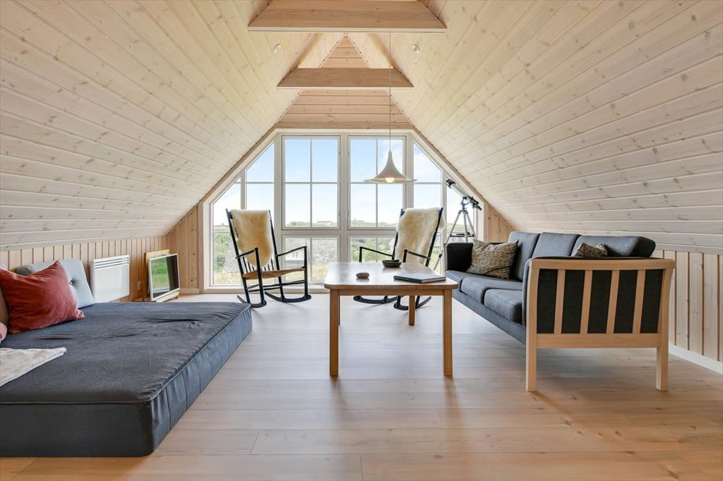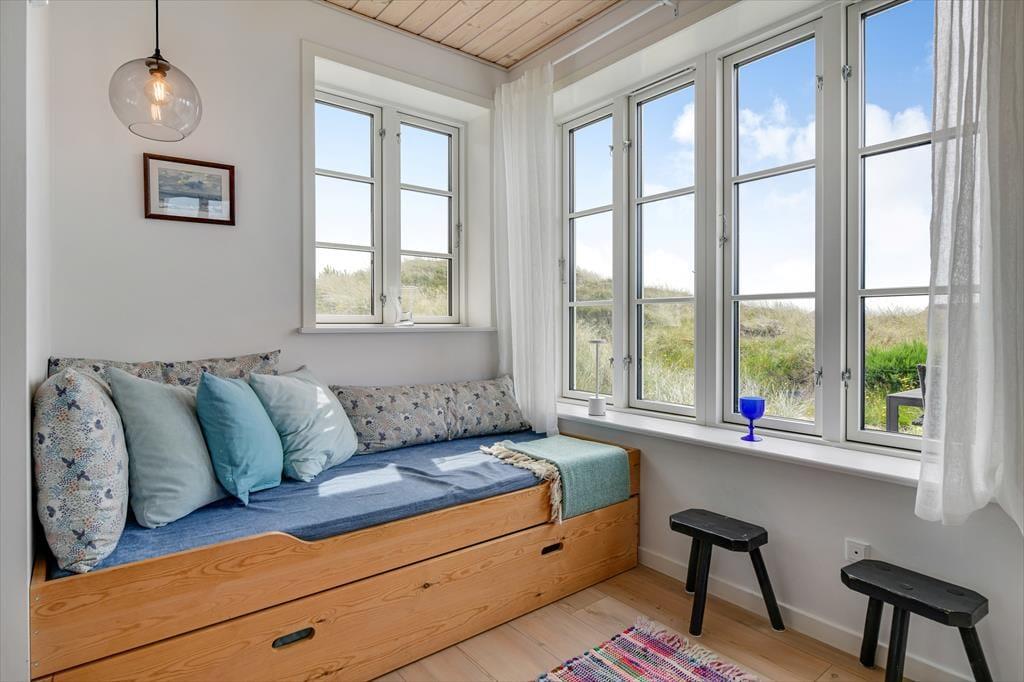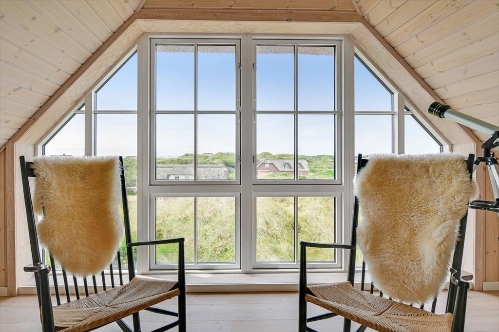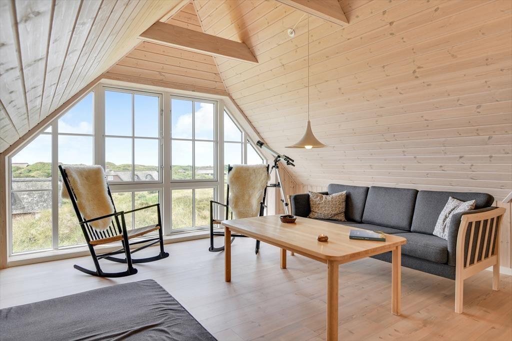 Fra sommerhuset fører en stor terrasse dig ud i det fri, hvor du kan indånde havluften og lade blikket glide ud over det bølgende landskab. Her er rig mulighed for at nyde solen dagen lang, spise udendørs måltider eller bare slappe af i de komfortable havemøbler. Klitlandskabet omkring huset indbyder til gåture, løbeture eller bare til at sidde stille og lade tankerne vandre.