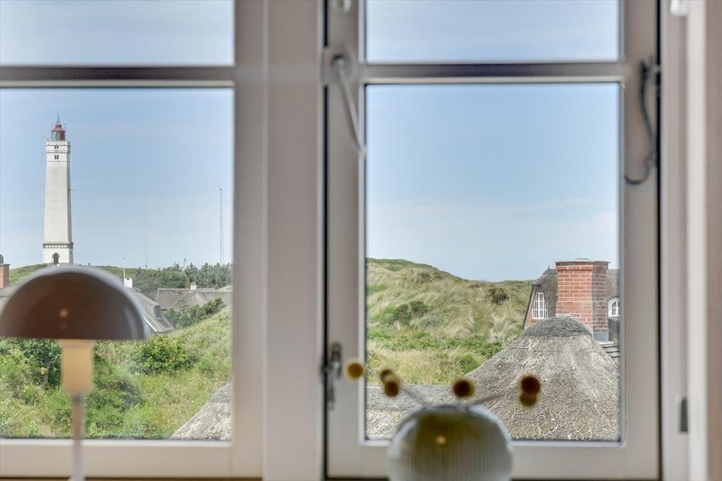 Du er kun et stenkast fra Vesterhavet, når du bor i dette skønne sommerhus på Fyrvej 84 A i Blåvand. Huset ligger højt på en klit, omgivet af den storslåede natur og med en enestående udsigt over Blåvandshuk Fyr, der strækker sig ud mod det brusende hav.