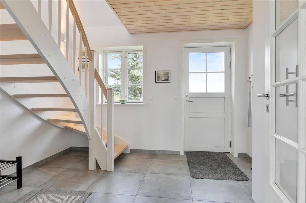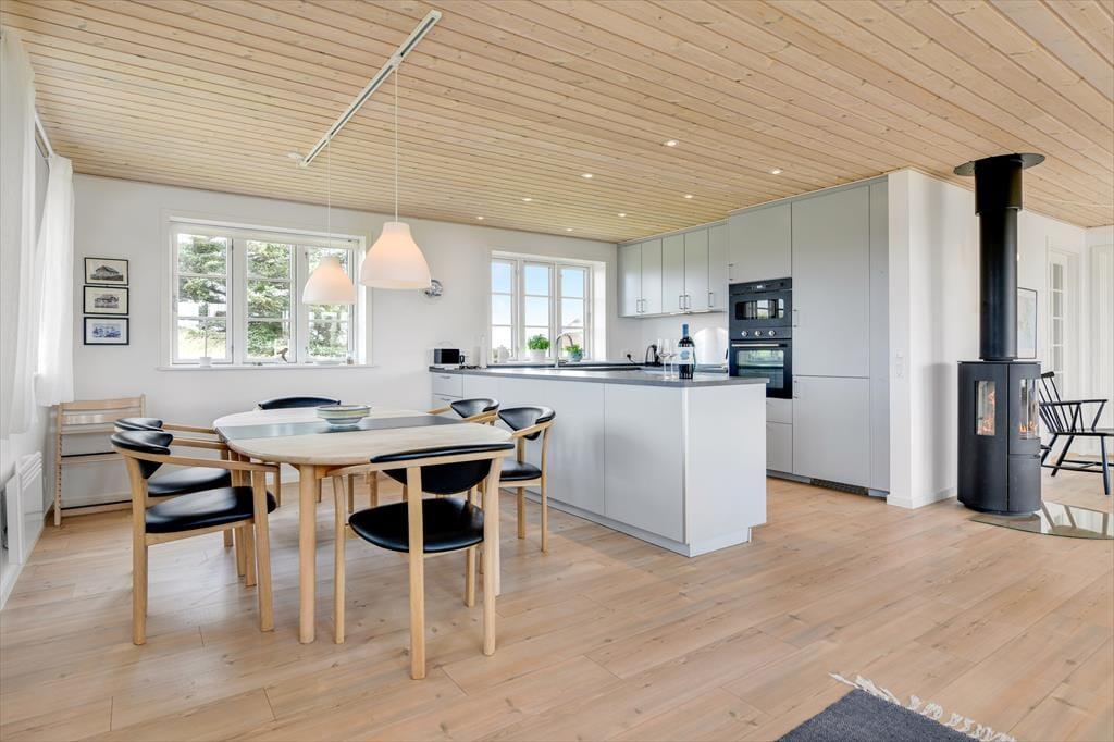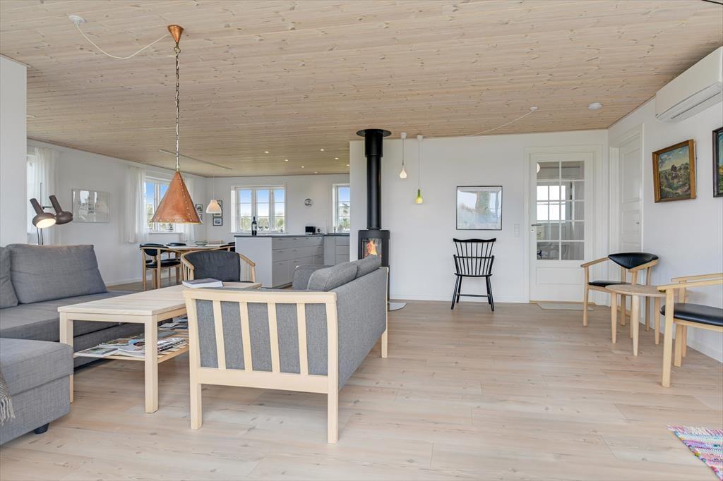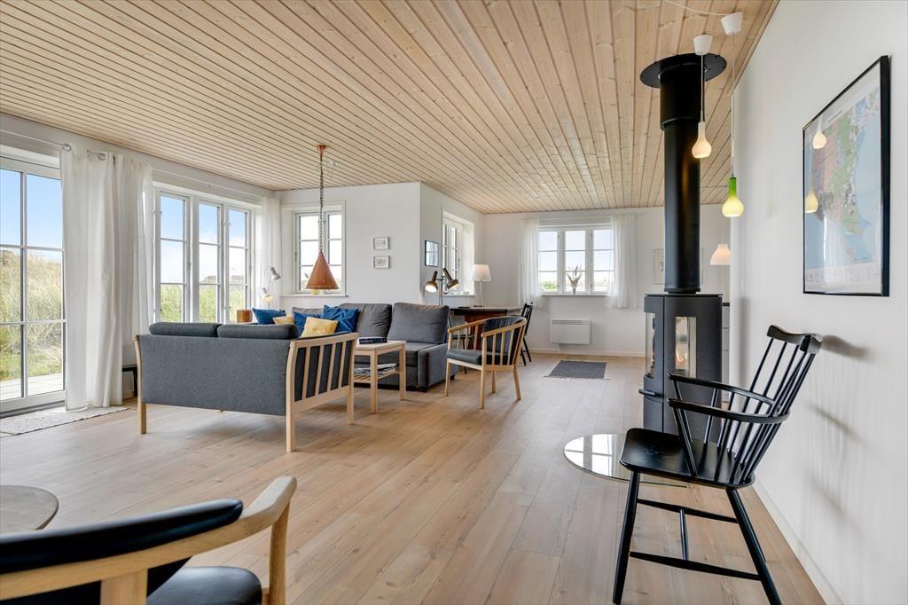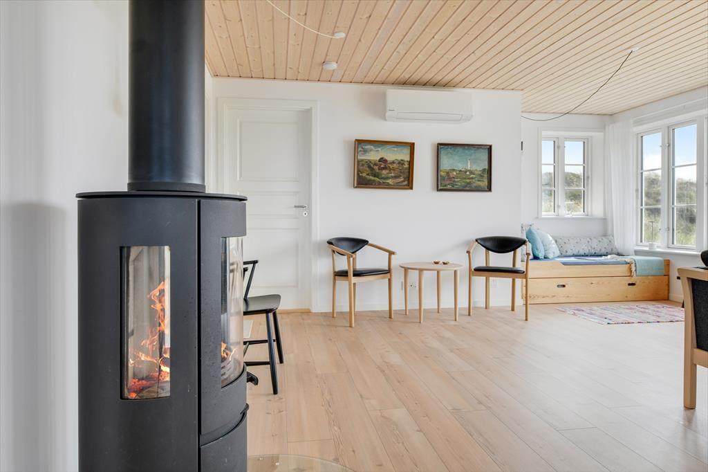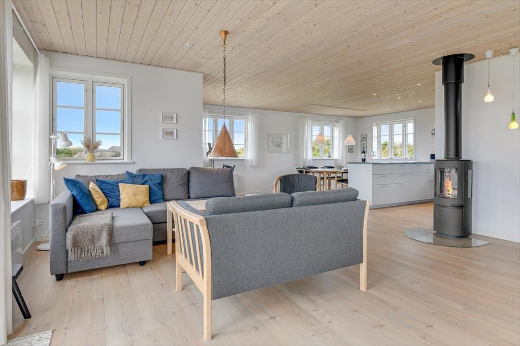 Træd ind i dette moderne sommerhus, hvor komfort og æstetik går op i en højere enhed. De lyse og rummelige opholdsarealer inviterer til afslapning og hygge. Den stilfulde indretning understreges af det åbne køkken og den behagelige stue, hvor der er installeret en TV-skærm med Chromecast, perfekt til aftenens streaming af dine yndlingsprogrammer eller gode film. Efter en dag med strandliv og naturoplevelser kan du nyde roen foran brændeovnen, der spreder varme og hygge i de sene aftentimer.