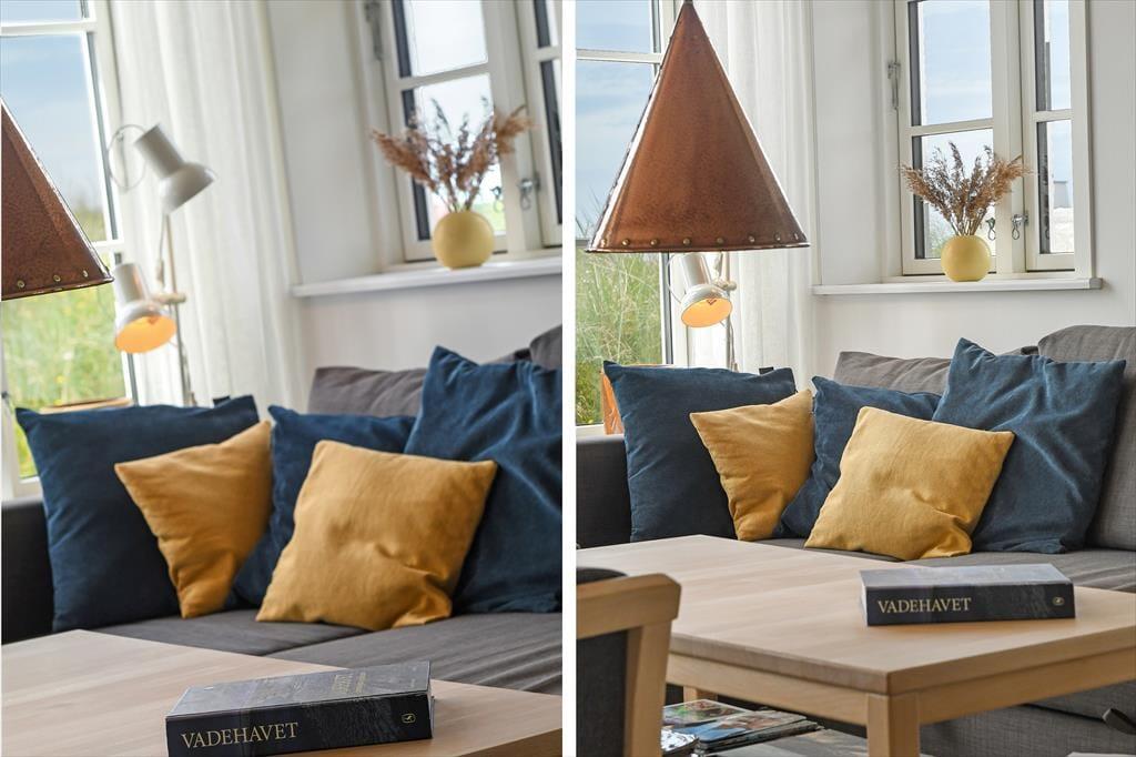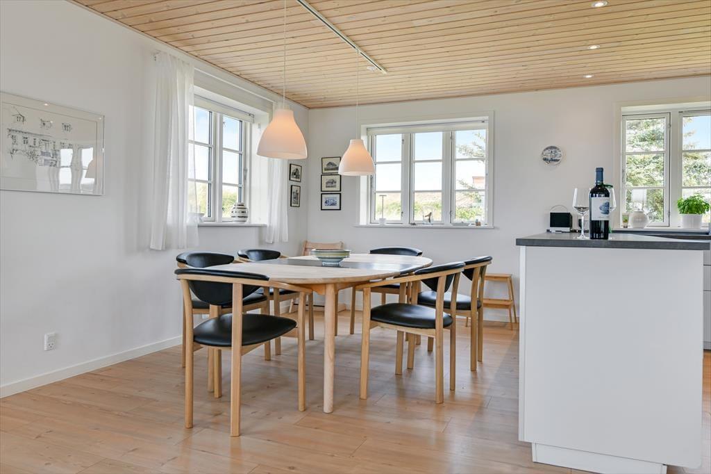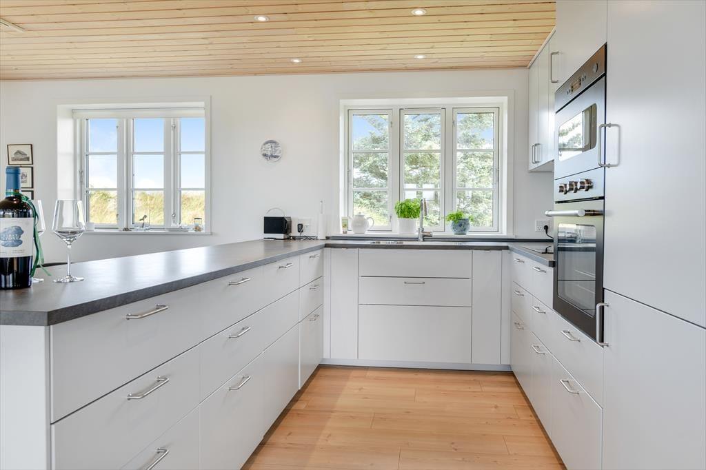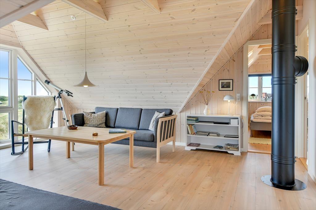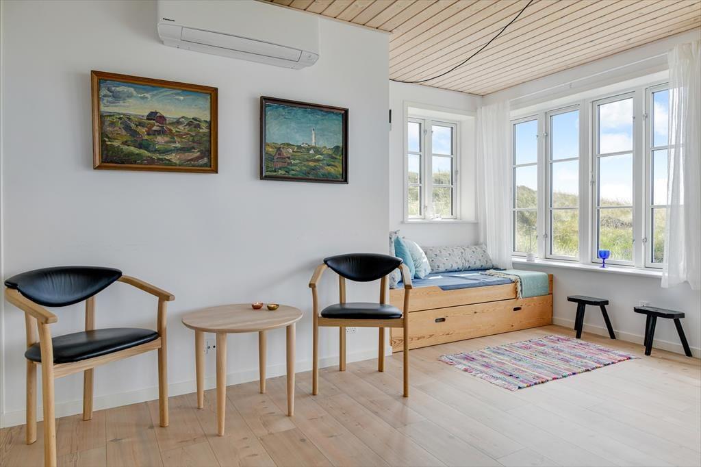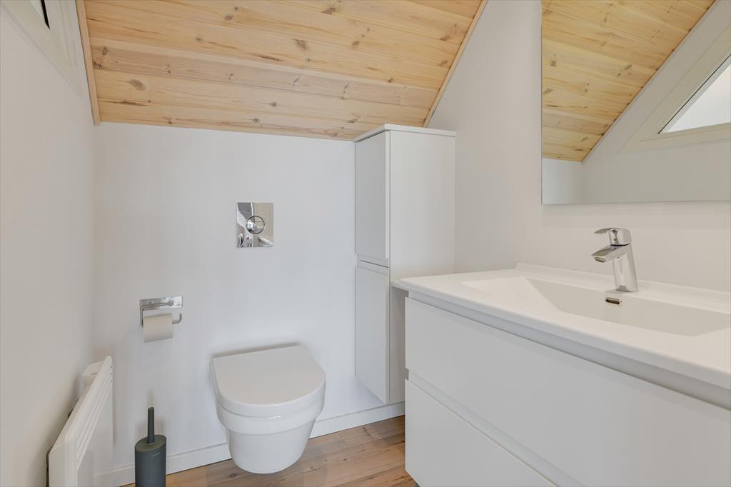 Træd ind i dette moderne sommerhus, hvor komfort og æstetik går op i en højere enhed. De lyse og rummelige opholdsarealer inviterer til afslapning og hygge. Den stilfulde indretning understreges af det åbne køkken og den behagelige stue, hvor der er installeret en TV-skærm med Chromecast, perfekt til aftenens streaming af dine yndlingsprogrammer eller gode film. Efter en dag med strandliv og naturoplevelser kan du nyde roen foran brændeovnen, der spreder varme og hygge i de sene aftentimer.