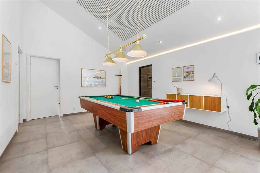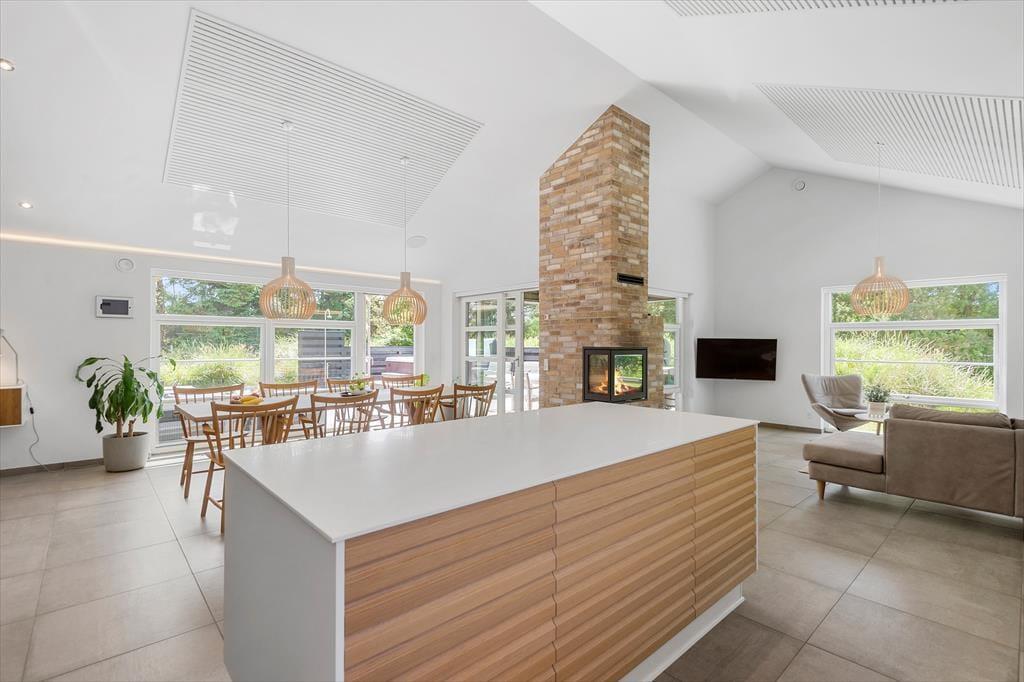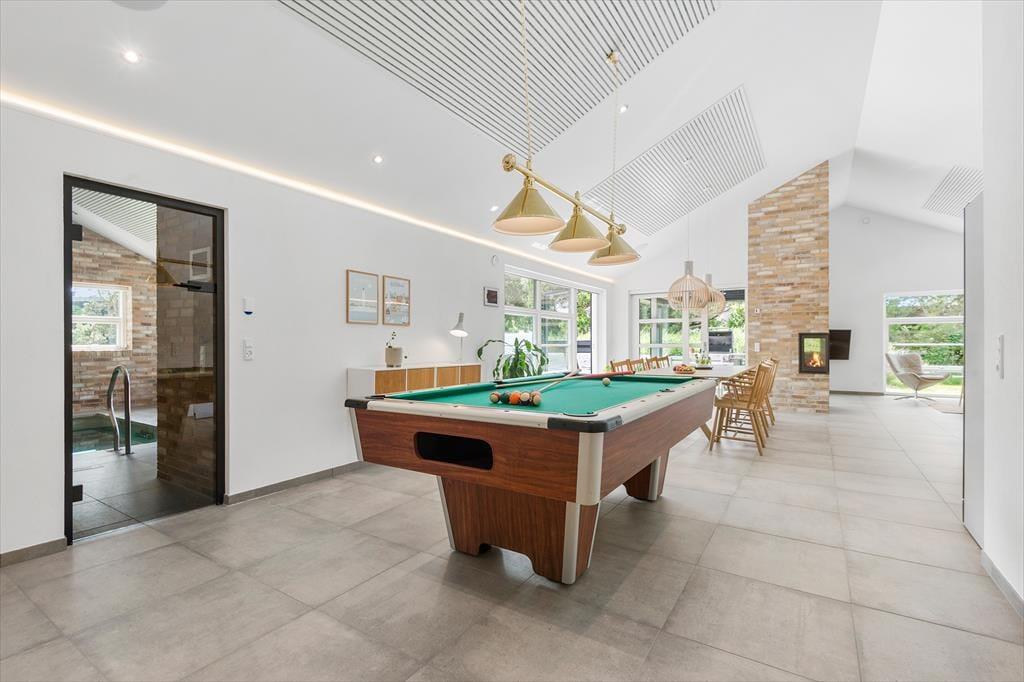 Dette moderne sommerhus byder dig velkommen med et væld af lækre faciliteter, der kan gøre enhver ferie uforglemmelig. I hjertet af huset finder du en dejlig stue med store vinduespartier, der lader sollyset strømme ind og skaber en lys og indbydende atmosfære. På kølige aftener kan du tænde op i brændeovnen og nyde varmen og hyggen sammen med dine nærmeste. For dem, der elsker wellness, er der både en stor, indbydende pool, hvor både børn og voksne kan boltre sig i timevis. Derudover har afdelingen også en sauna og en dampkabine, som inviterer til ultimativ afslapning. Har I lyst til at dyste lidt, er der et stort poolbord i stuen, som I kan muntre jer med. Og når dagen går på hæld, kan du nyde en god nats søvn i et af husets komfortable soveværelser.
