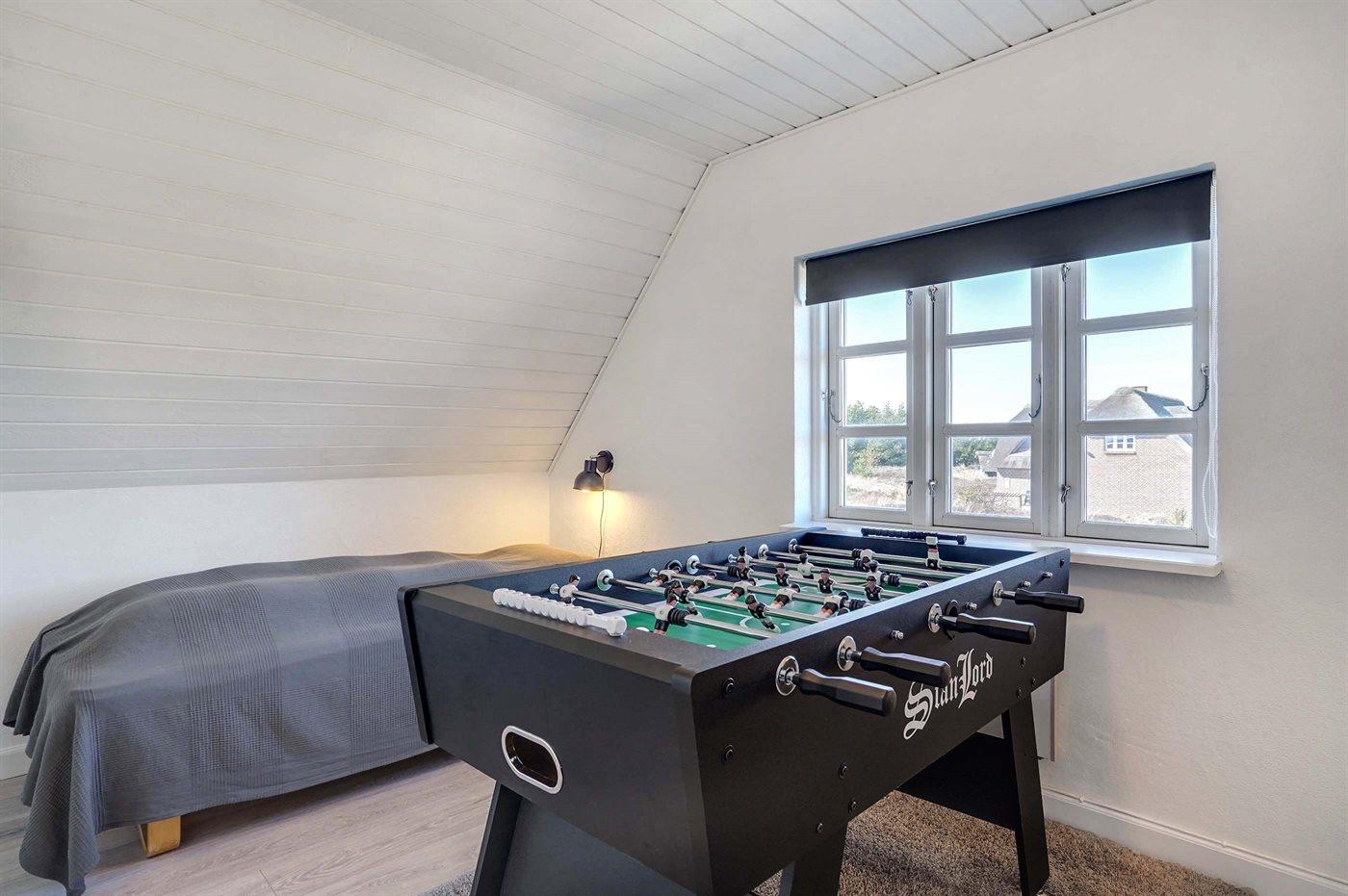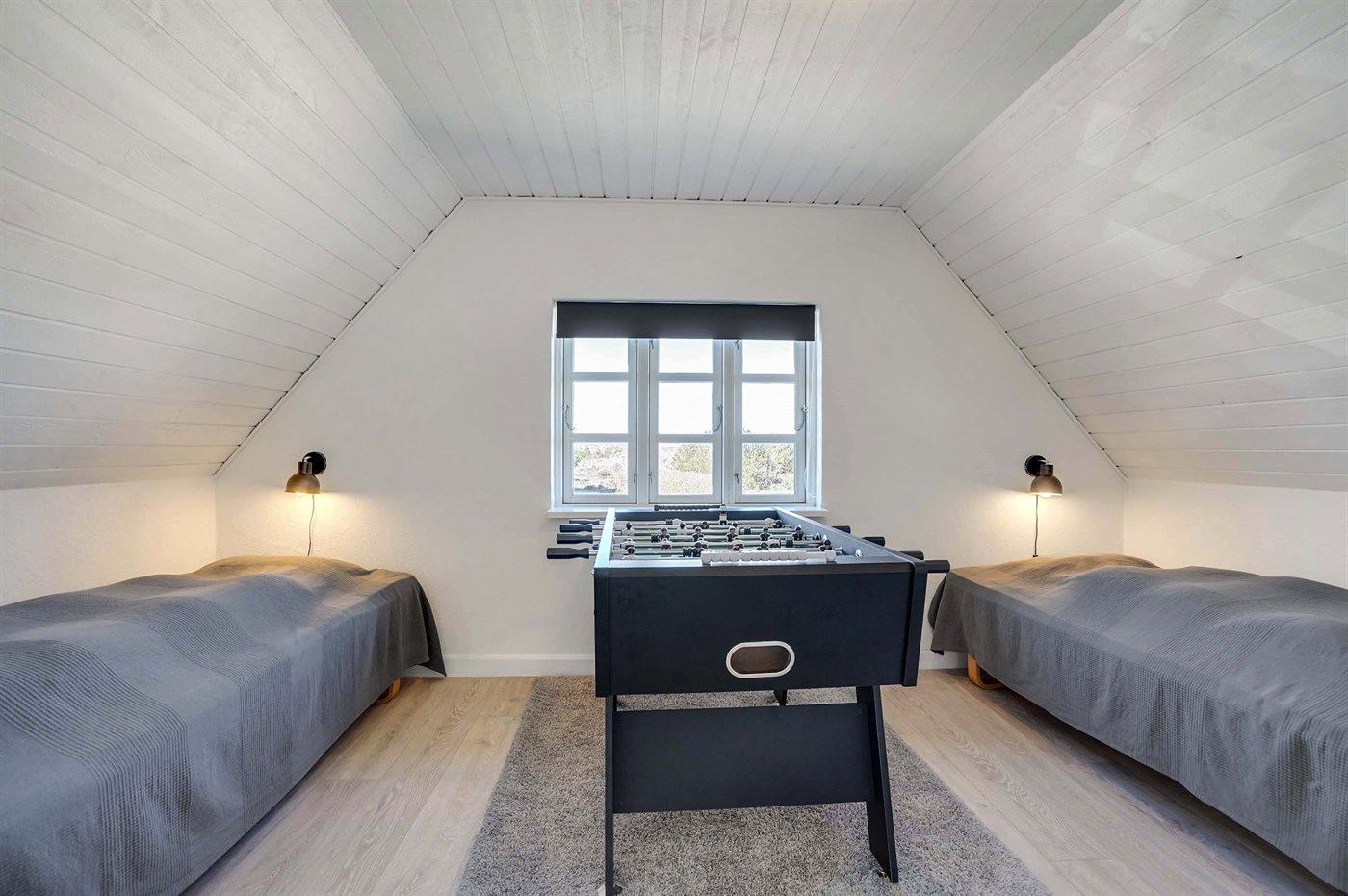 Der er i alt 5 soveværelser. Sovepladserne fordeler sig på: 8 sovepladser i dobbeltsenge. 4 sovepladser i enkeltsenge. Derudover er der 1 stk. barneseng.