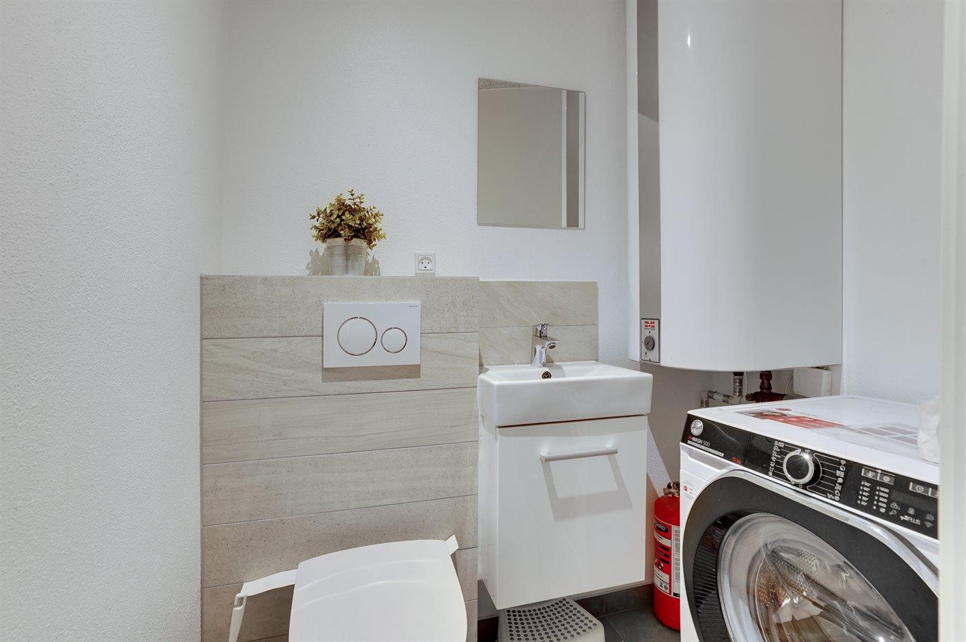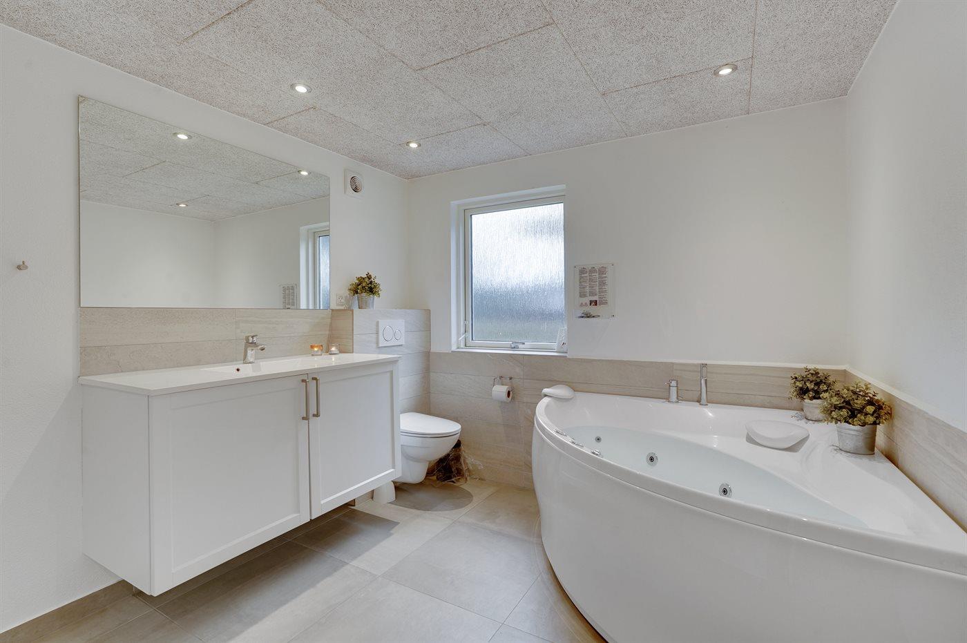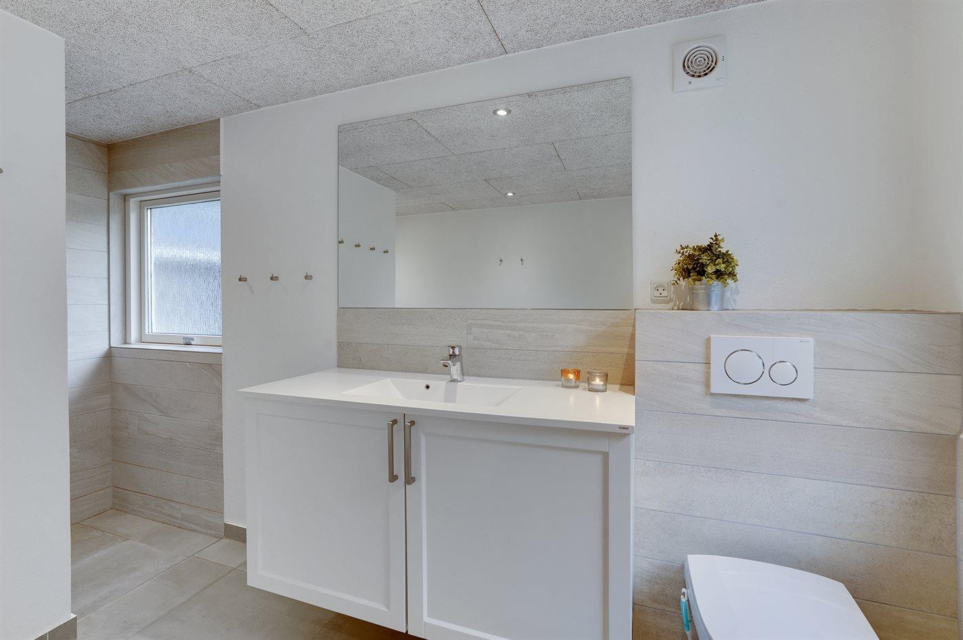 Der er 1 badeværelse med bruseniche og 2 toiletter, heraf 1 gæstetoilet. Der er gulvvarme på 1 badeværelse.